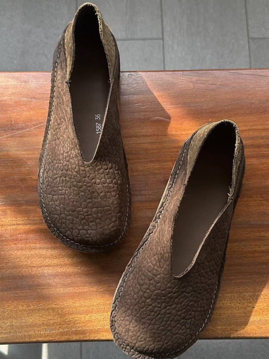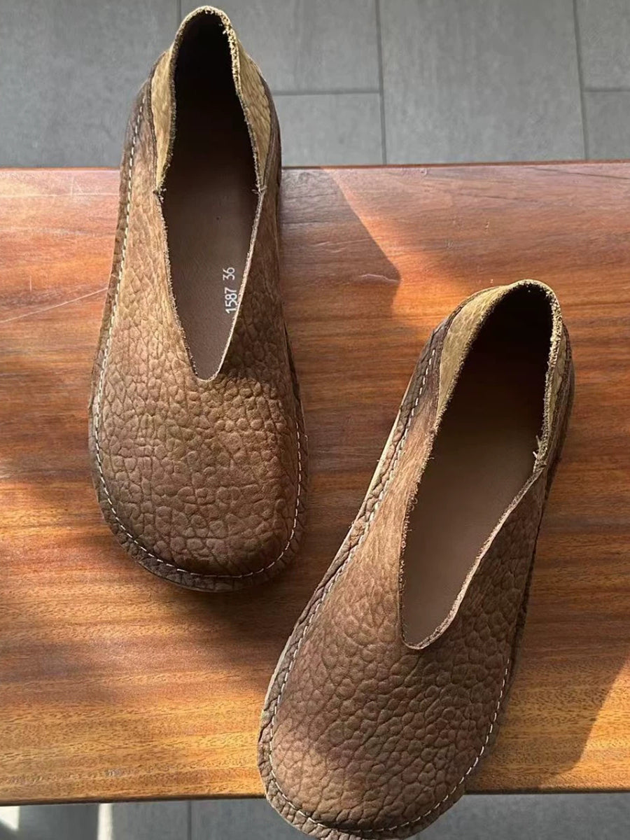 נעליים שטוחות מעור אמיתי רטרו לנשים