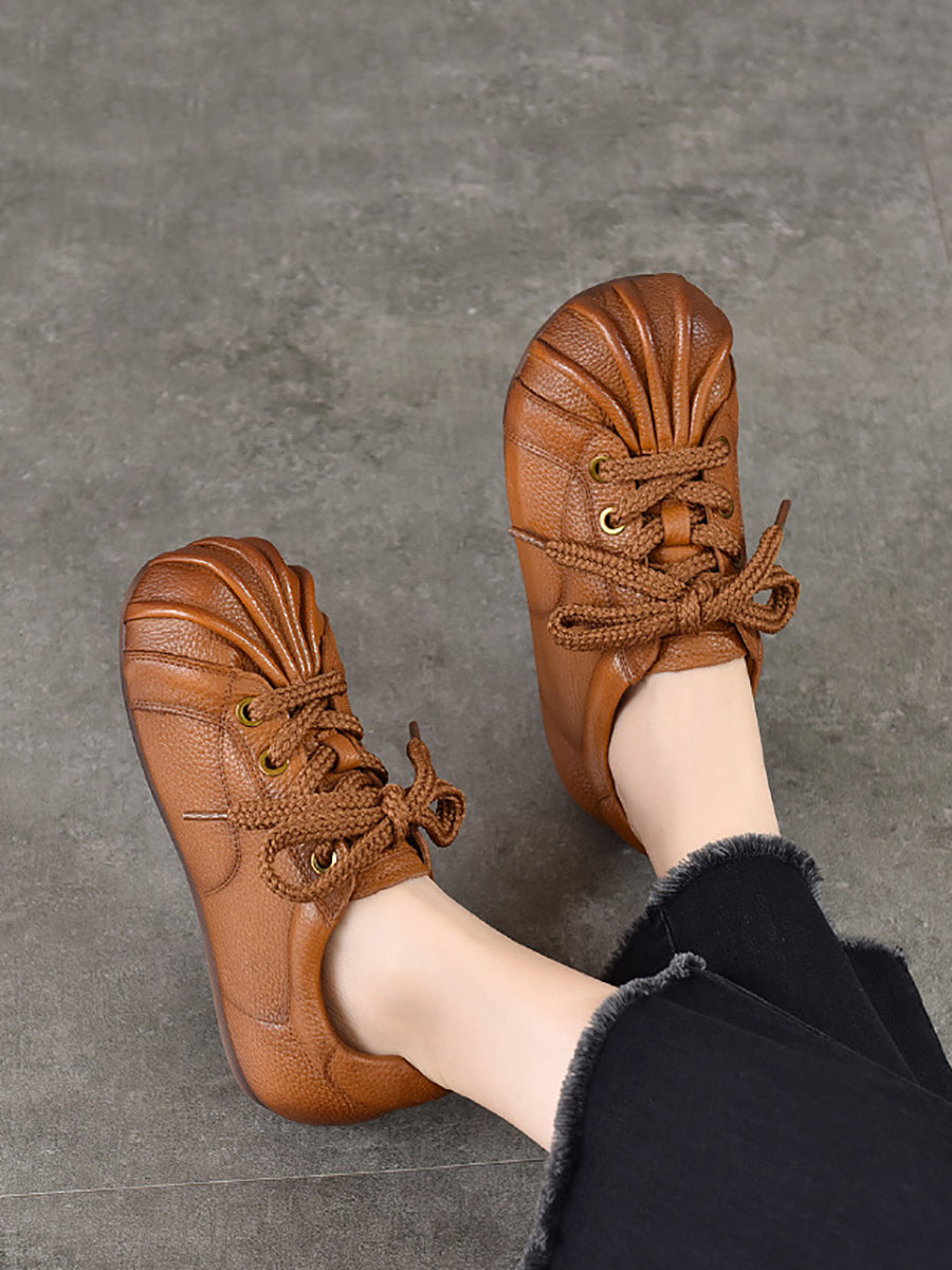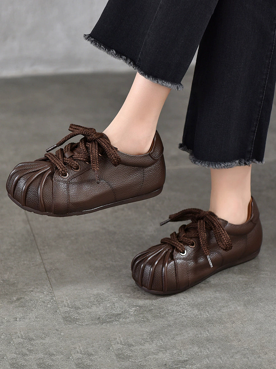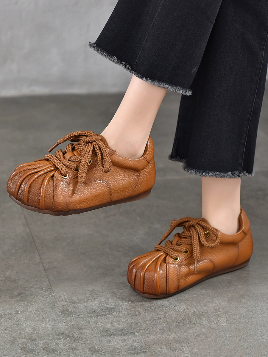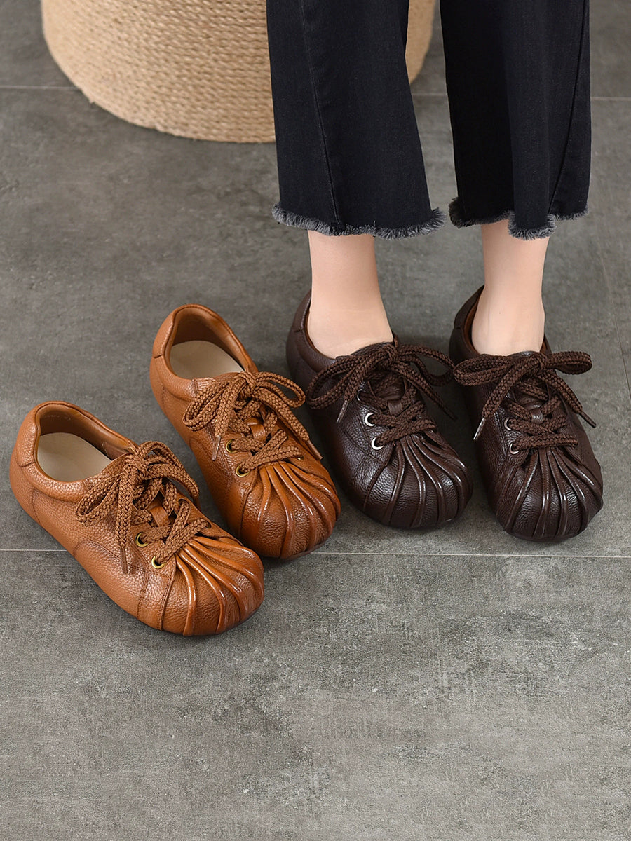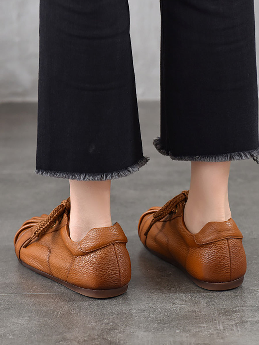 נעליים שטוחות מעור אמיתי רטרו לנשים