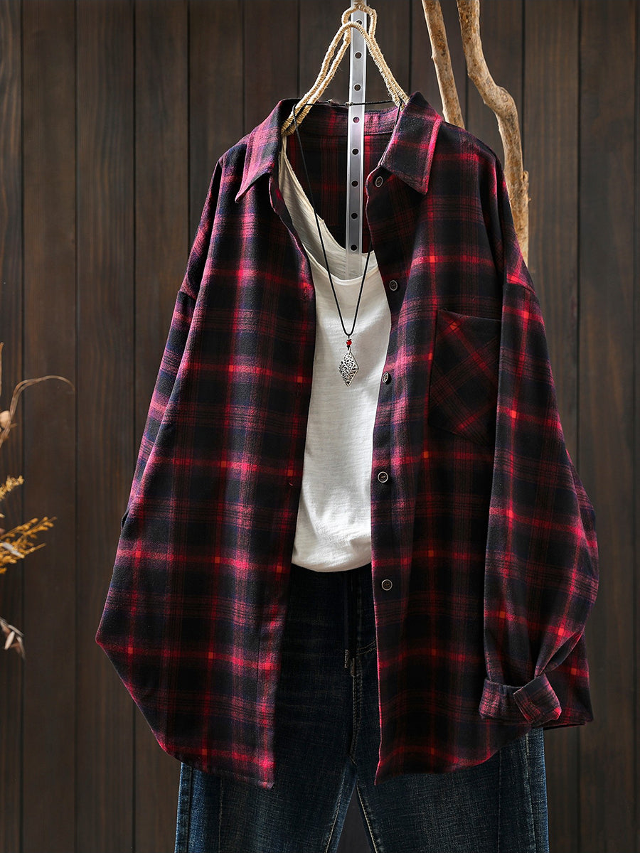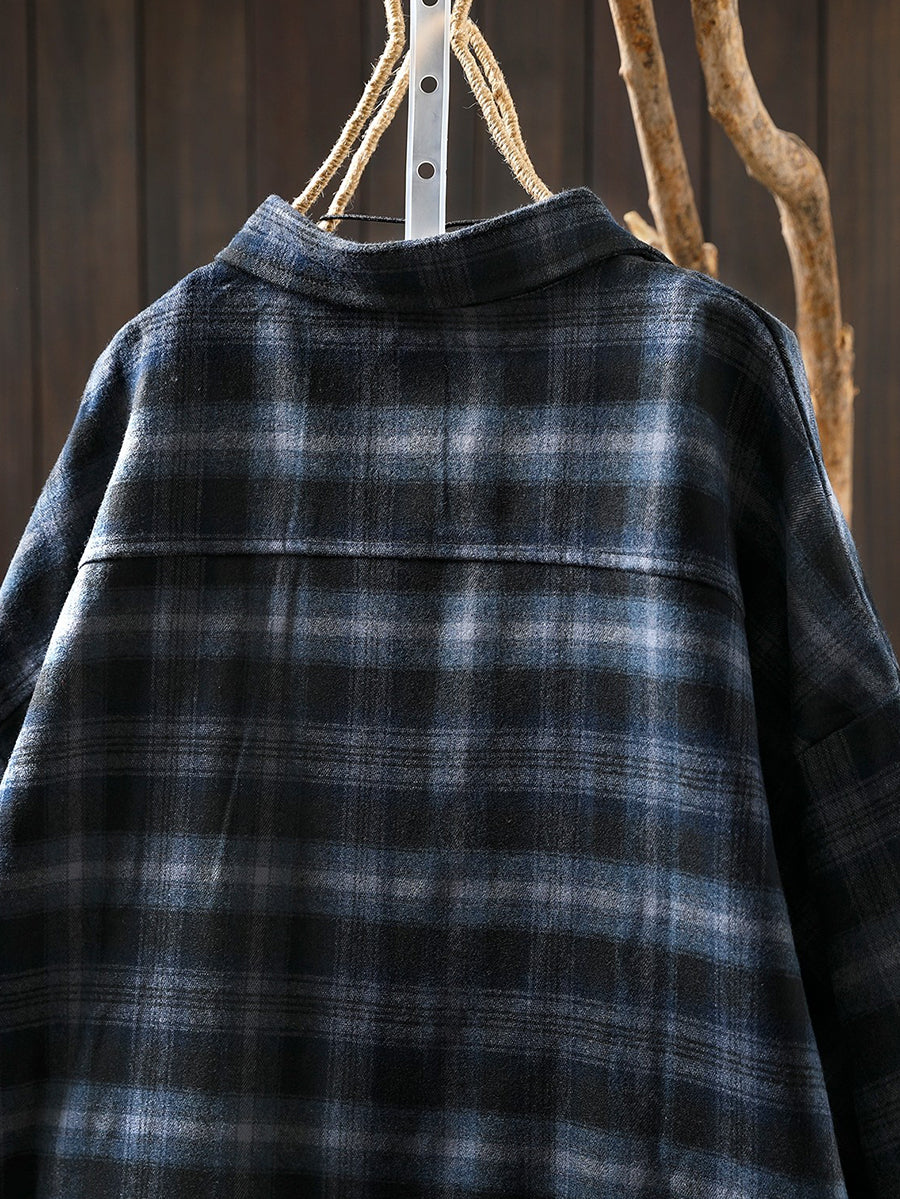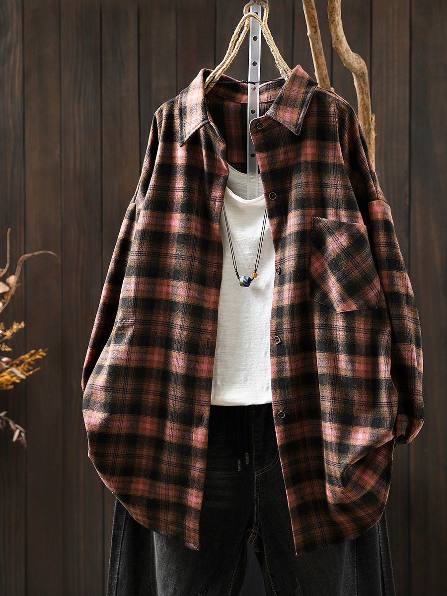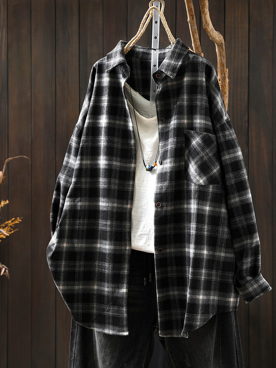 חולצת כותנה עם צווארון משובץ בסגנון אביב לנשים בסגנון רטרו