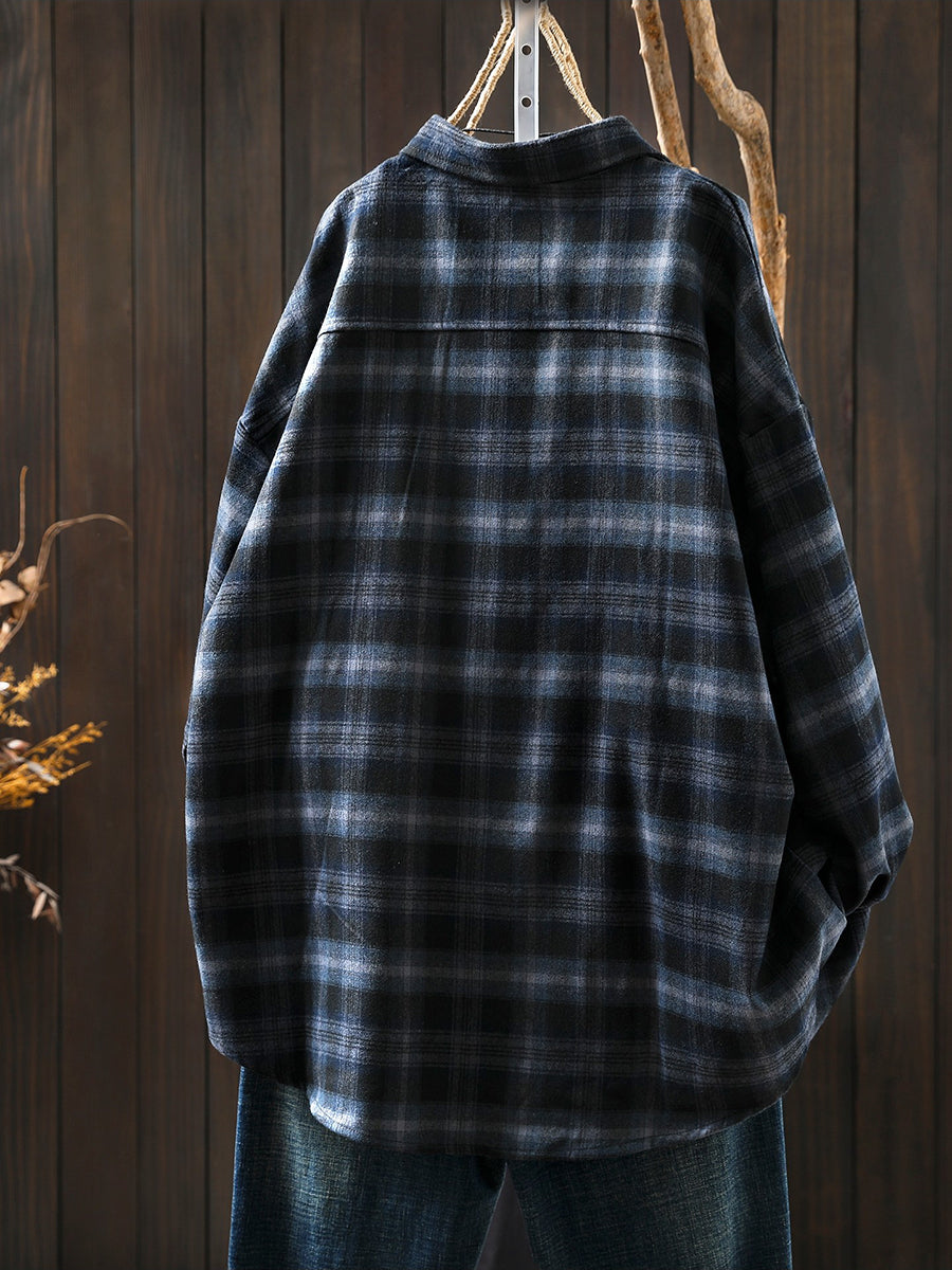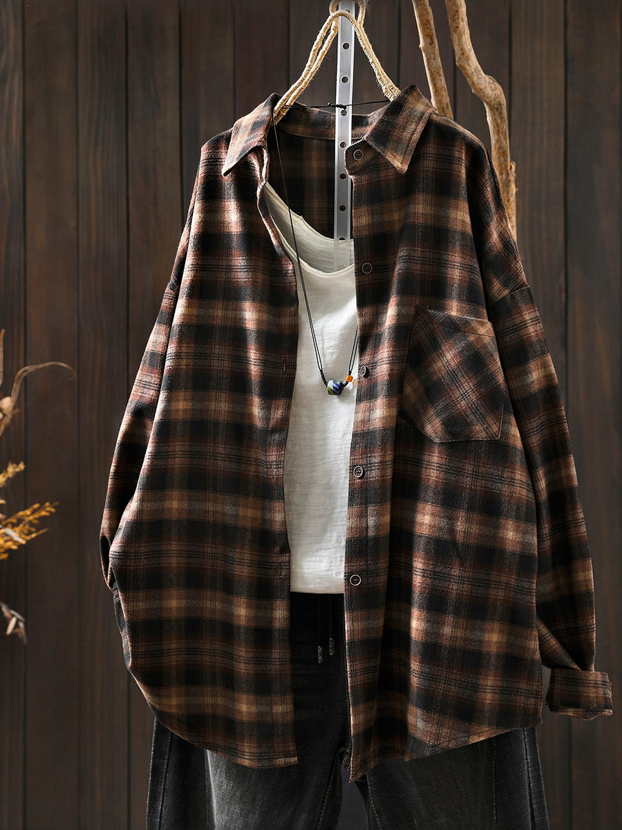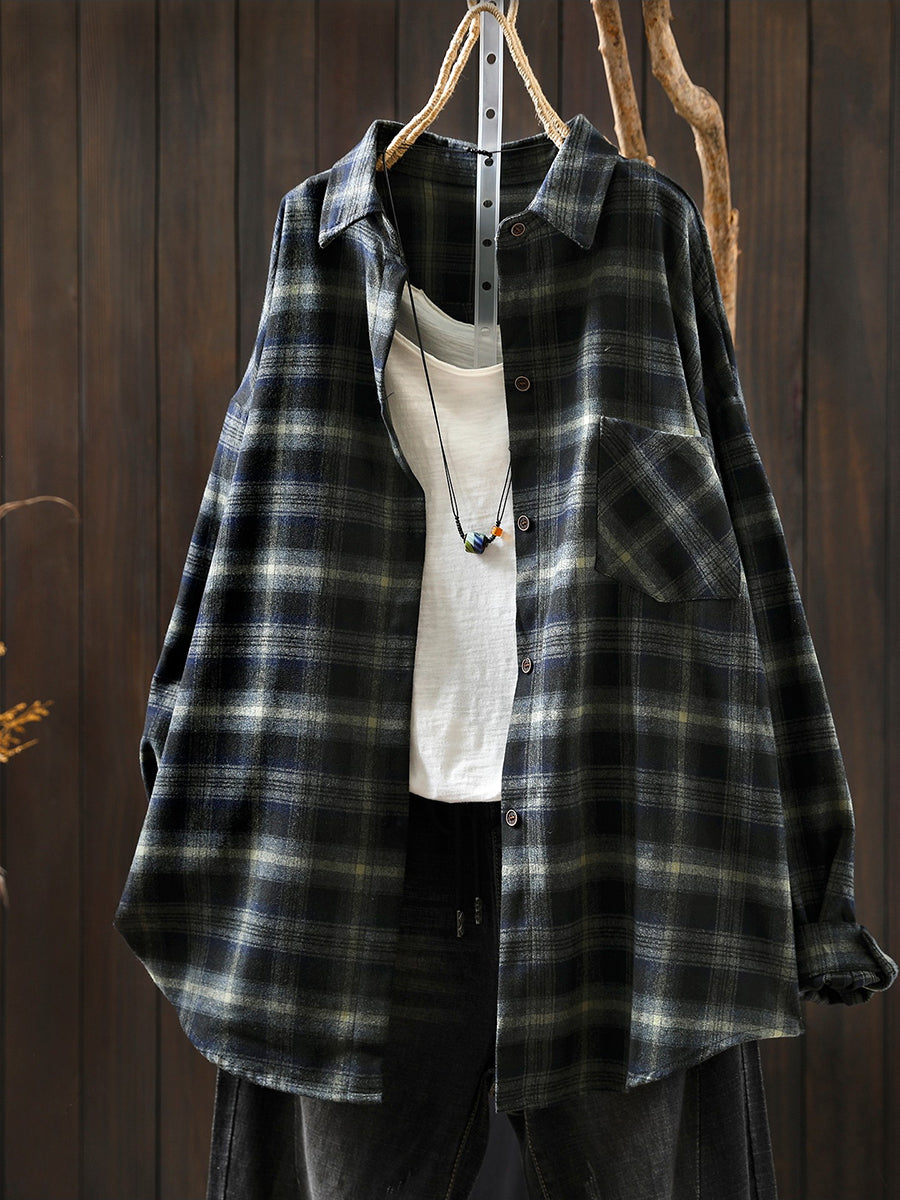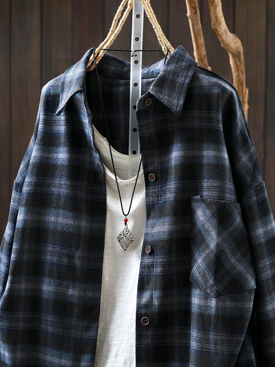 חולצת כותנה עם צווארון משובץ בסגנון אביב לנשים בסגנון רטרו