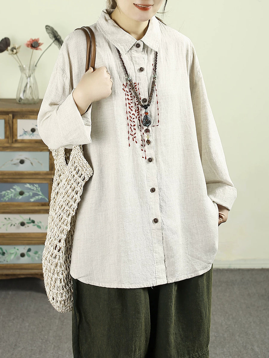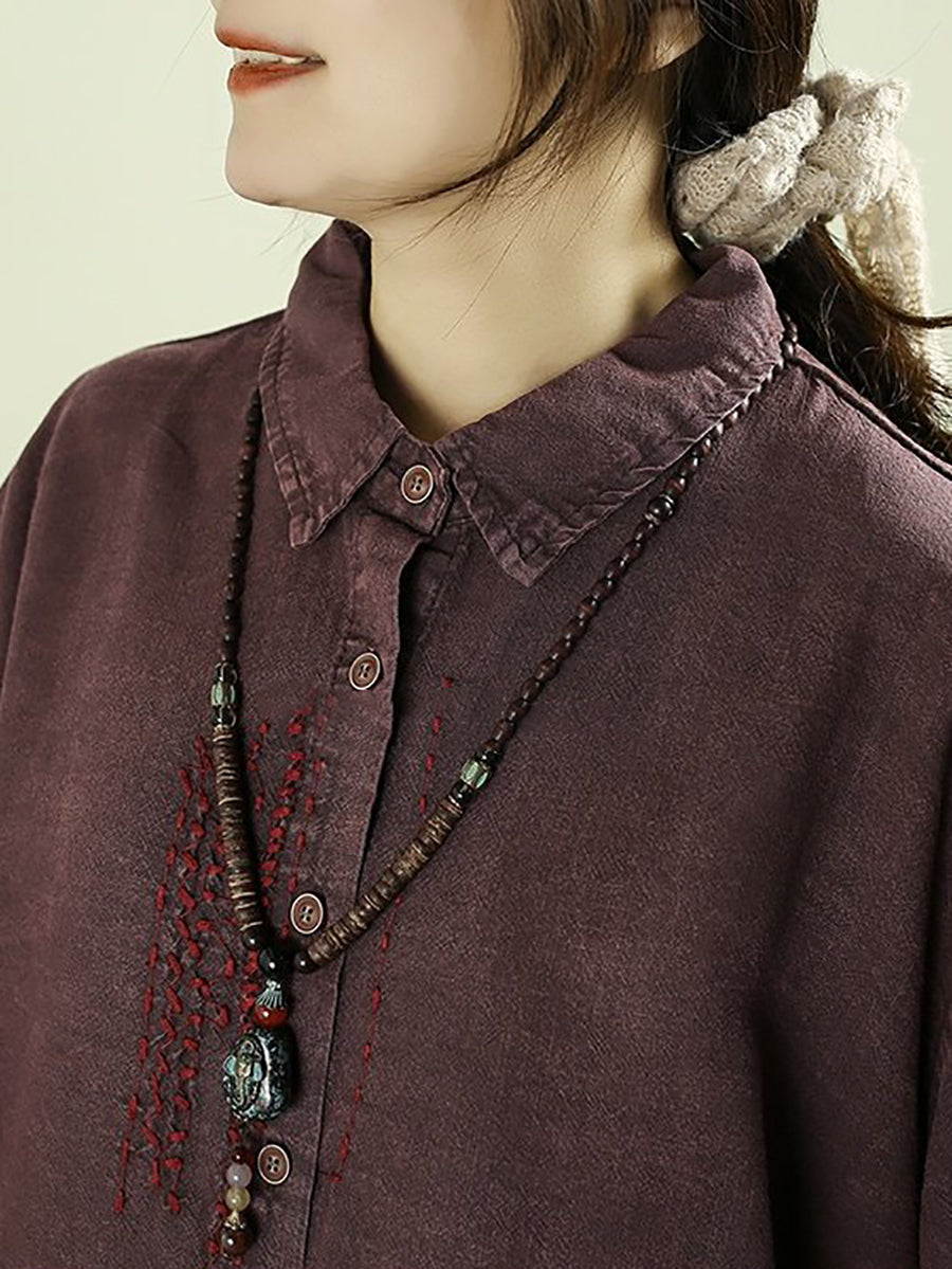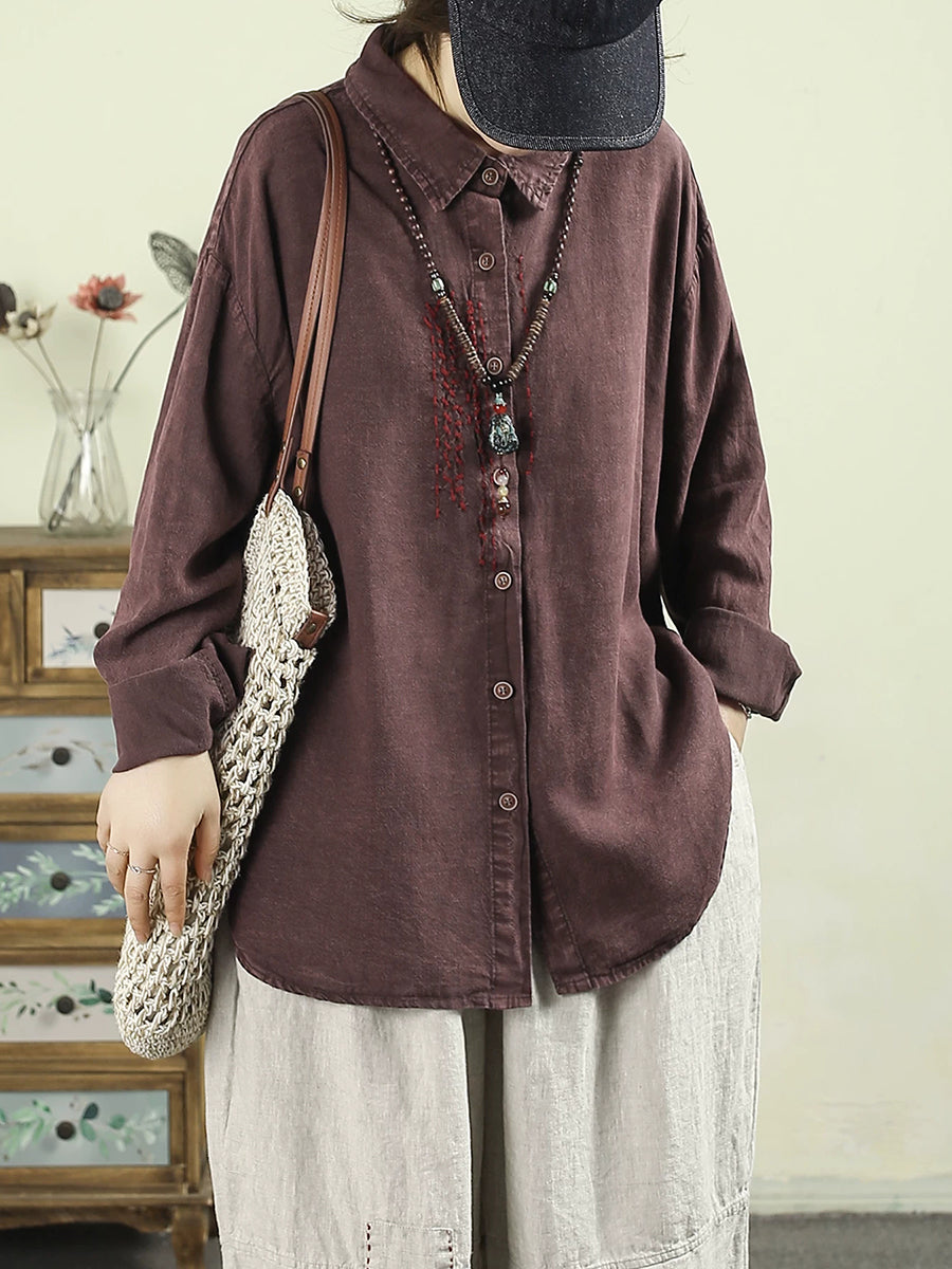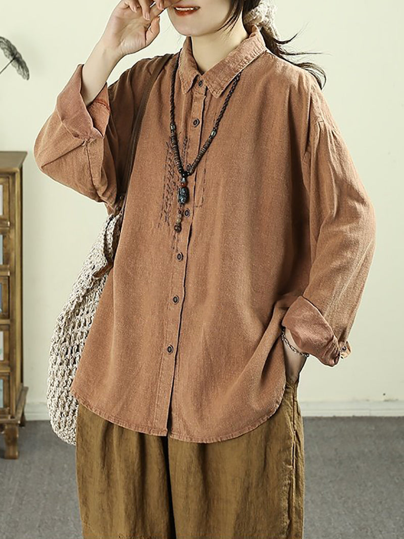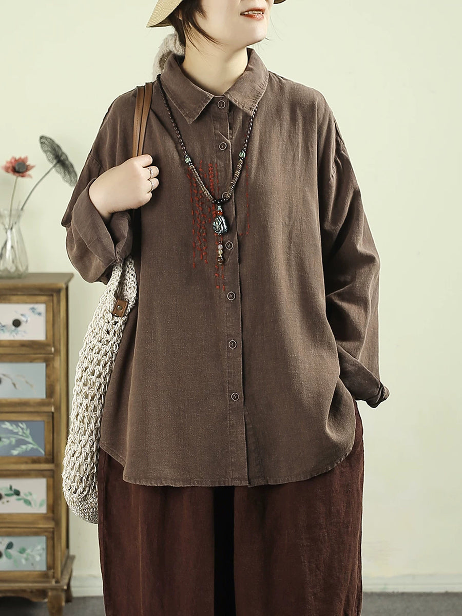 חולצת אביב רטרו לנשים עם צווארון הפוך בצבע טהור 100% פשתן