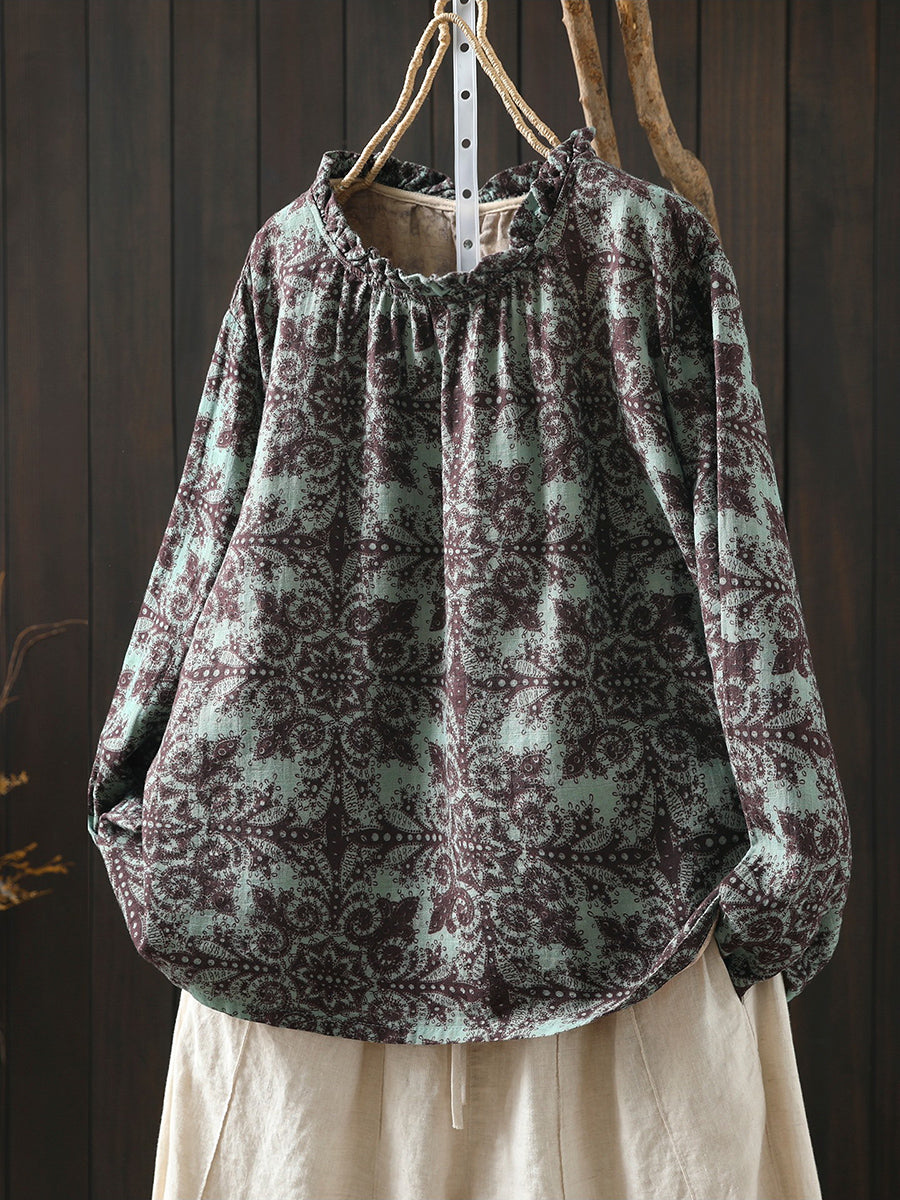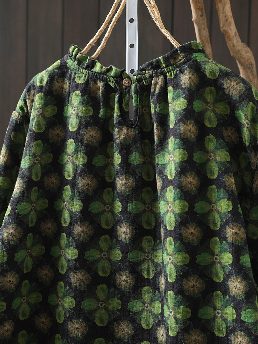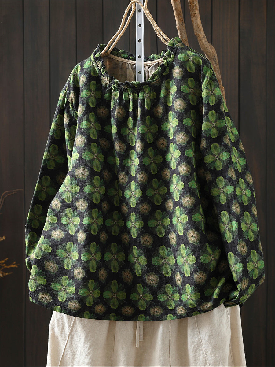 חולצת כותנה פרחונית אומנותית לנשים באביב