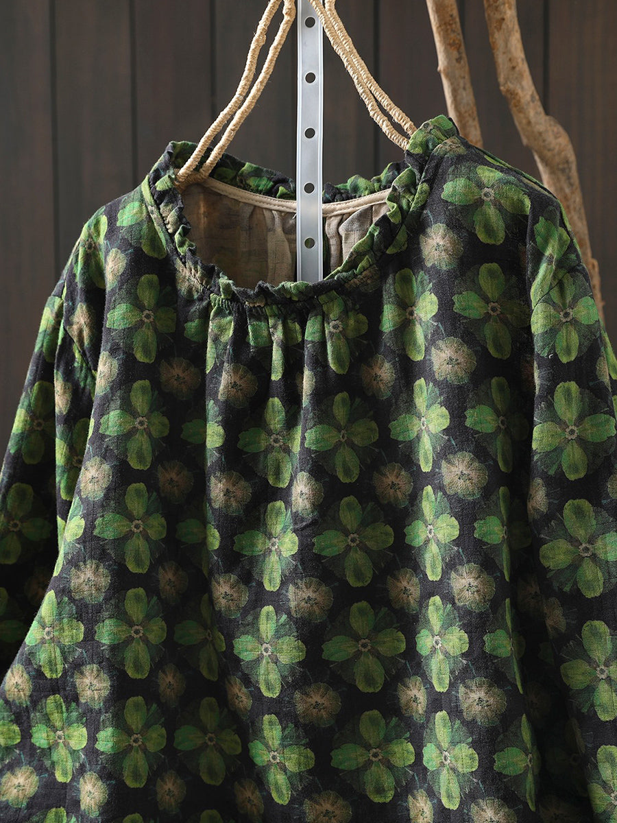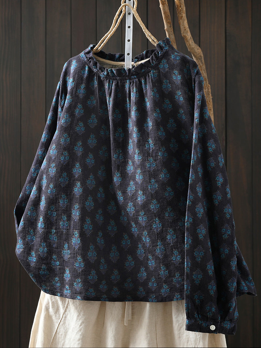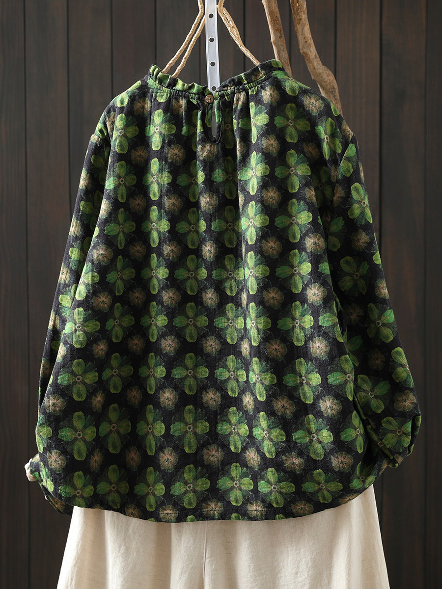 חולצת כותנה פרחונית אומנותית לנשים באביב