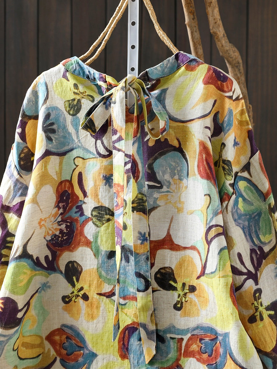 חולצת אביב פרחונית אומנותית לנשים 100% פשתן