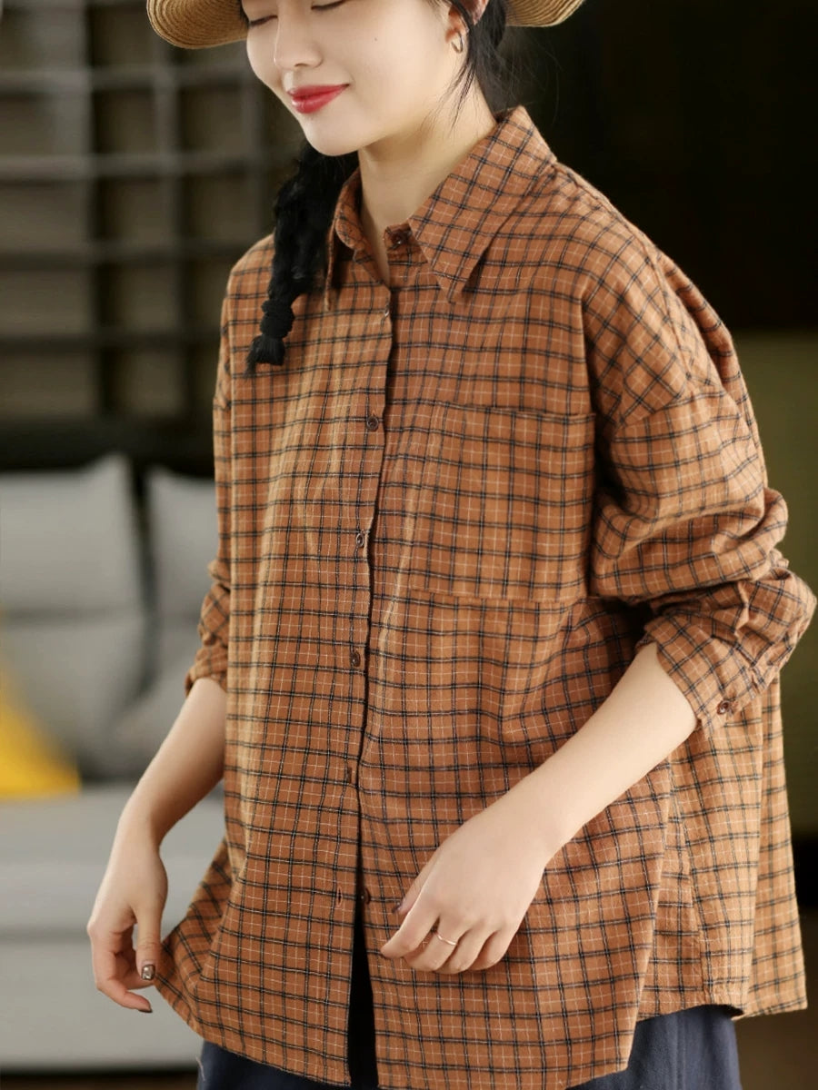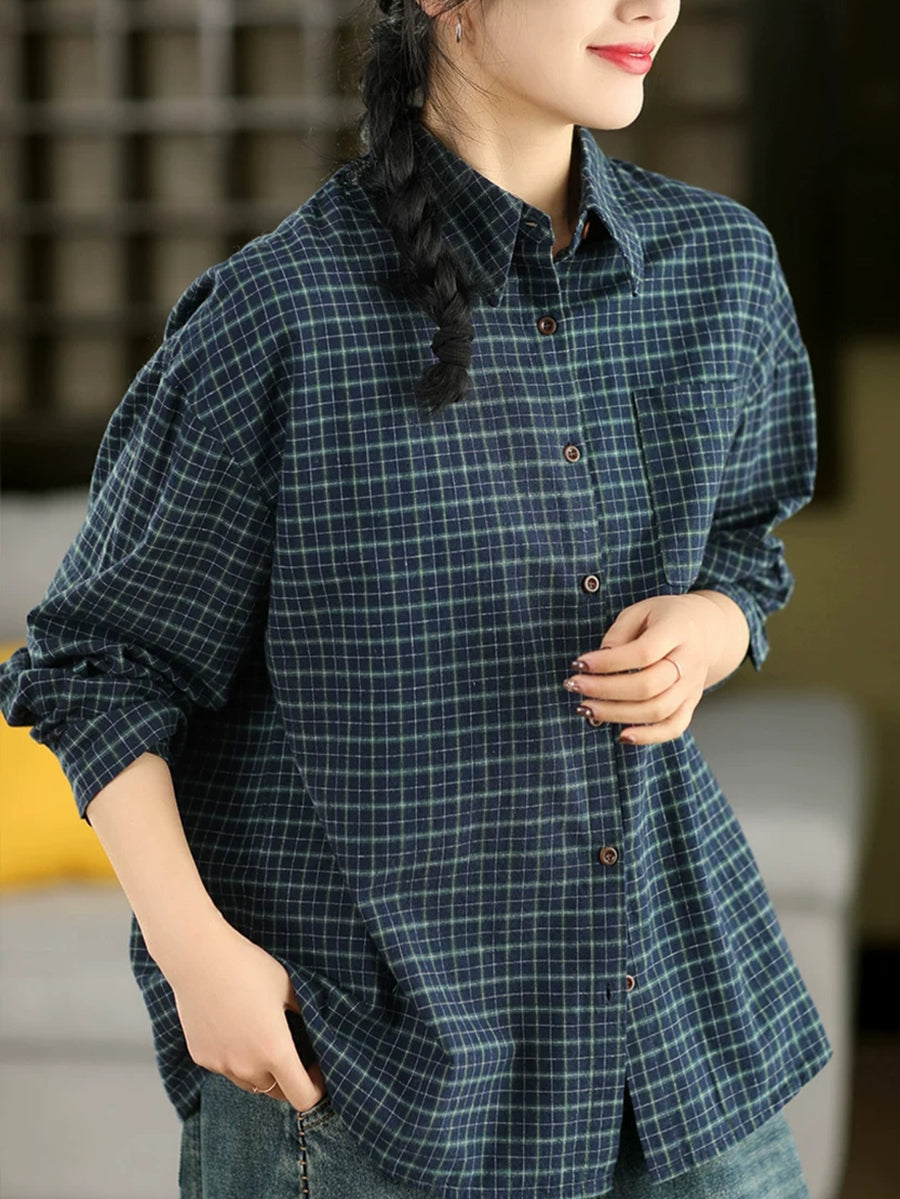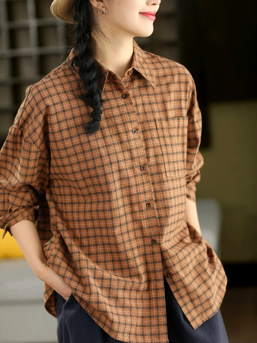 חולצת כותנה משובצת אומנותית לנשים באביב