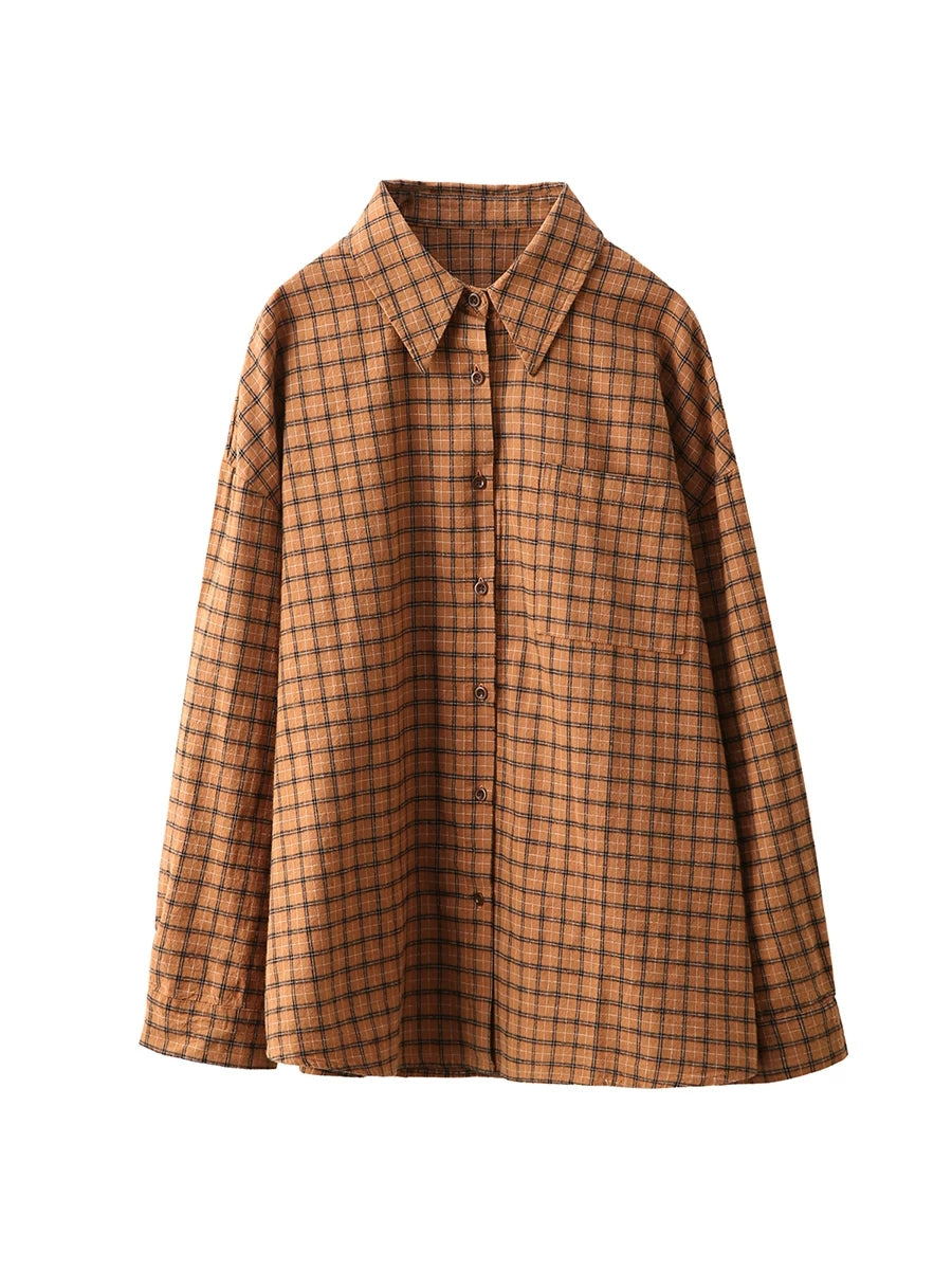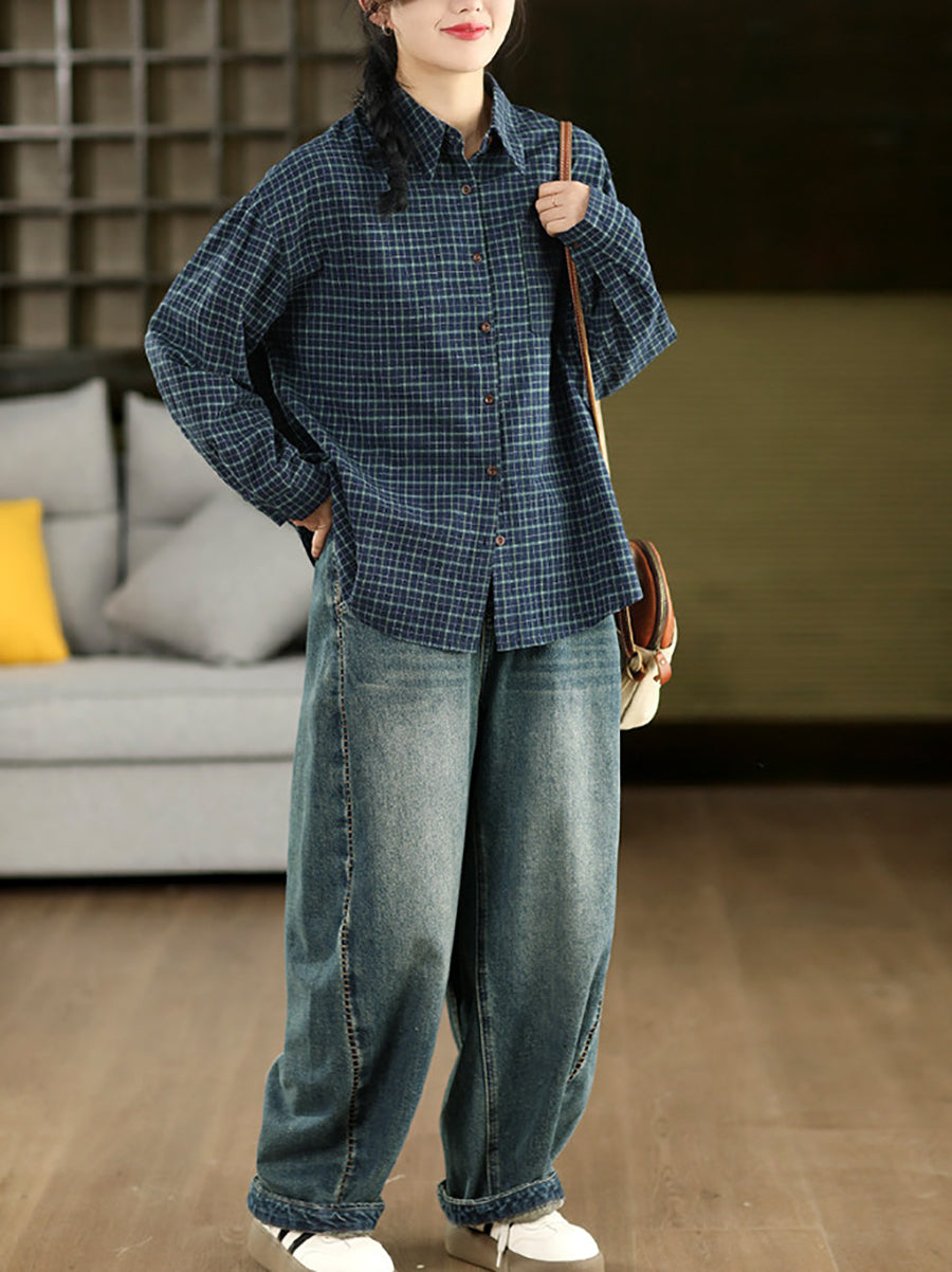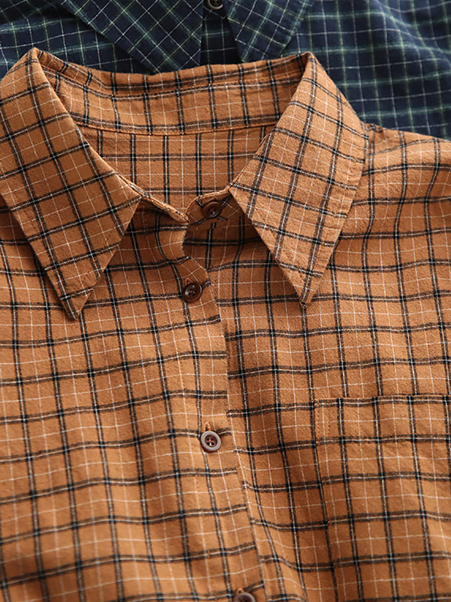 חולצת כותנה משובצת אומנותית לנשים באביב