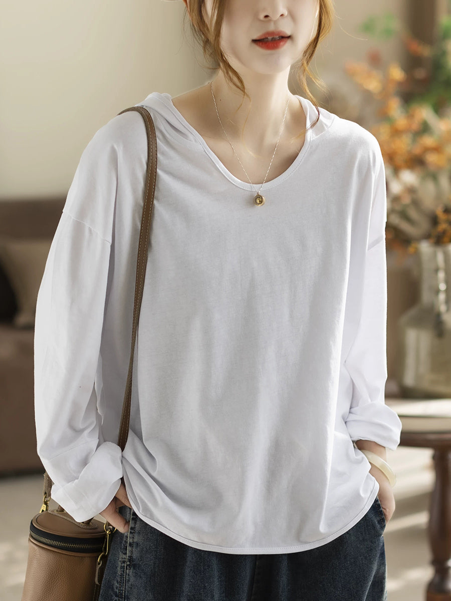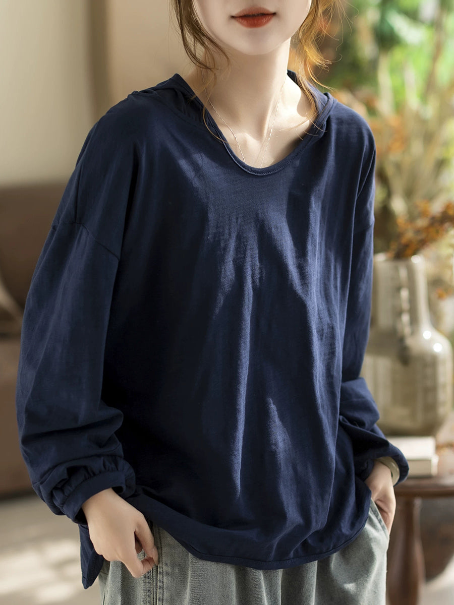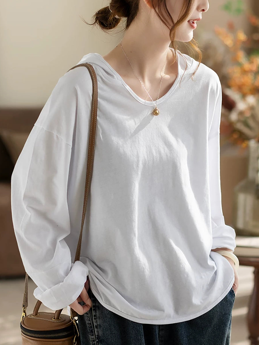 קפוצ'ון אביב לנשים בצבע טהור אמנותי 100% כותנה
