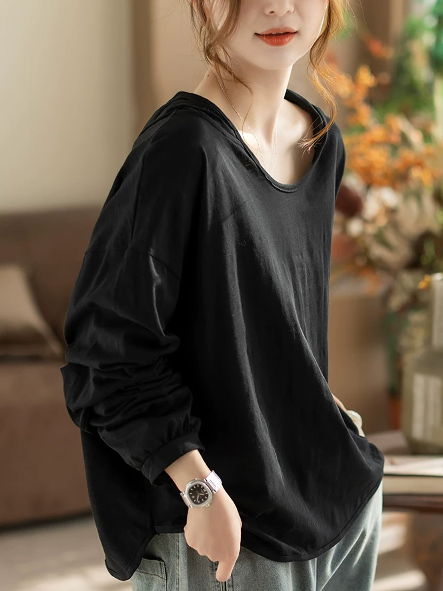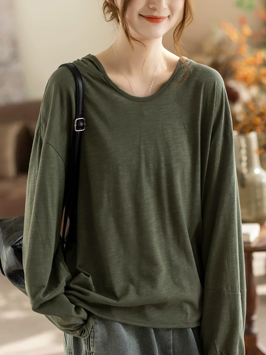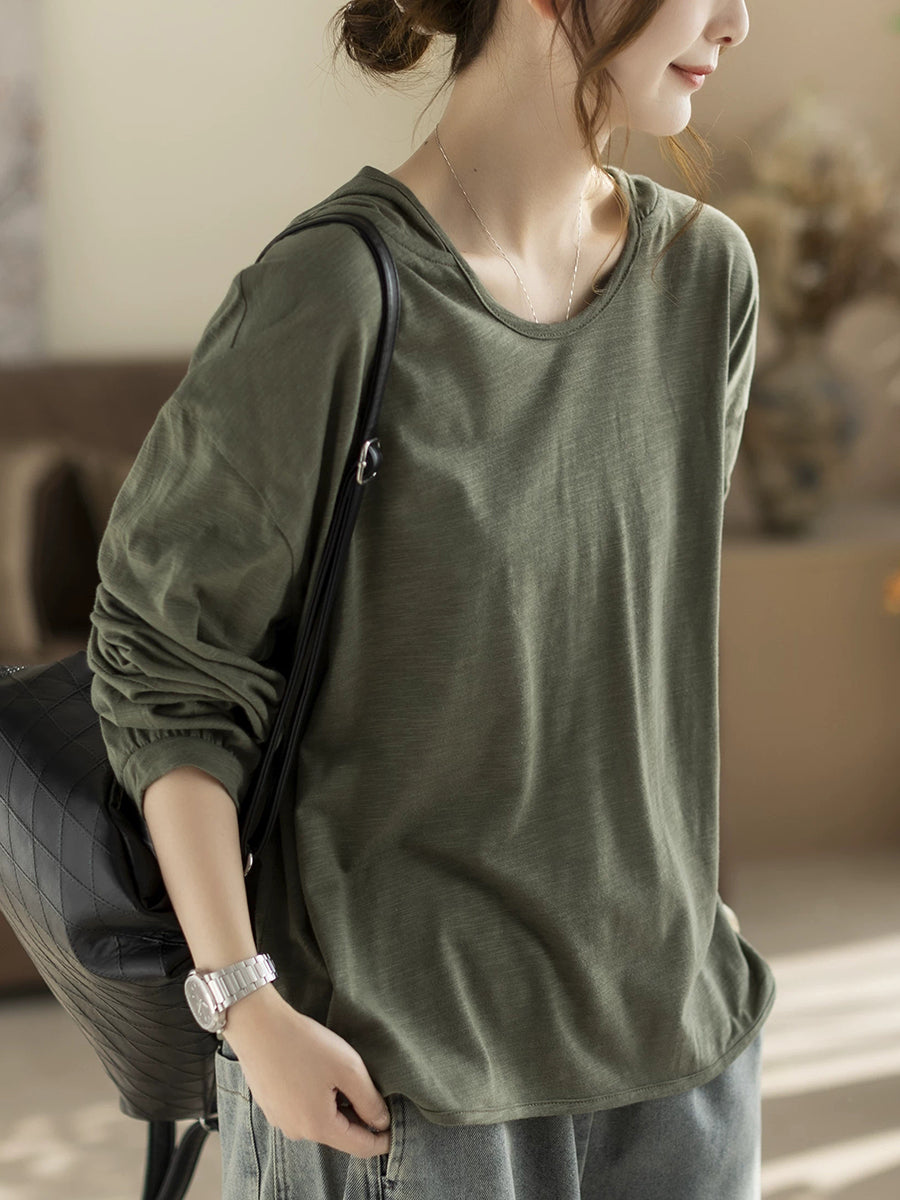 קפוצ'ון אביב לנשים בצבע טהור אמנותי 100% כותנה