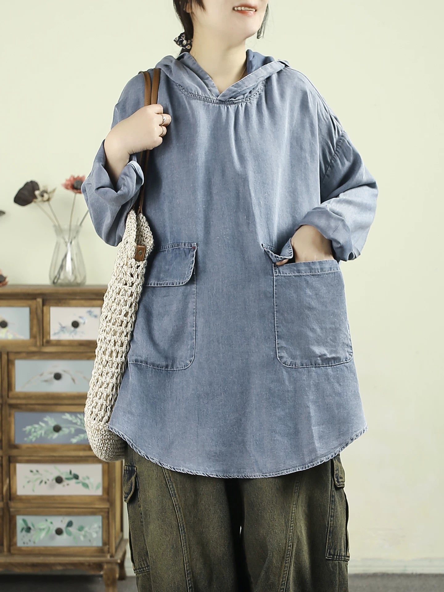קפוצ'ון אביב לנשים בצבע טהור אמנותי 90% כותנה