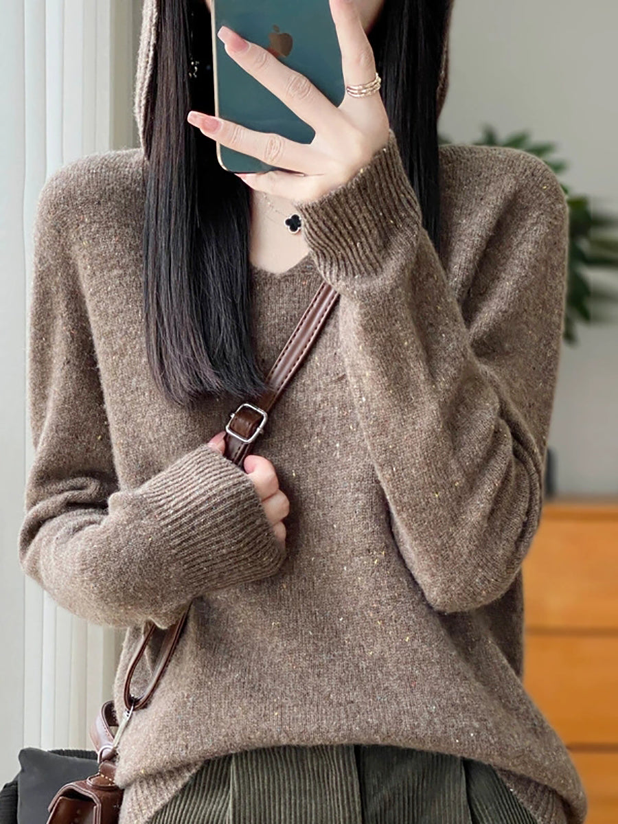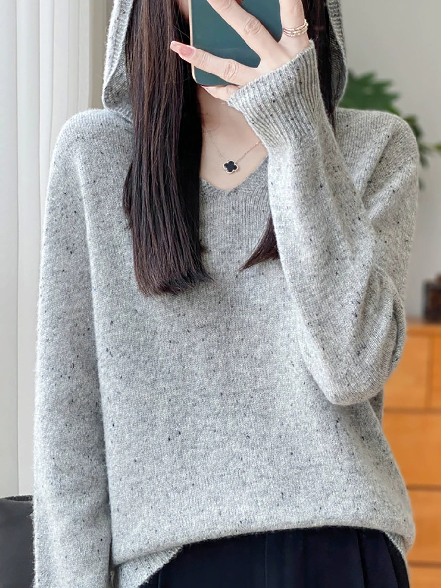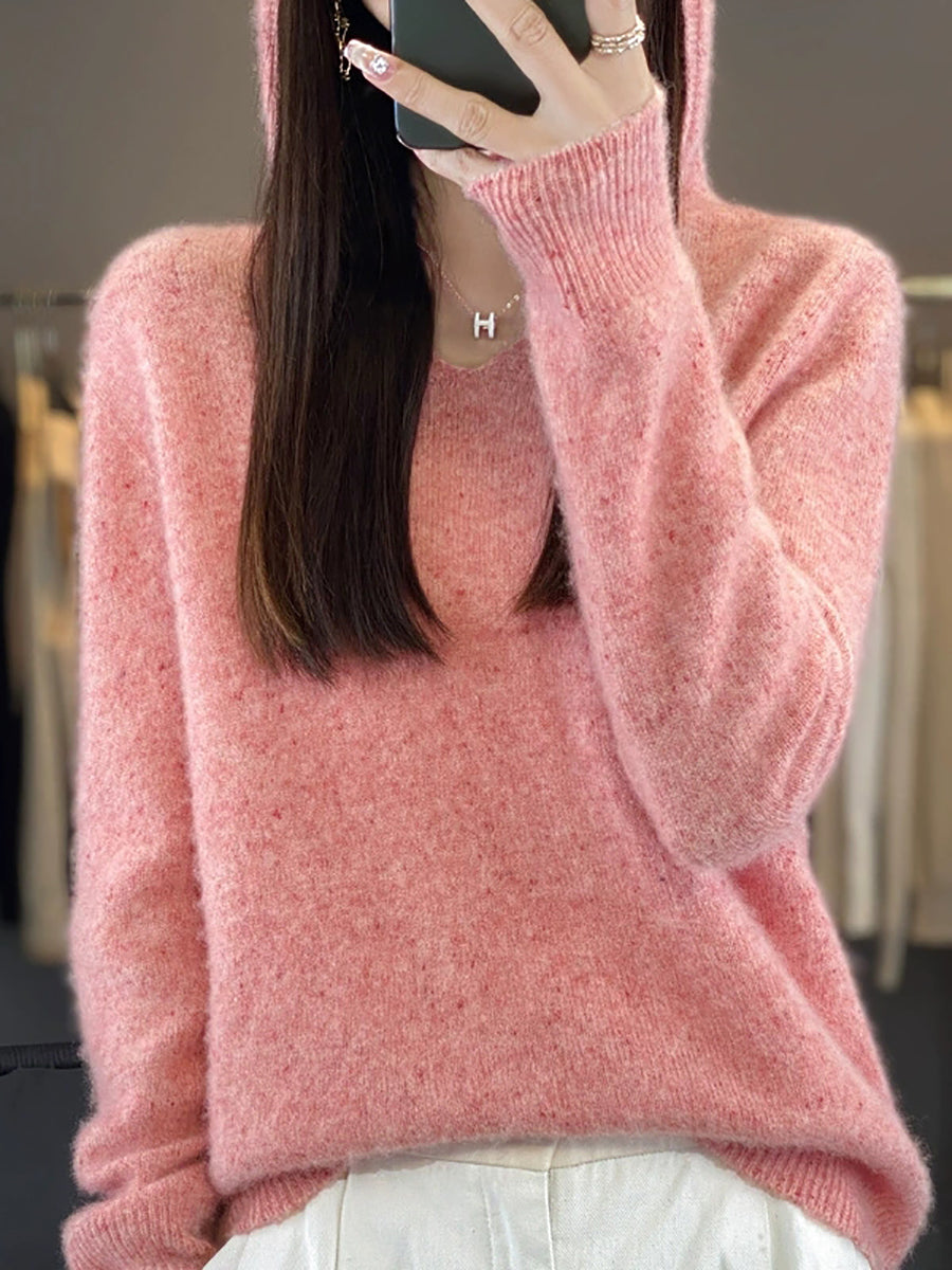 סוודר צמר עם קפוצ'ון בצבע טהור ואמנותי לנשים באביב