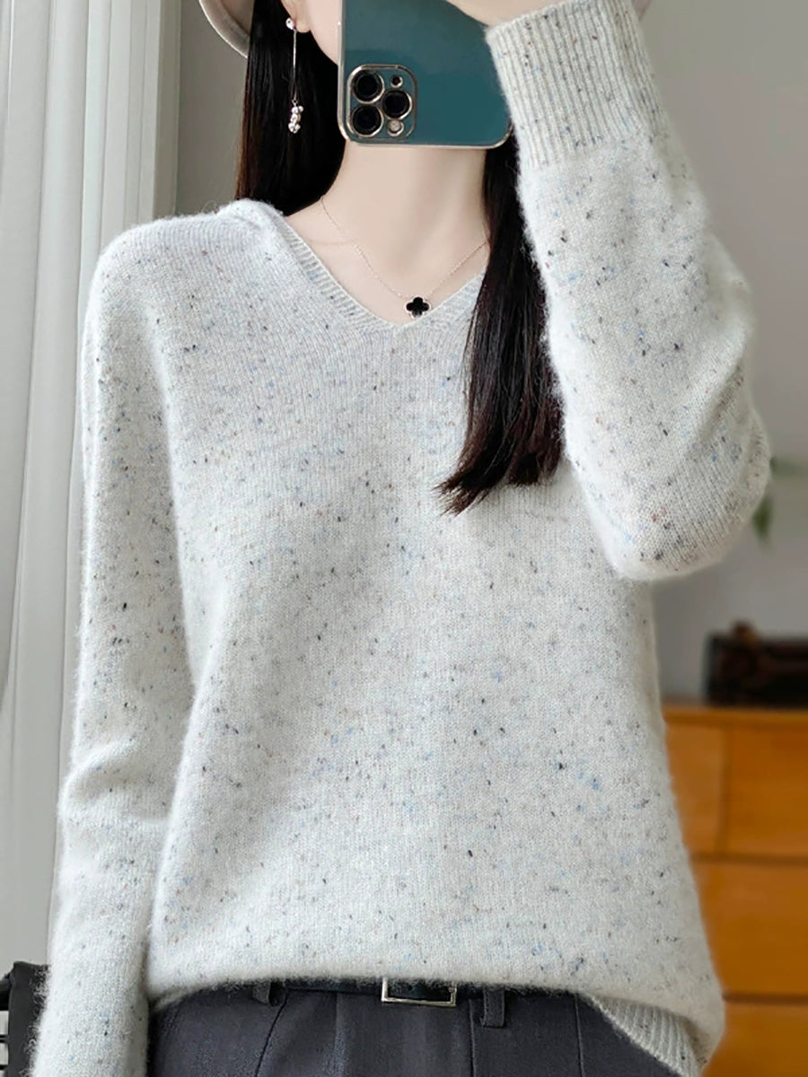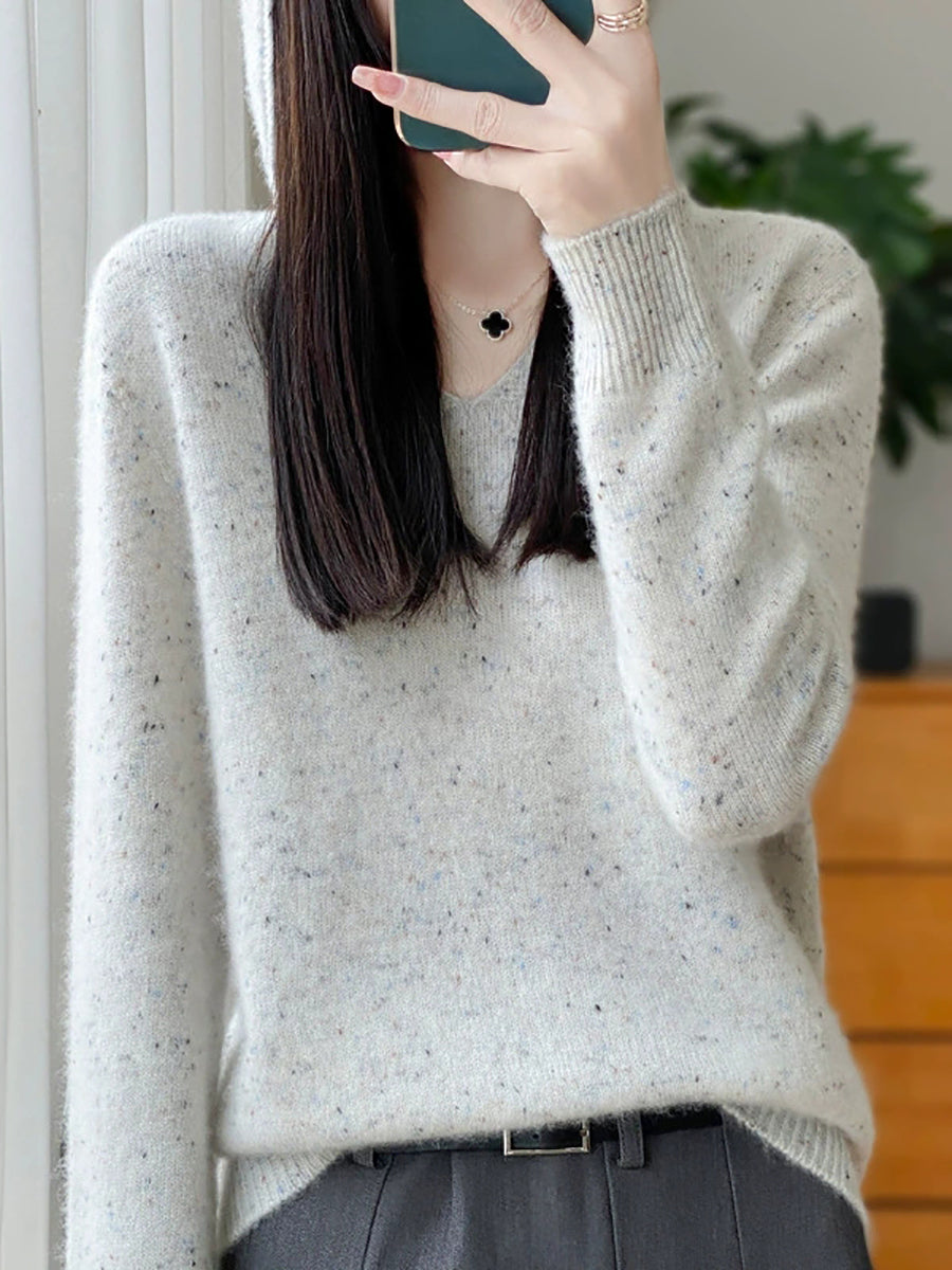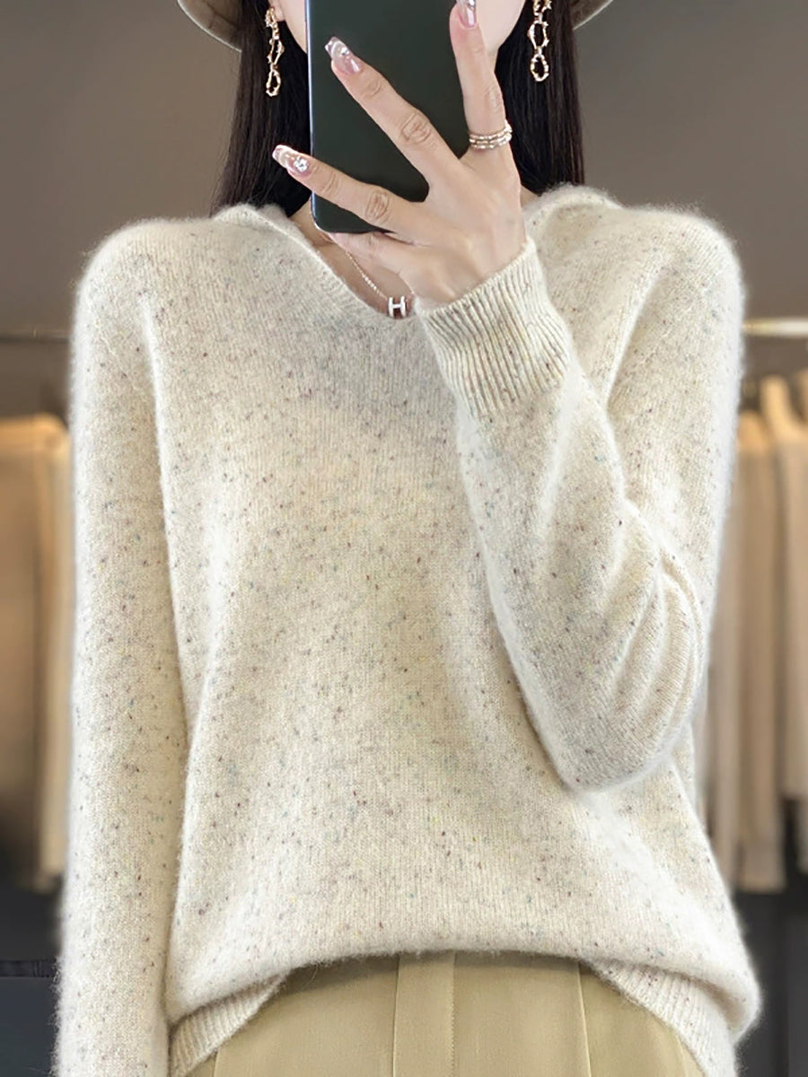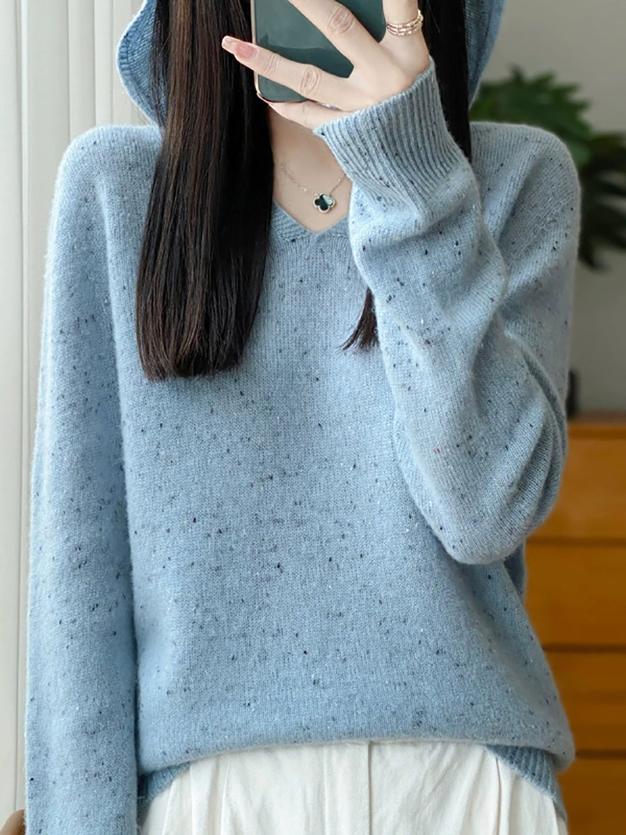 סוודר צמר עם קפוצ'ון בצבע טהור ואמנותי לנשים באביב