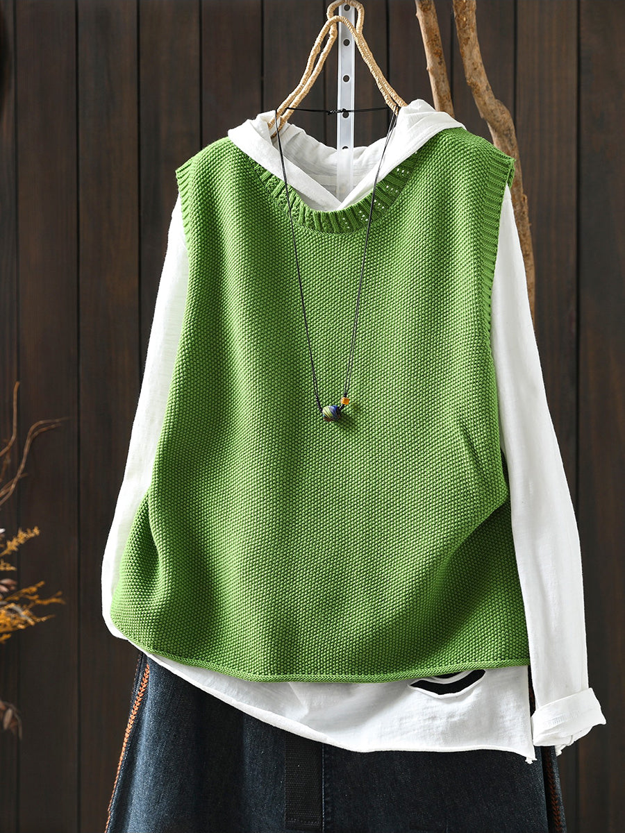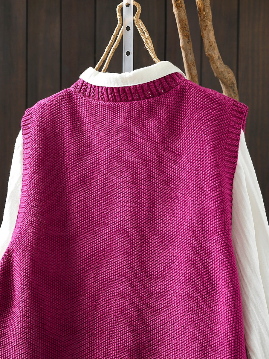 אפוד סרוג בצבע טהור ואמנותי לנשים באביב