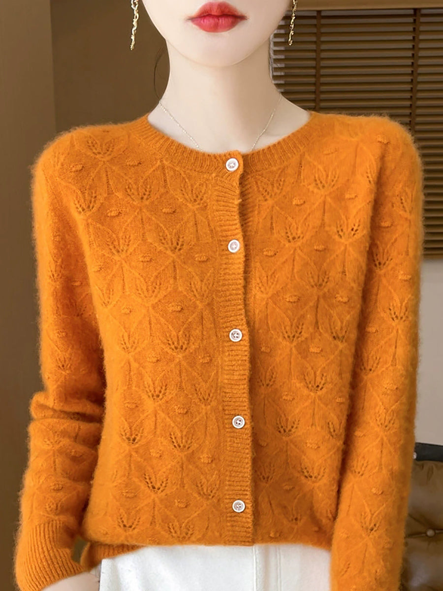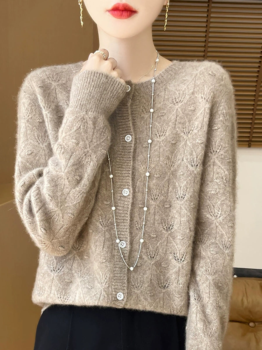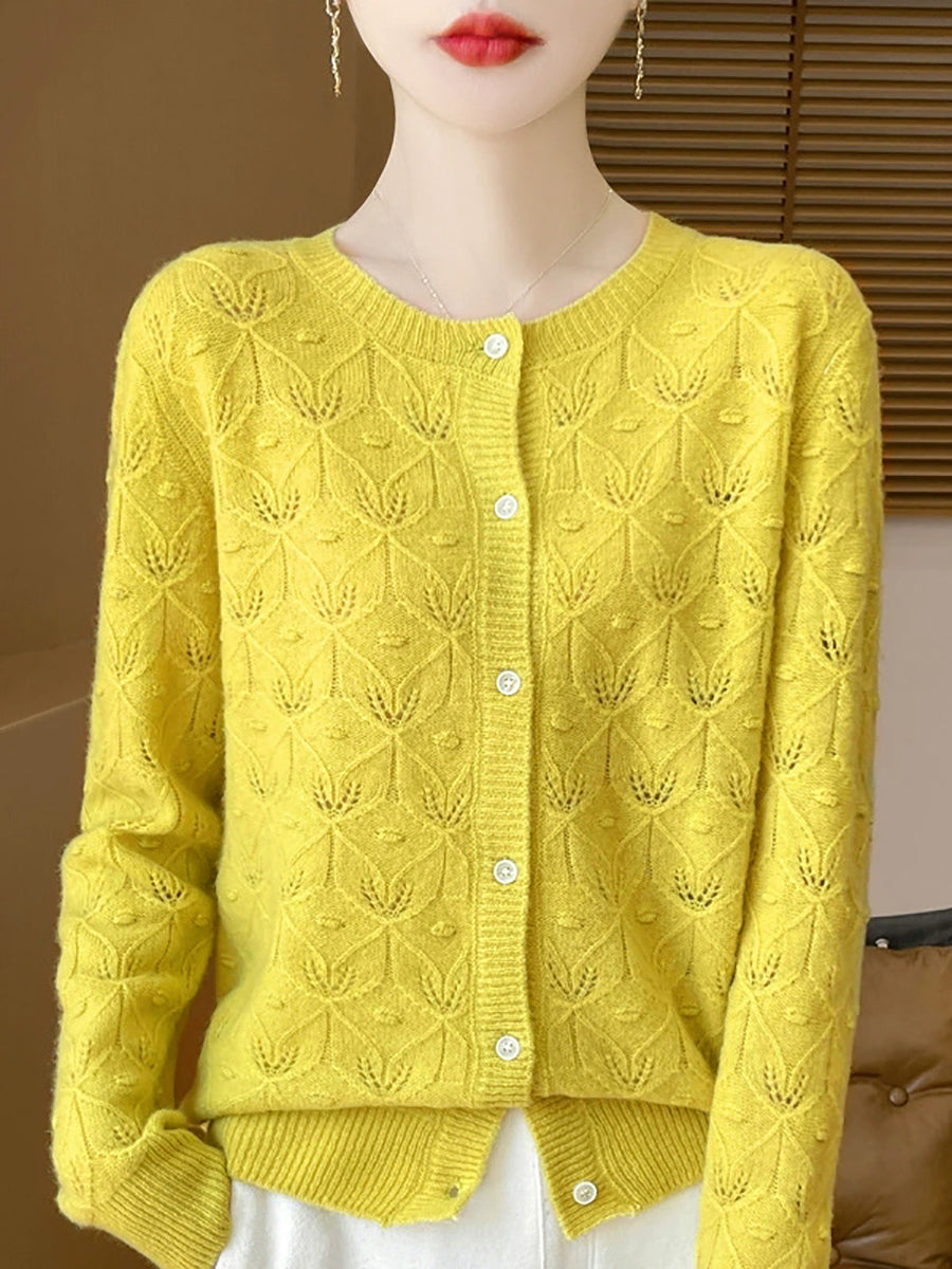 סוודר קרדיגן צמר O-צוואר בצבע טהור לאביב לנשים