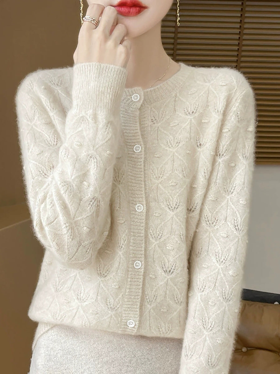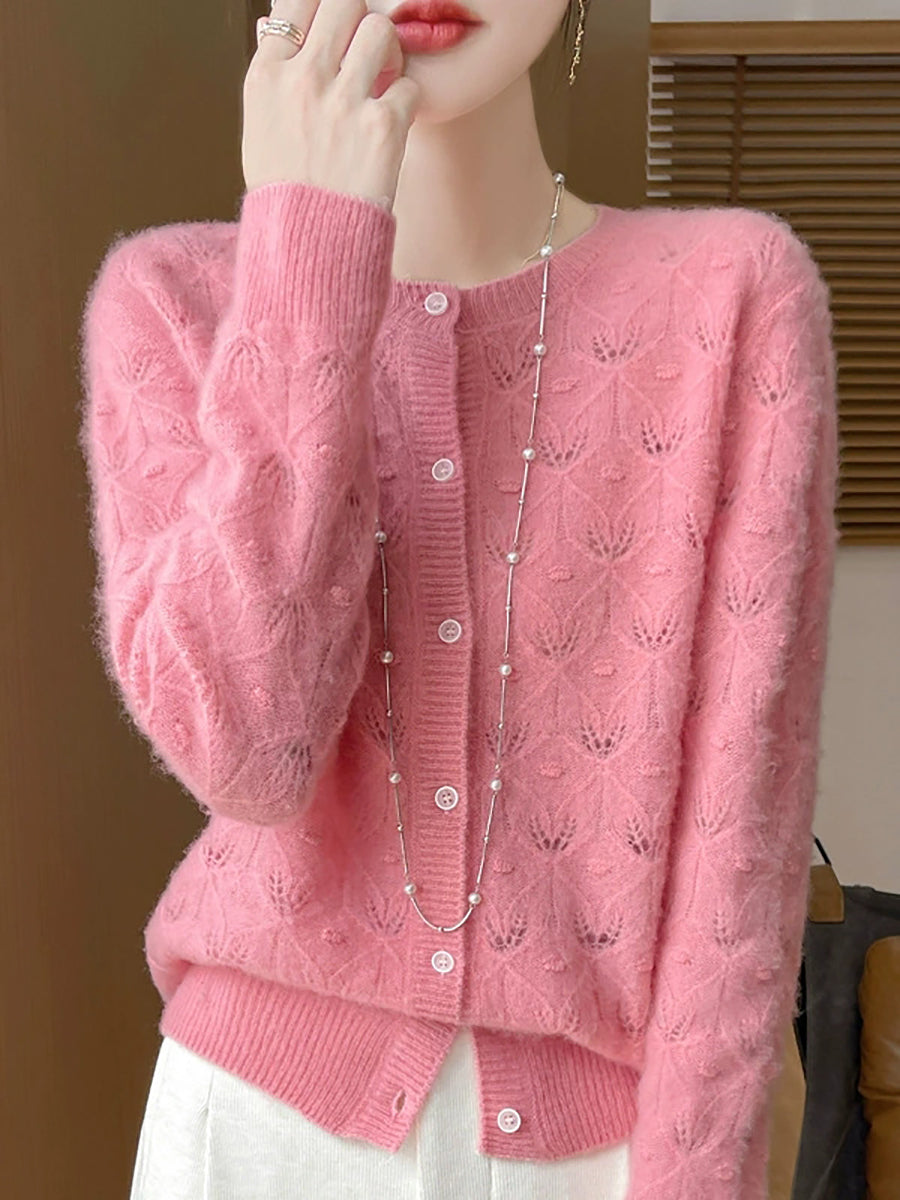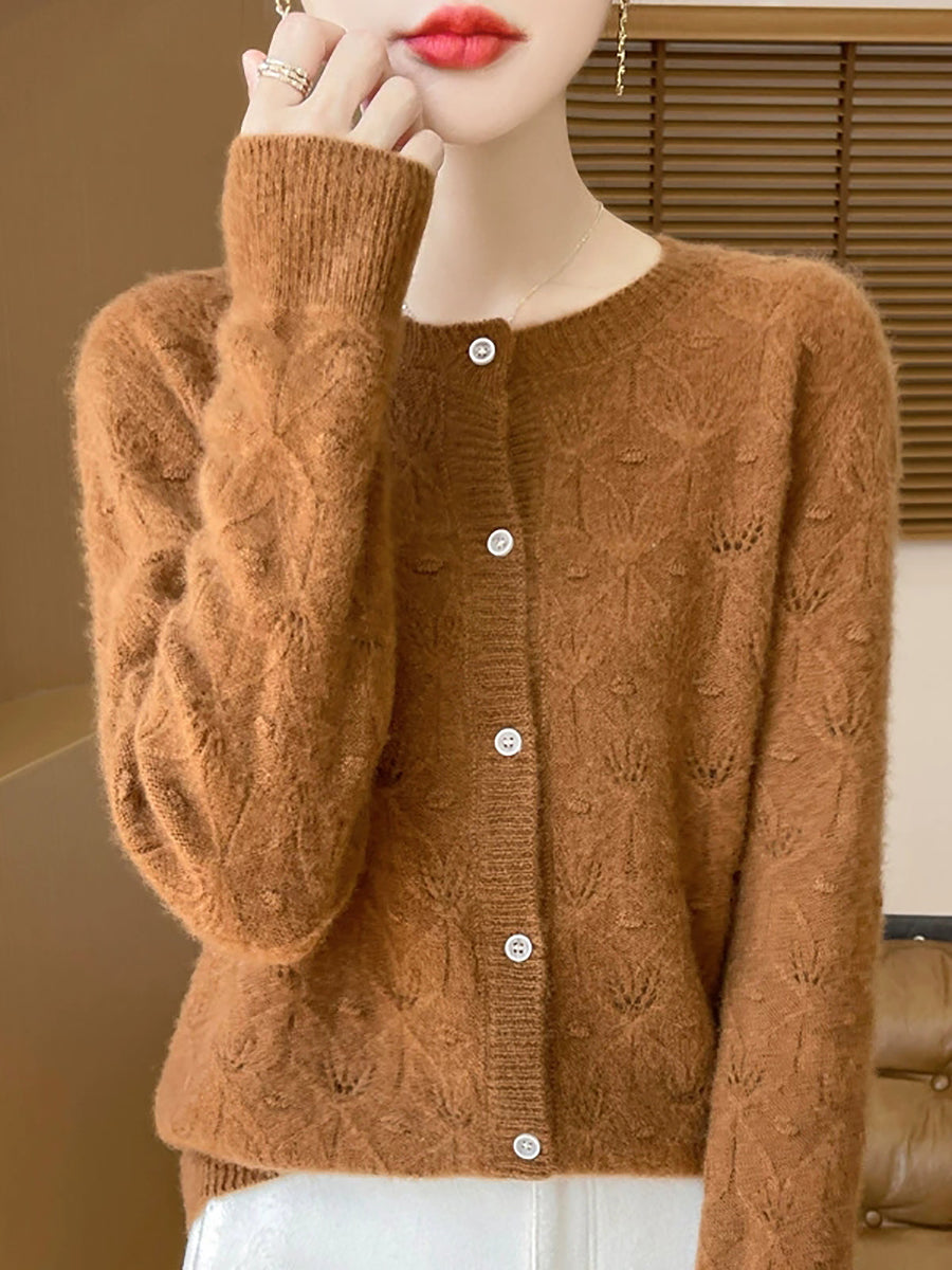 סוודר קרדיגן צמר O-צוואר בצבע טהור לאביב לנשים