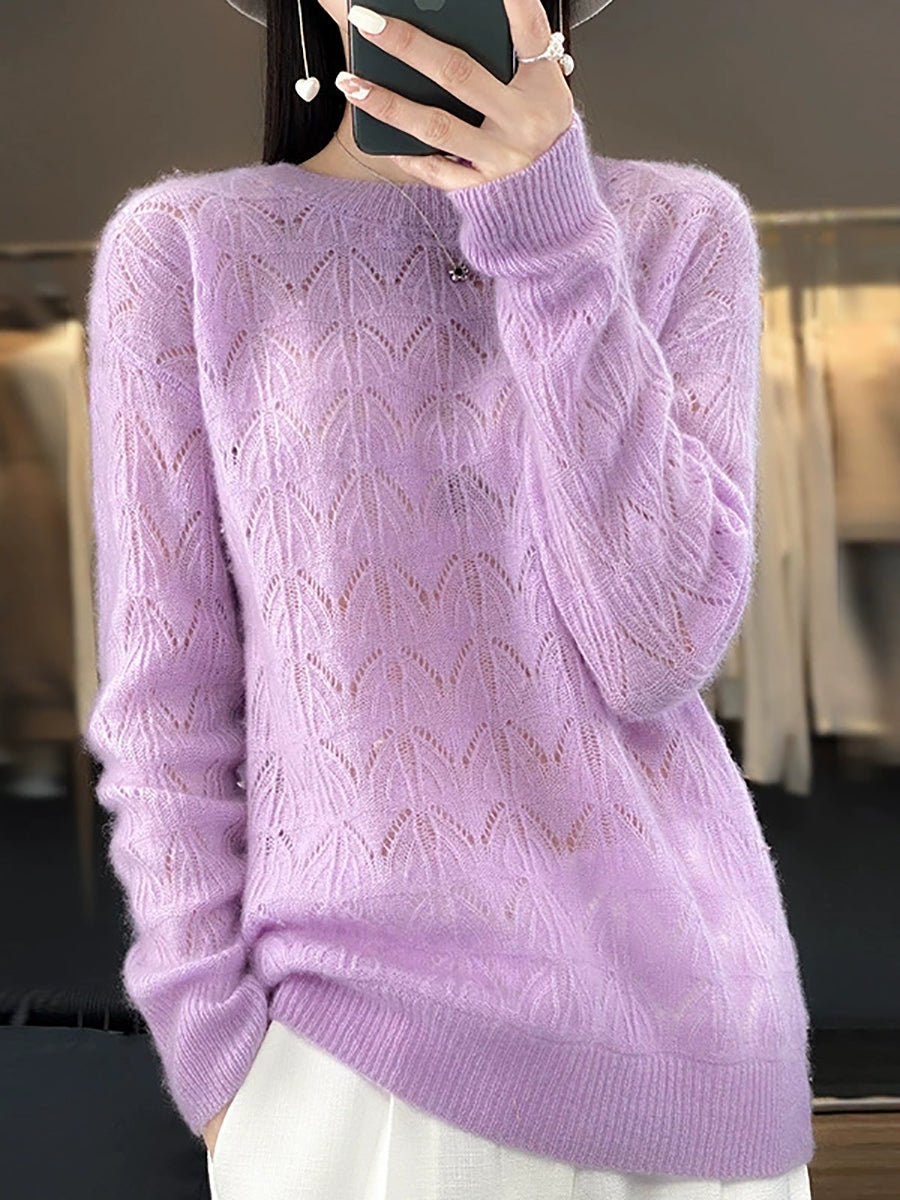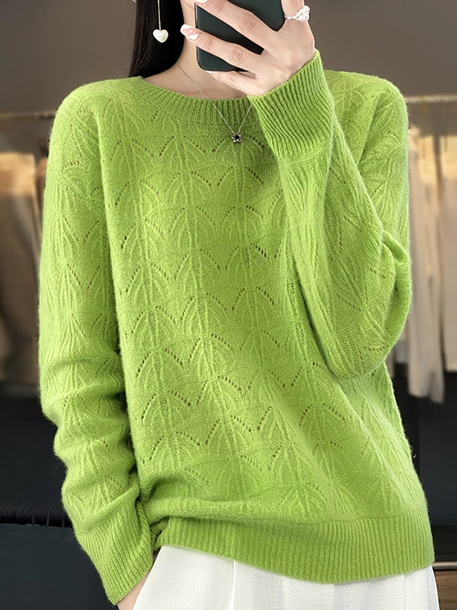 סוודר צמר O-צוואר בצבע טהור ואמנותי לנשים באביב