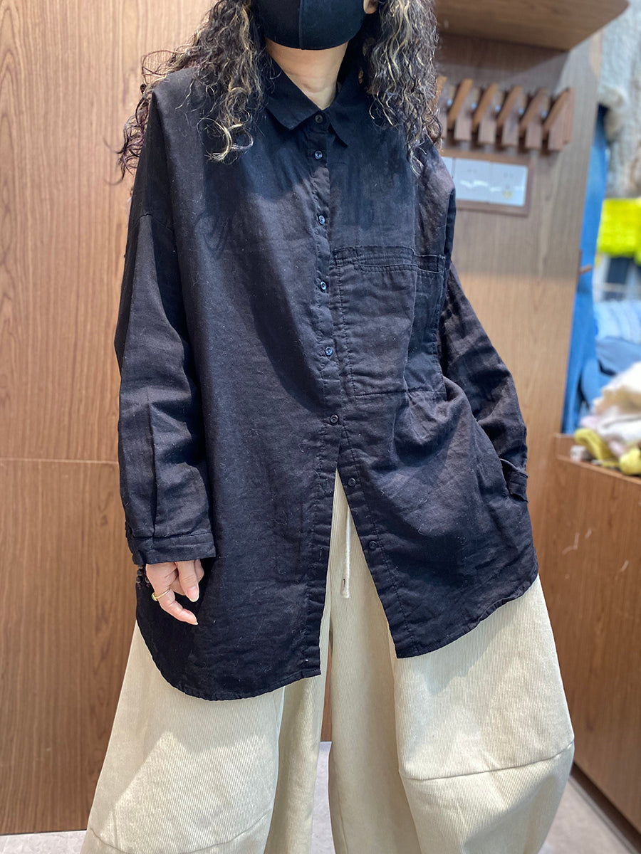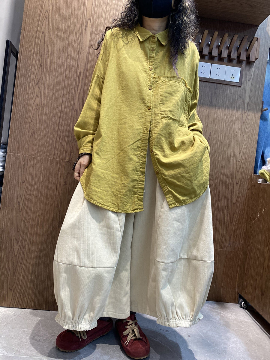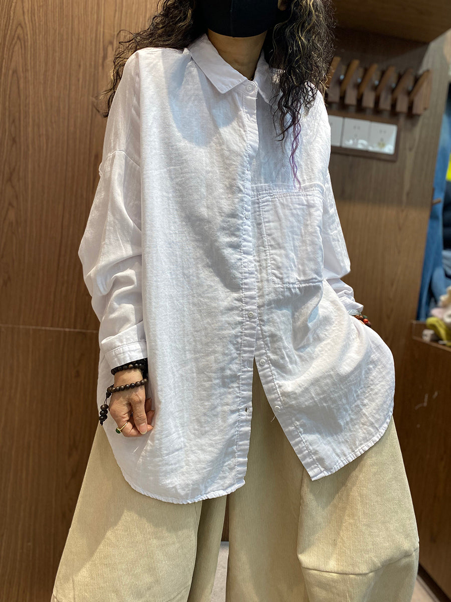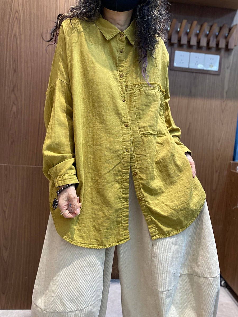 חולצת אביב לנשים עם צווארון הפוך, צבע טהור ואמנותי