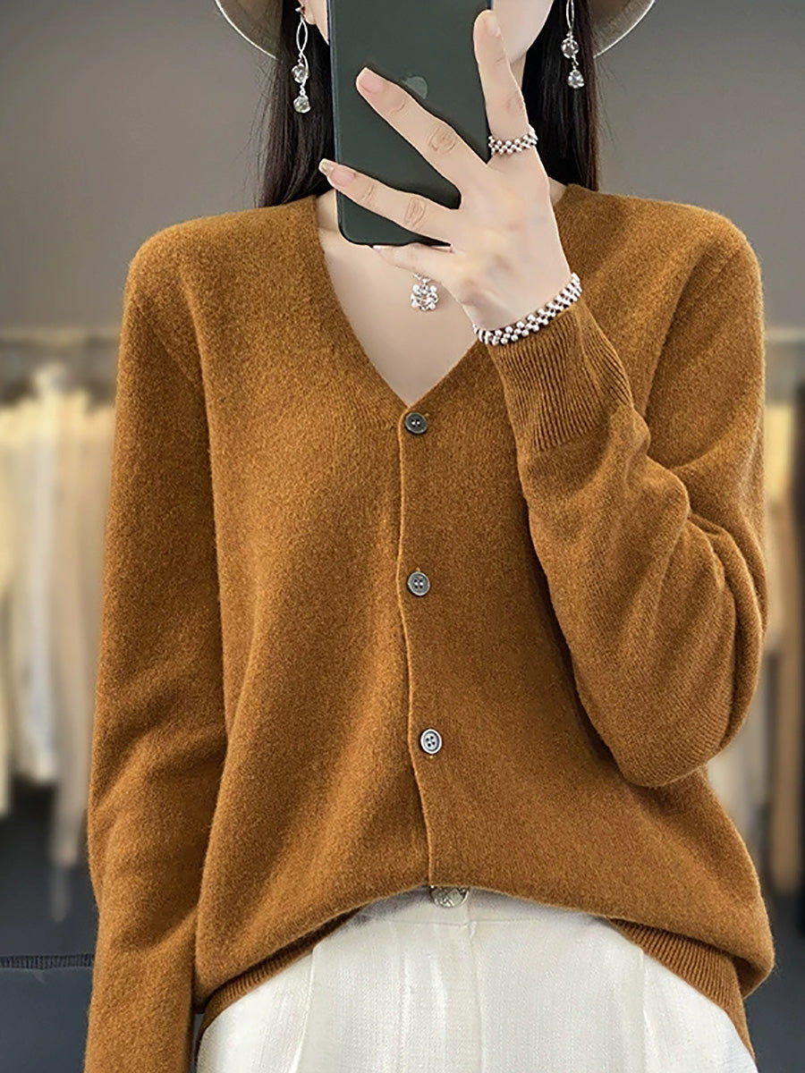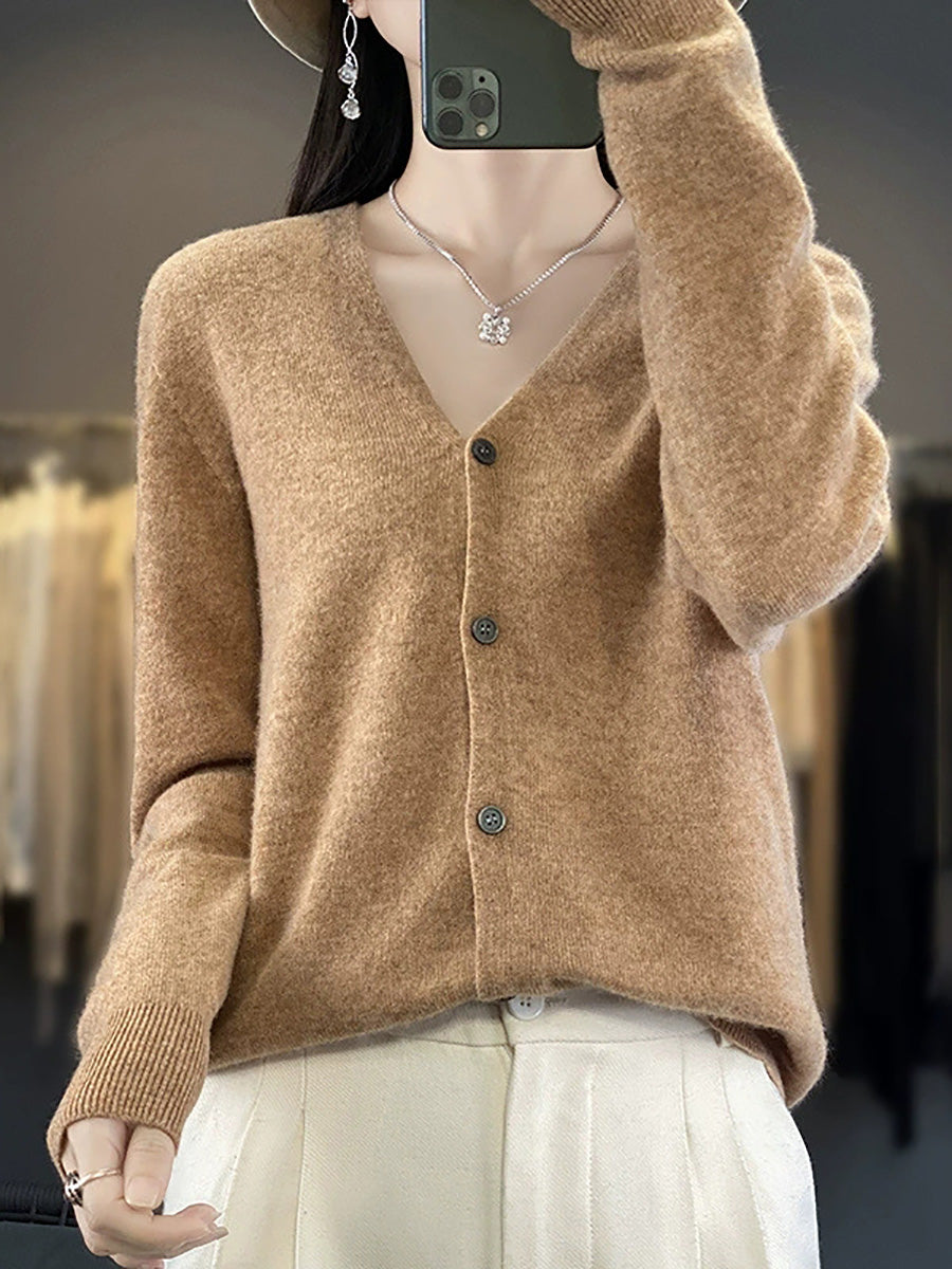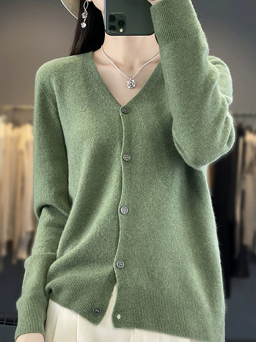 סוודר קרדיגן עם צווארון V בצבע טהור ואמנותי לנשים באביב