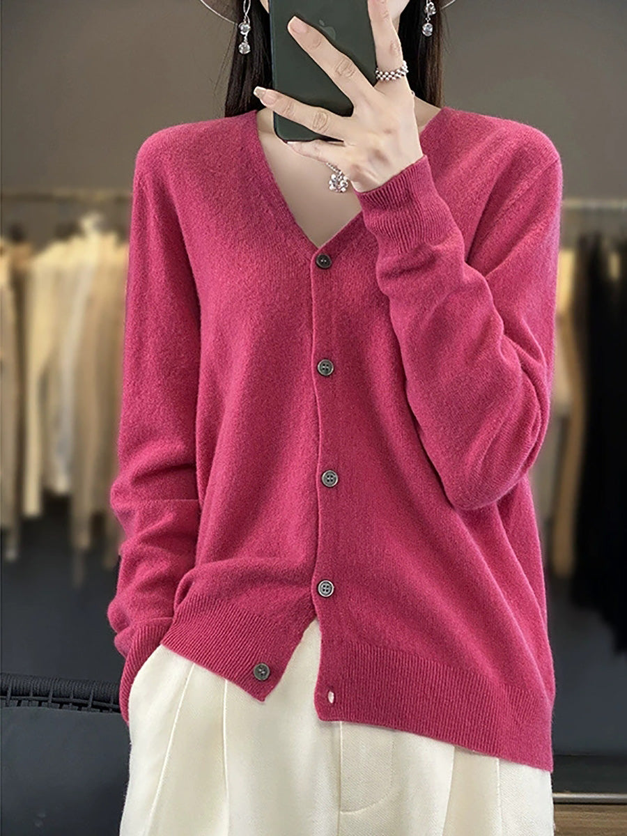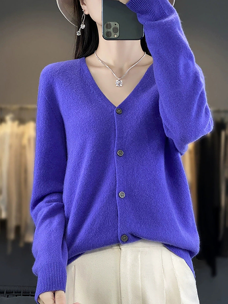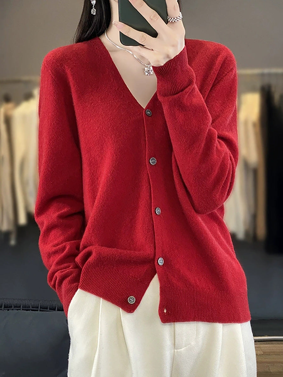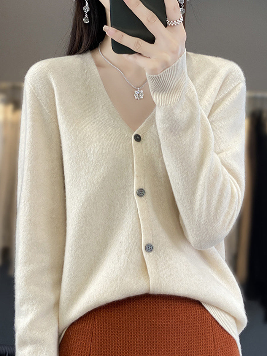 סוודר קרדיגן עם צווארון V בצבע טהור ואמנותי לנשים באביב