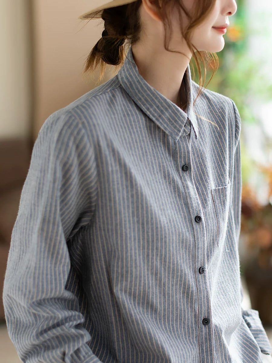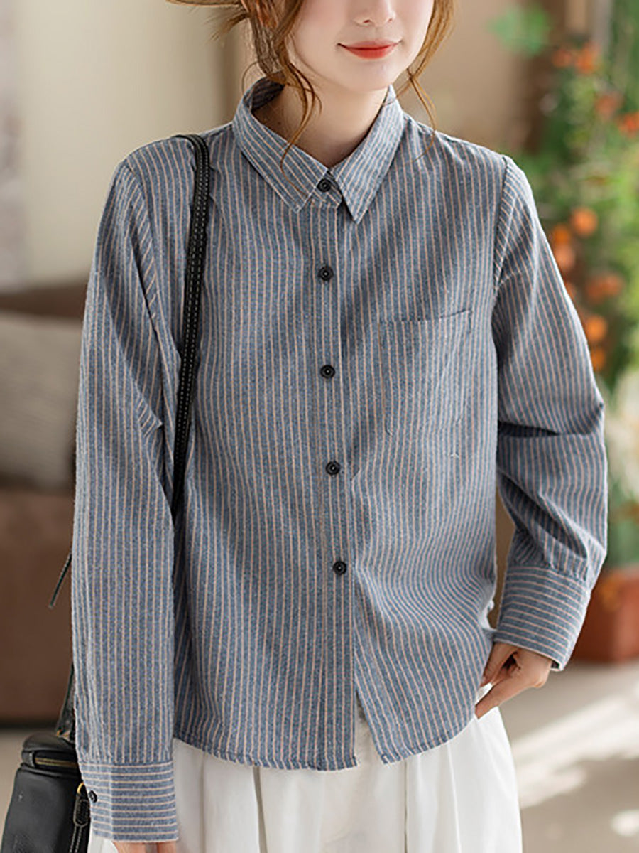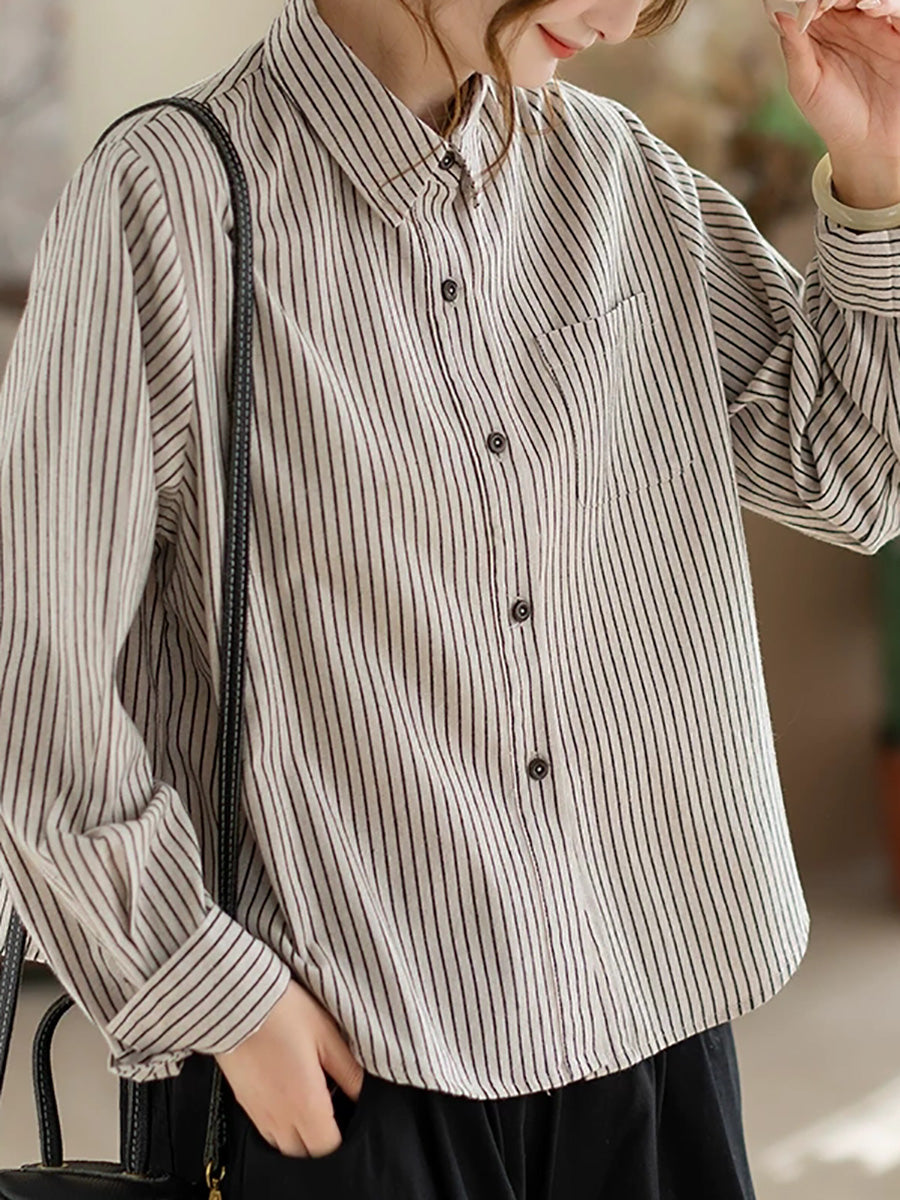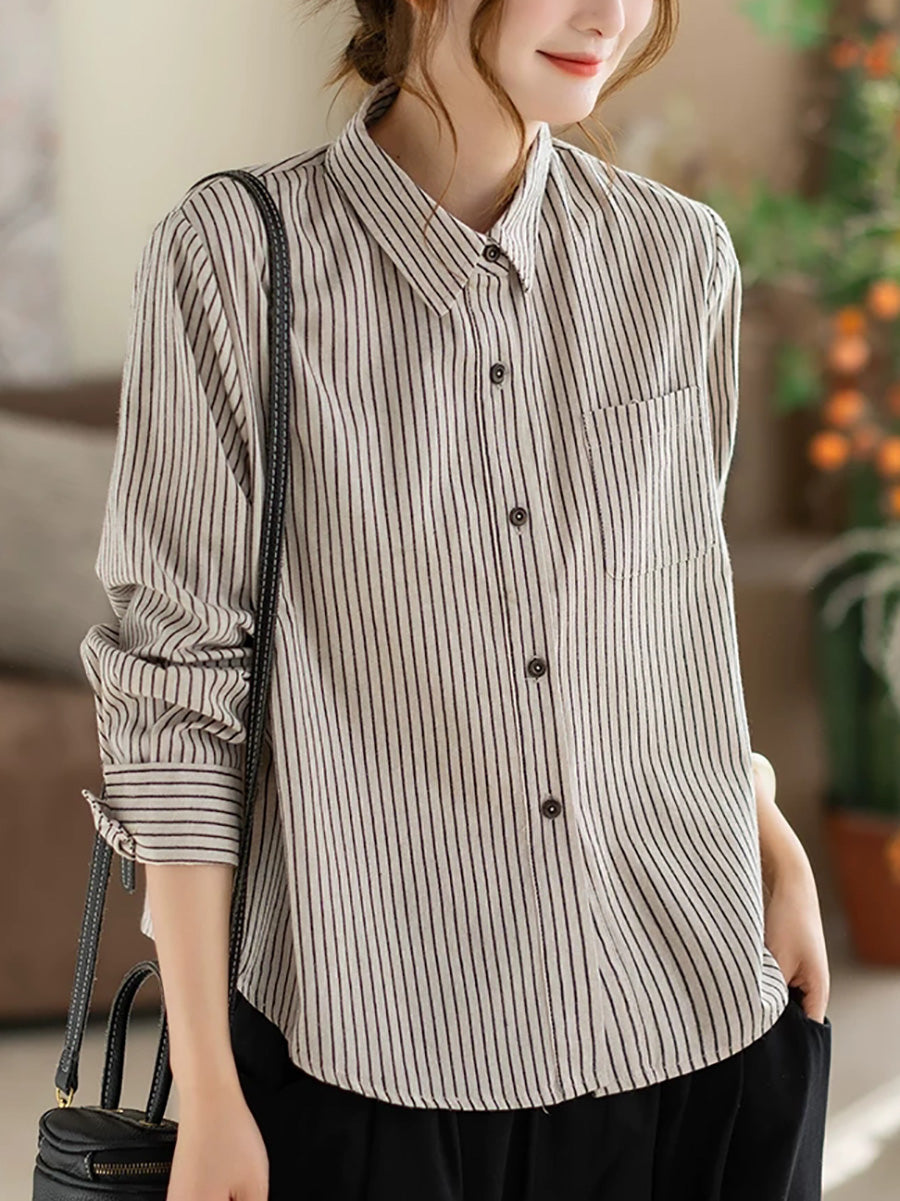 חולצת כותנה עם פסים אומנותיים לנשים באביב