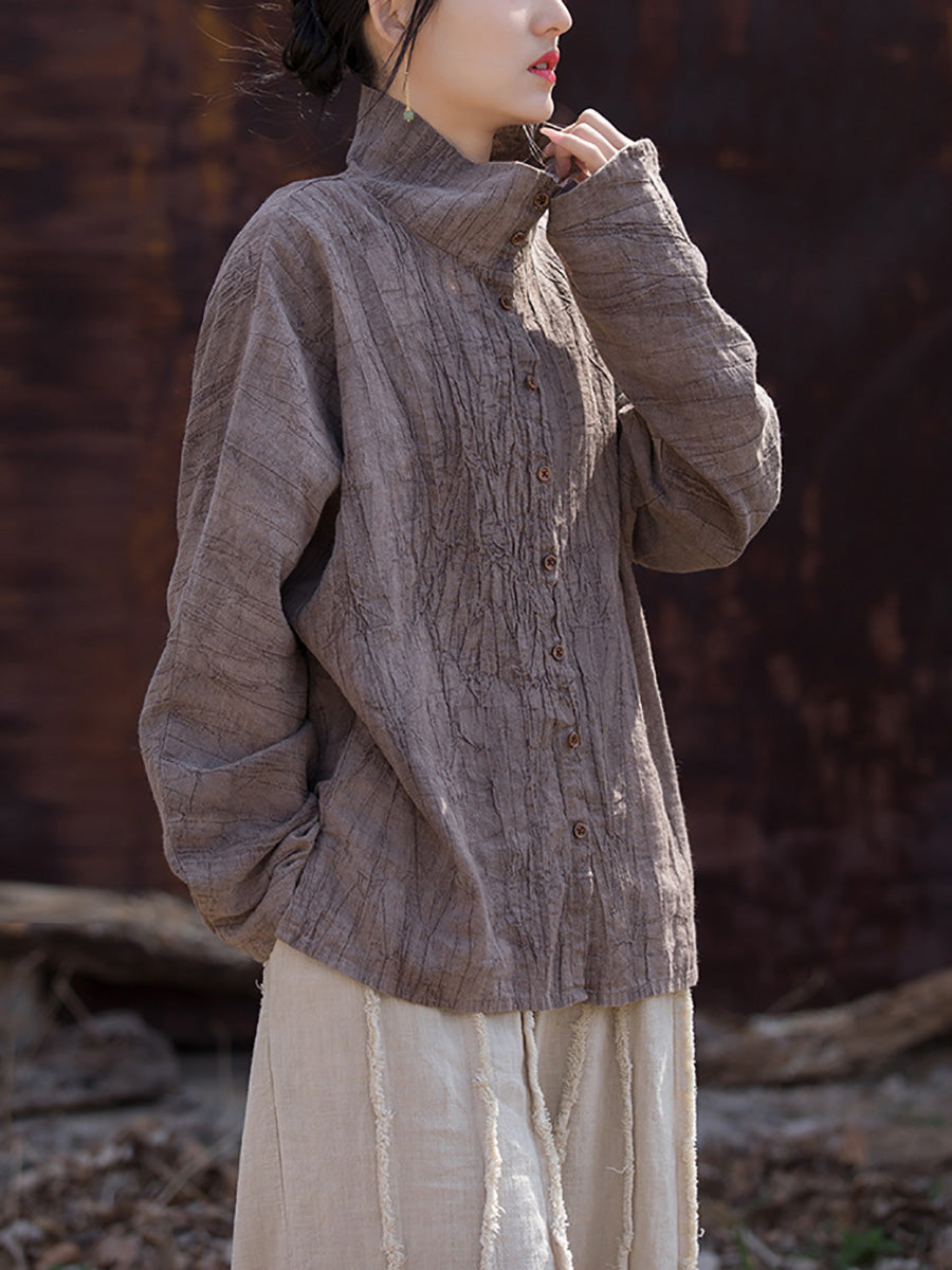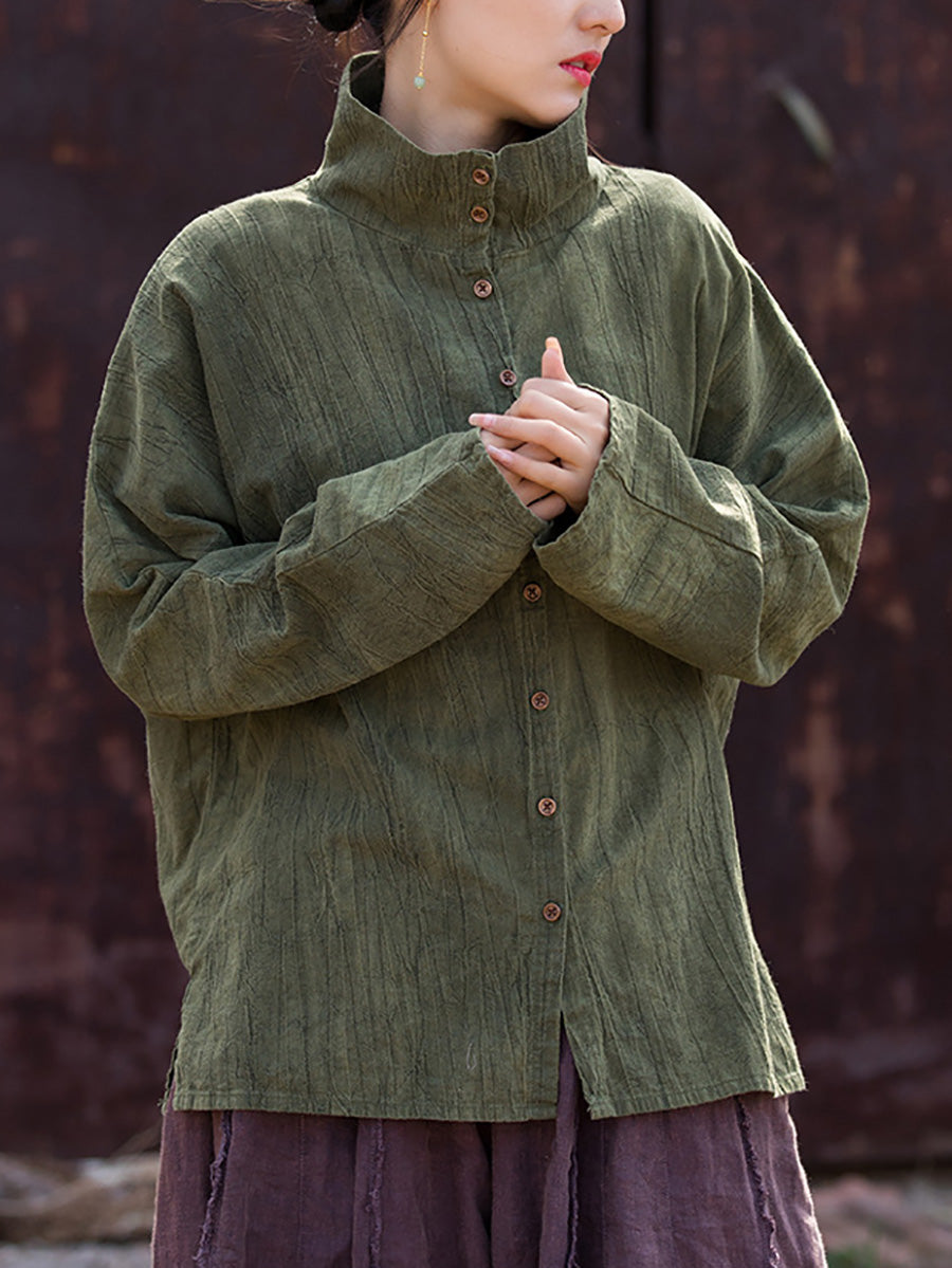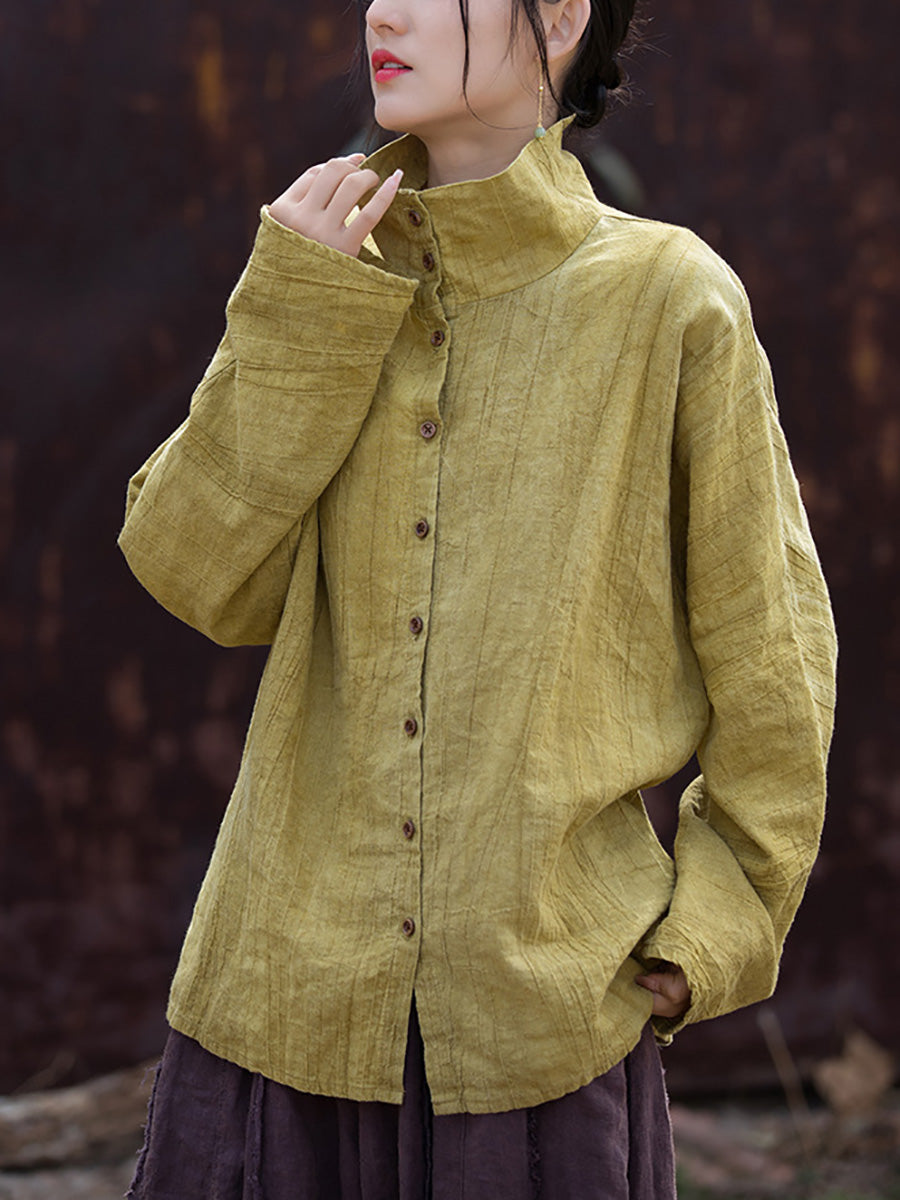 חולצת אביב אומנותית עם צווארון עומד בצבע עניבה לנשים