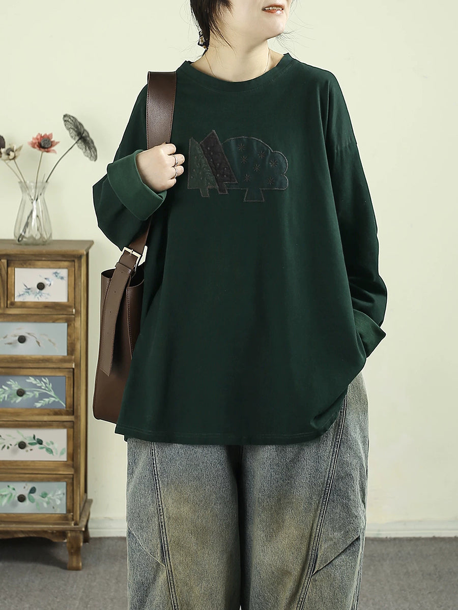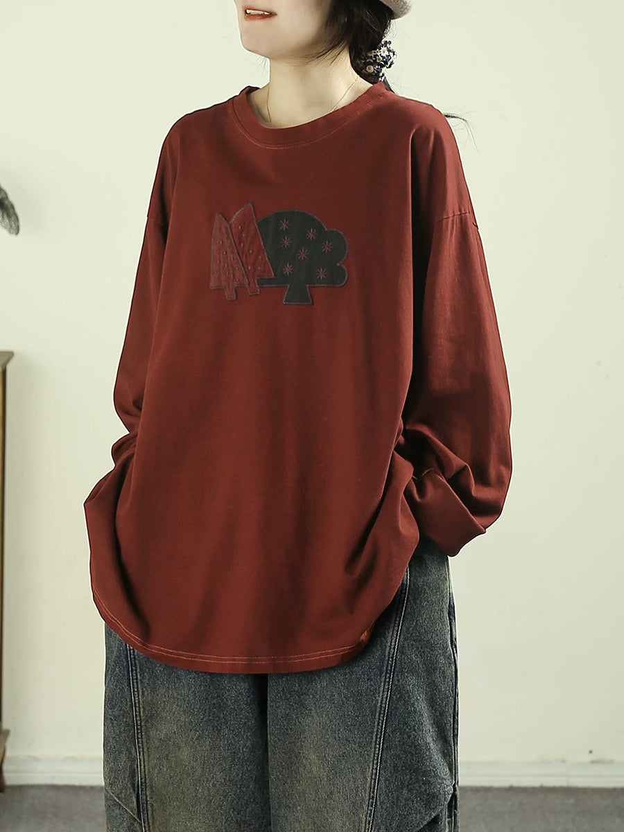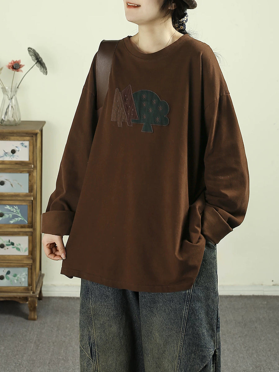 חולצת אביב לנשים עם צווארון O ועטיפה על עץ אמנותי 100% כותנה