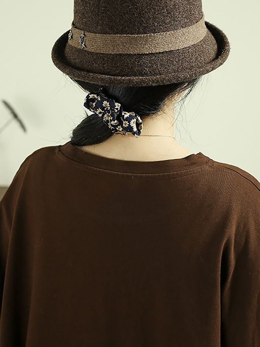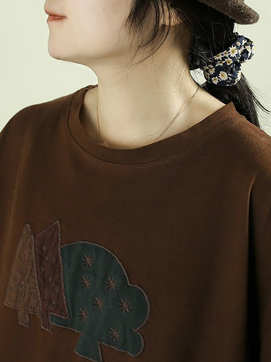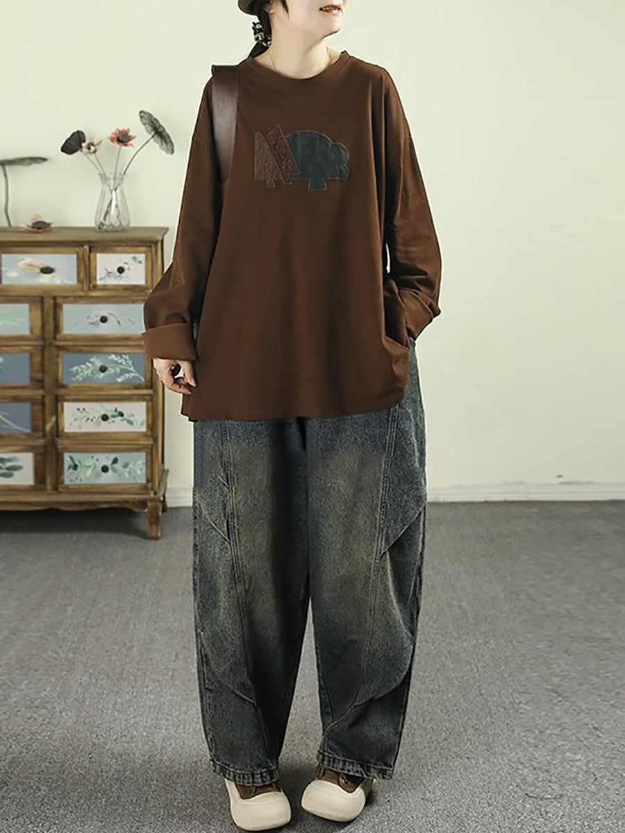 חולצת אביב לנשים עם צווארון O ועטיפה על עץ אמנותי 100% כותנה