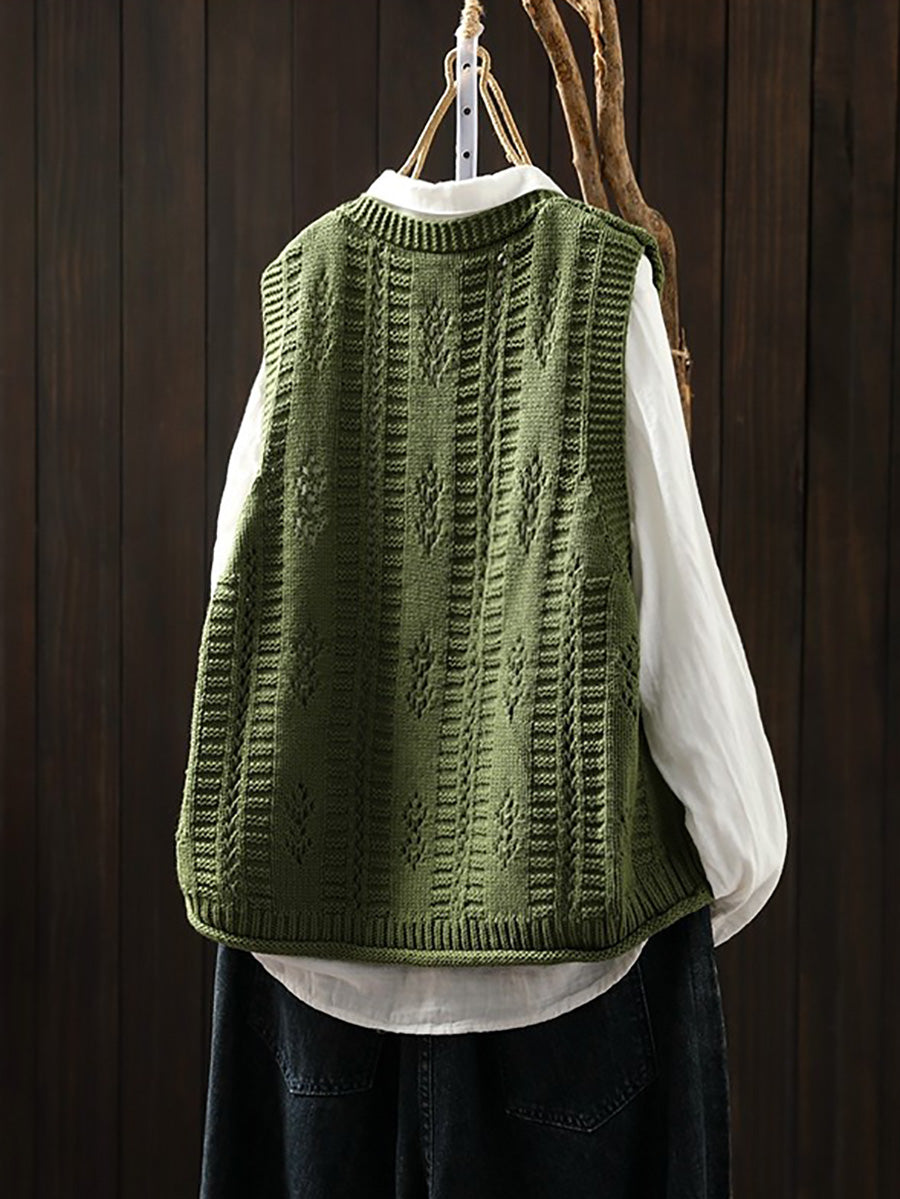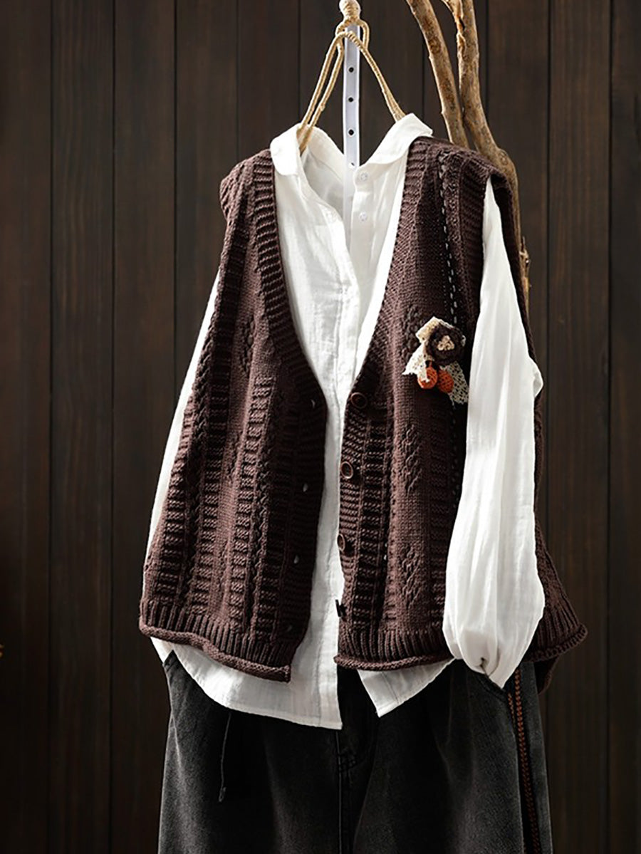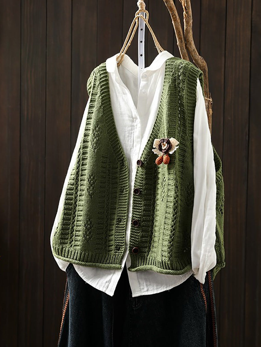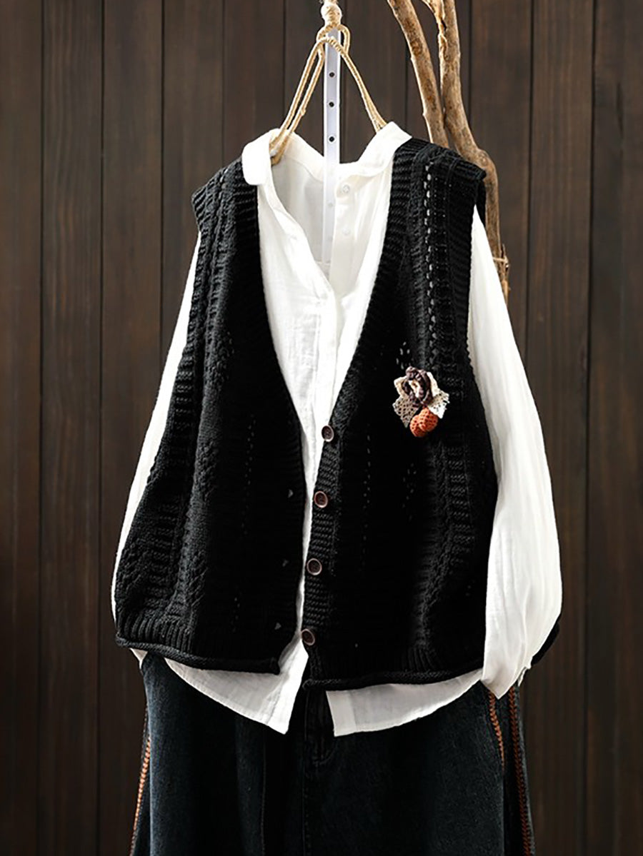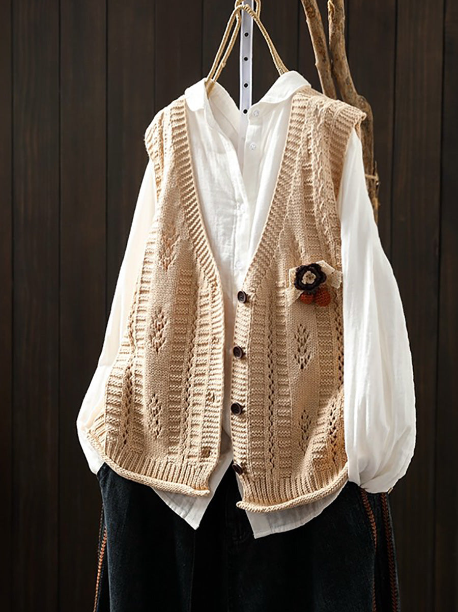 אפוד סרוג עם צווארון V לאביב לנשים
