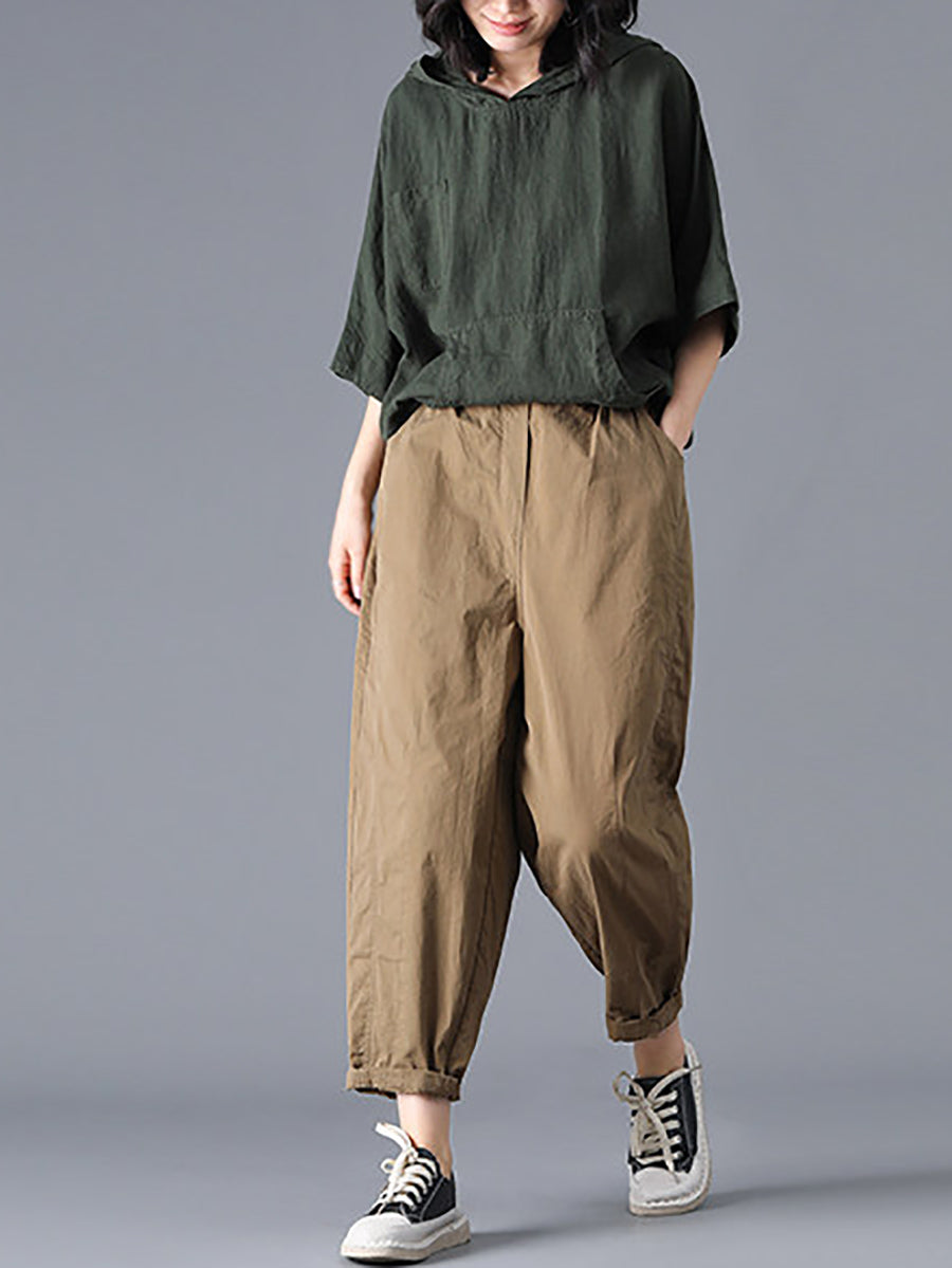 מכנסי הרמון מזדמנים לנשים, 100% כותנה, אביב