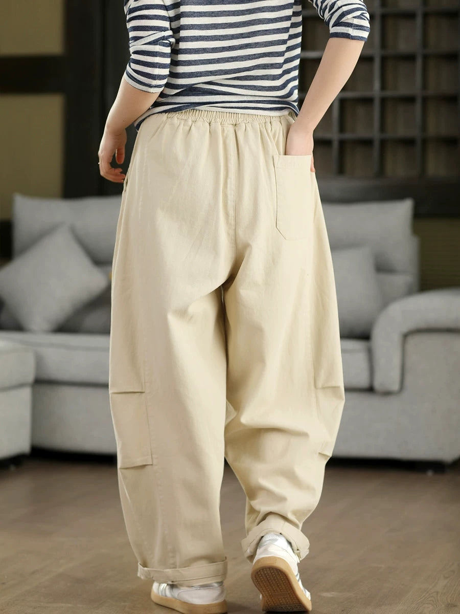 מכנסי הרמון לנשים באביב מזדמנים בצבע טהור 100% כותנה