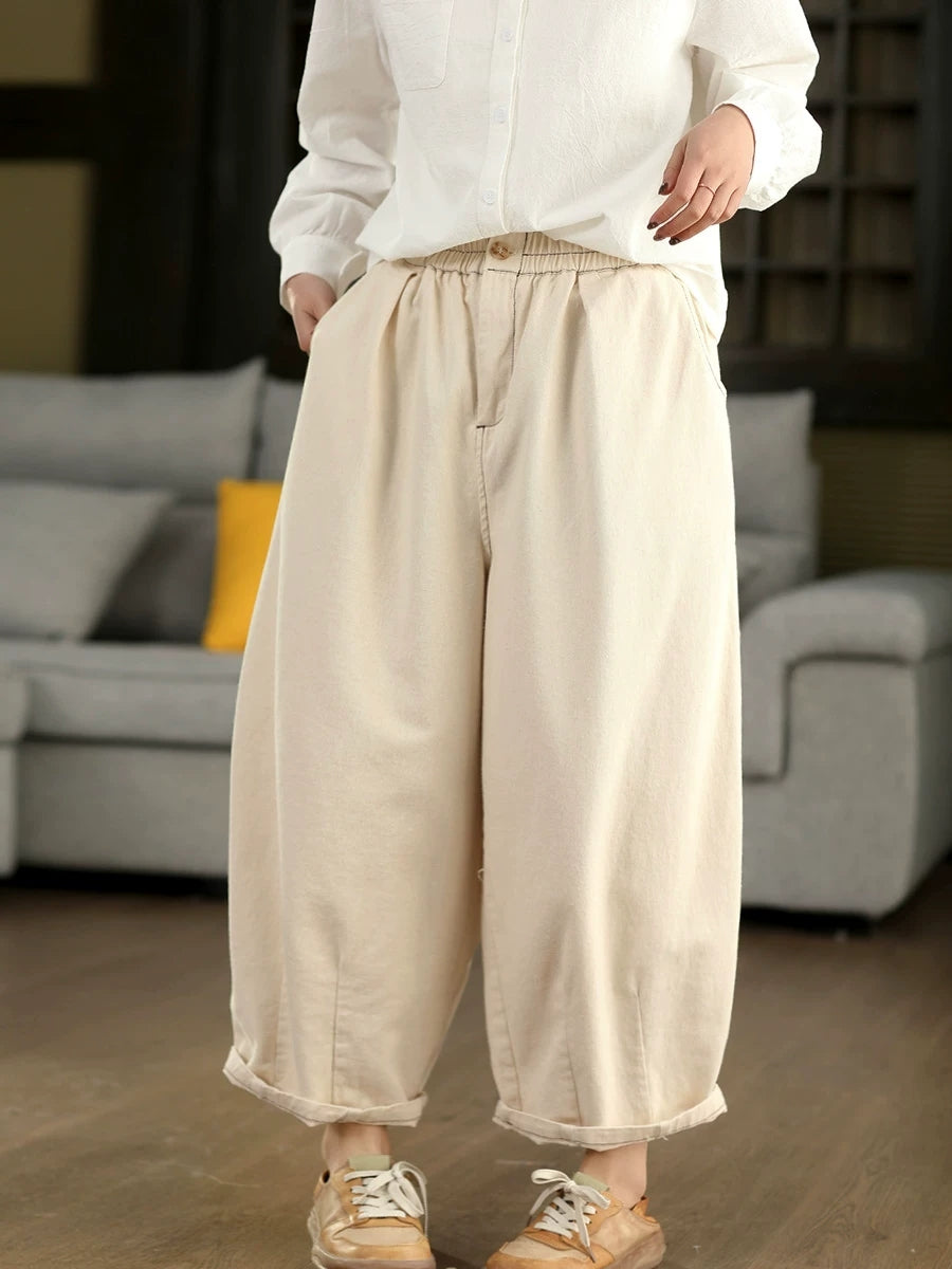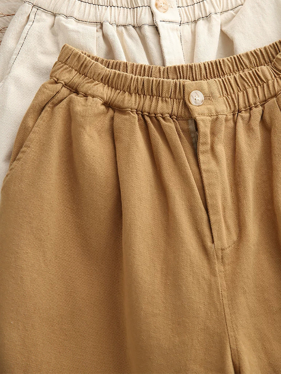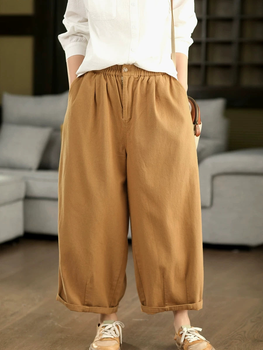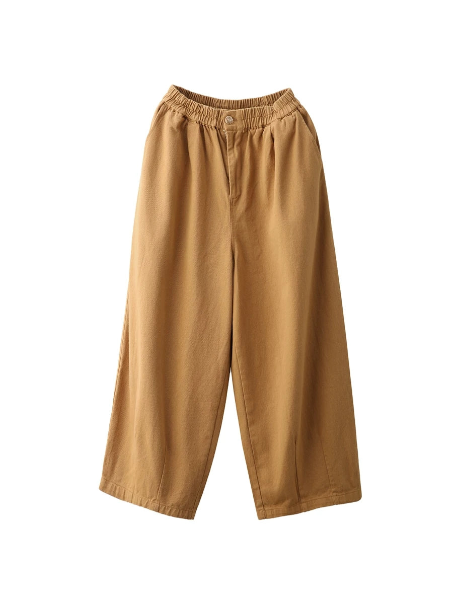 מכנסיים ישרים בצבע טהור 100% כותנה לנשים באביב