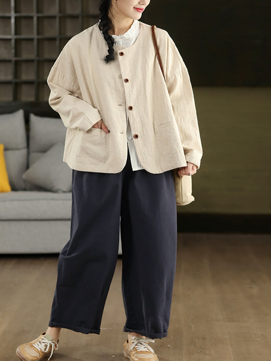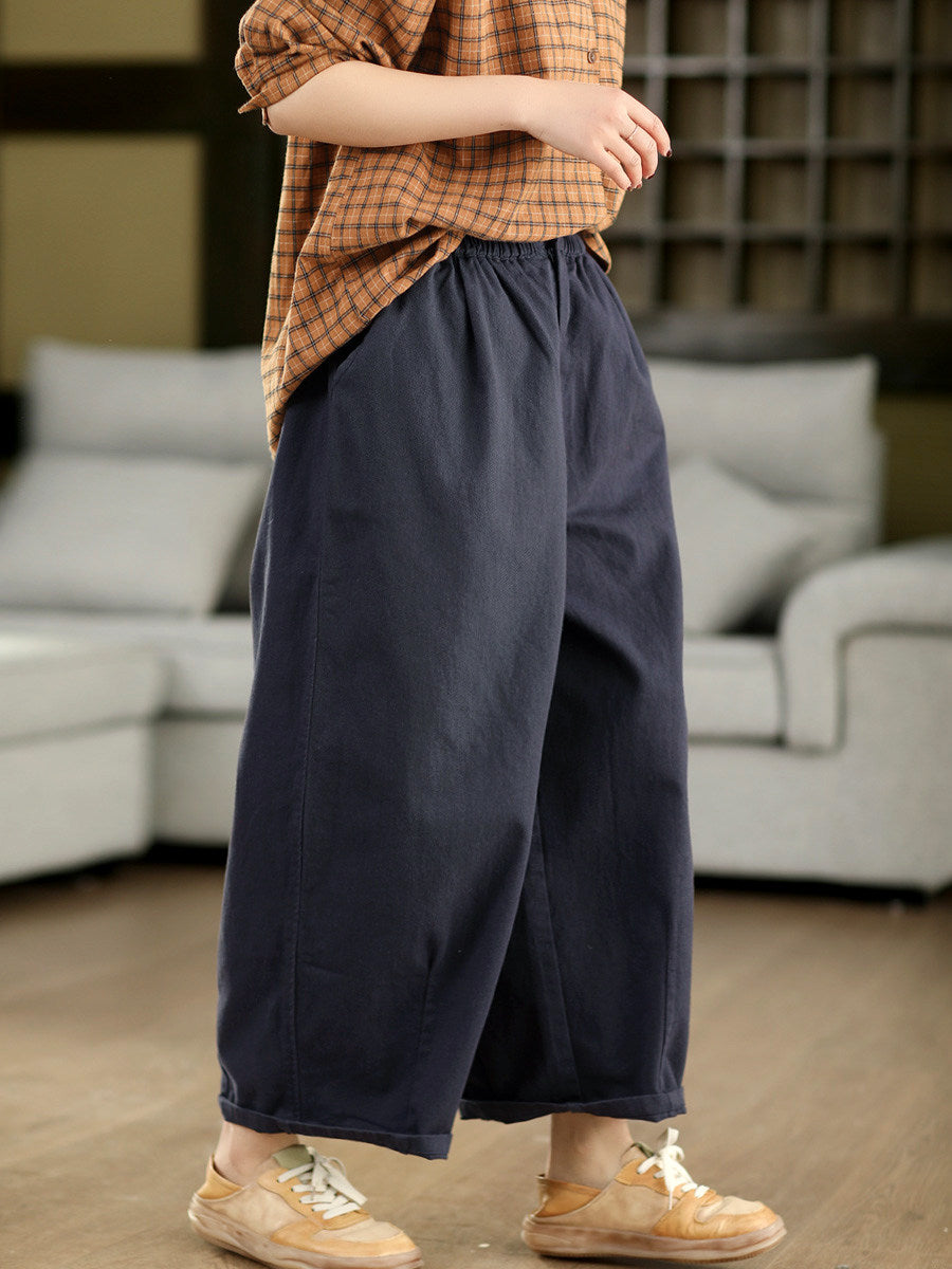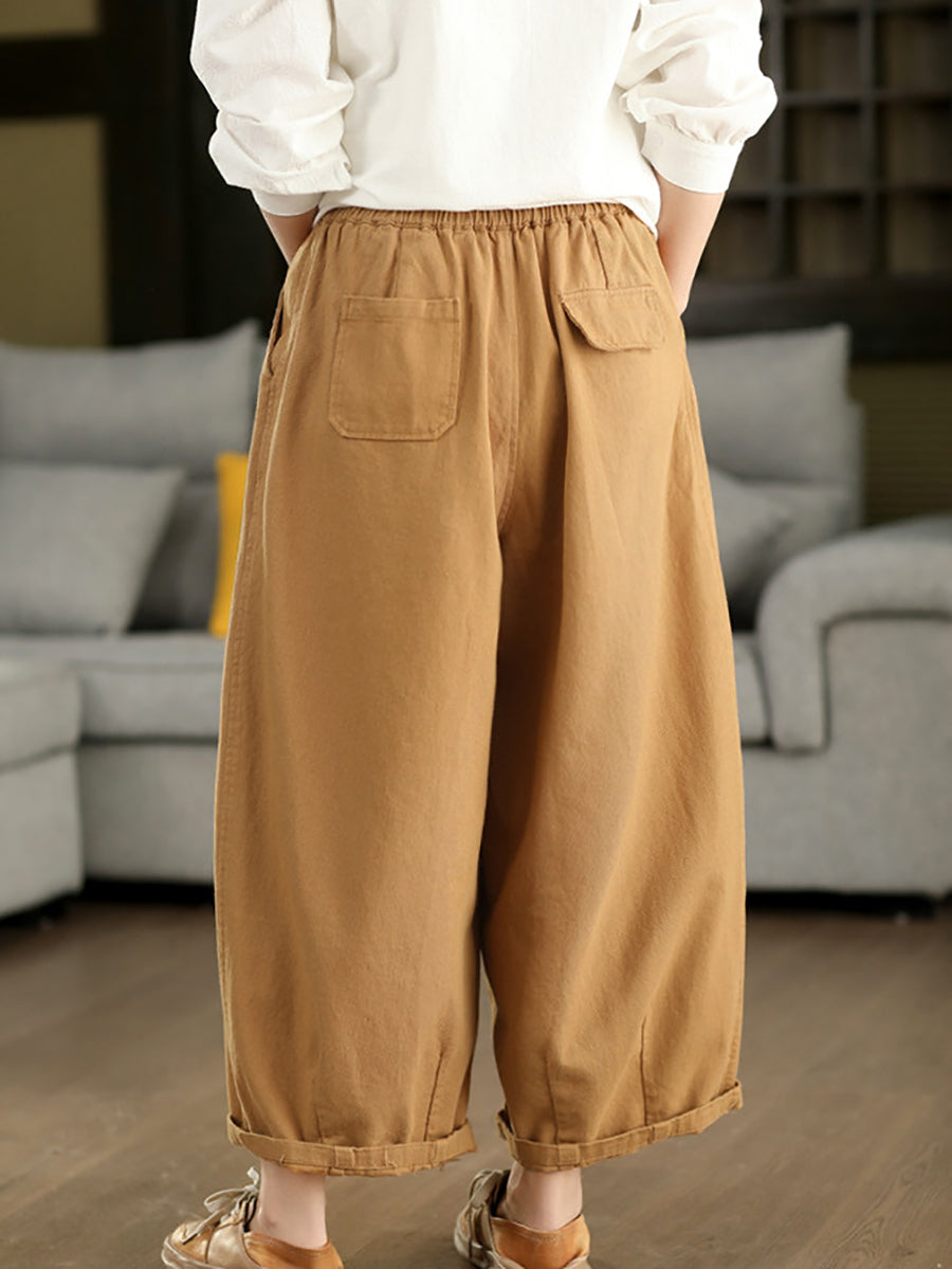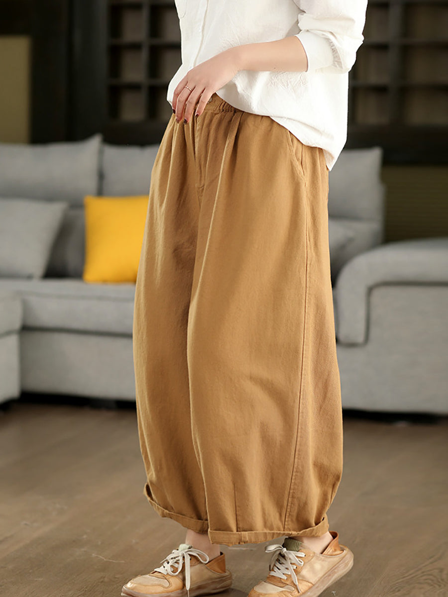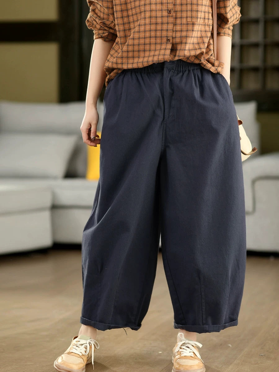 מכנסיים ישרים בצבע טהור 100% כותנה לנשים באביב