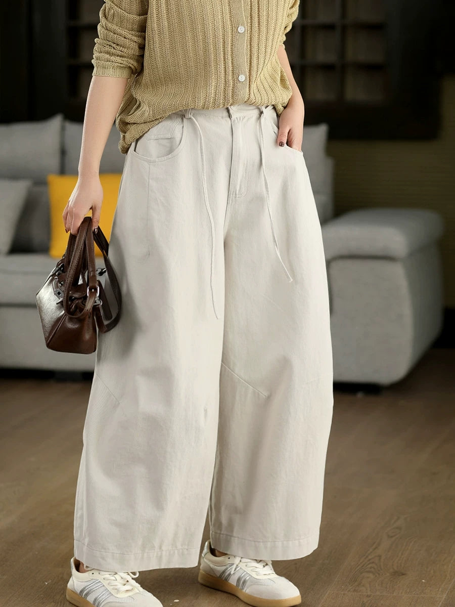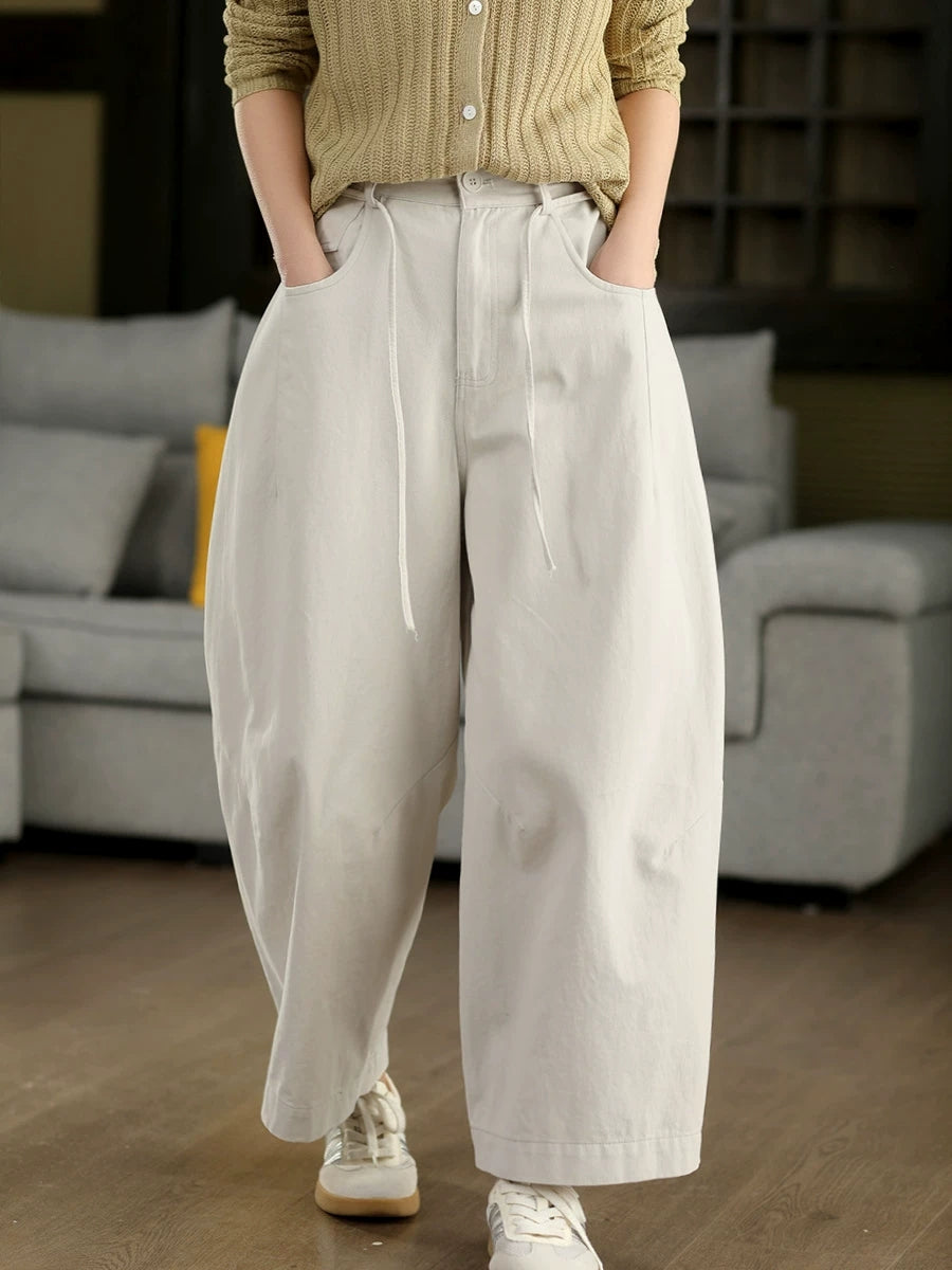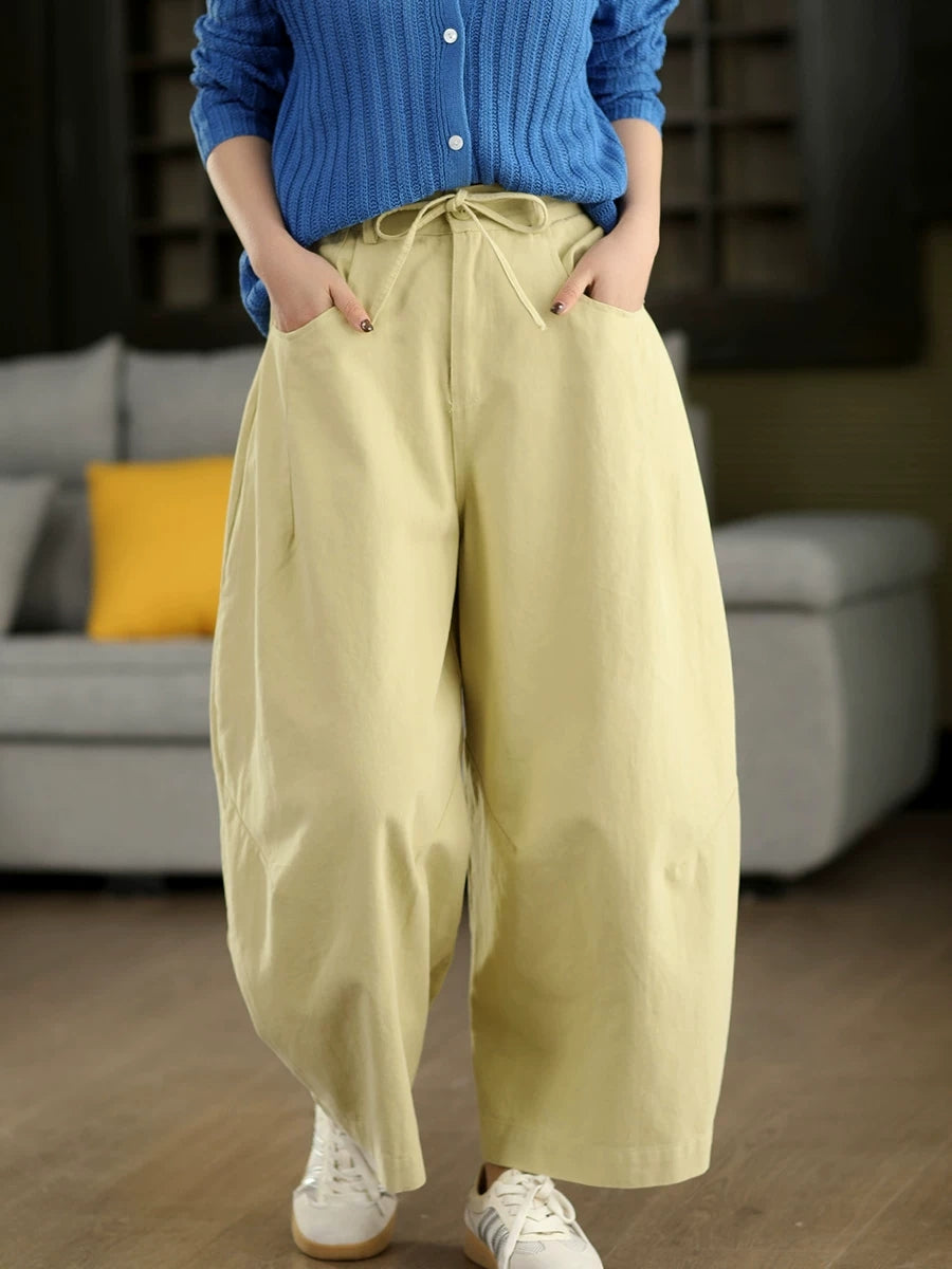מכנסי אביב מזדמנים לנשים בצבע טהור 100% כותנה רחבים
