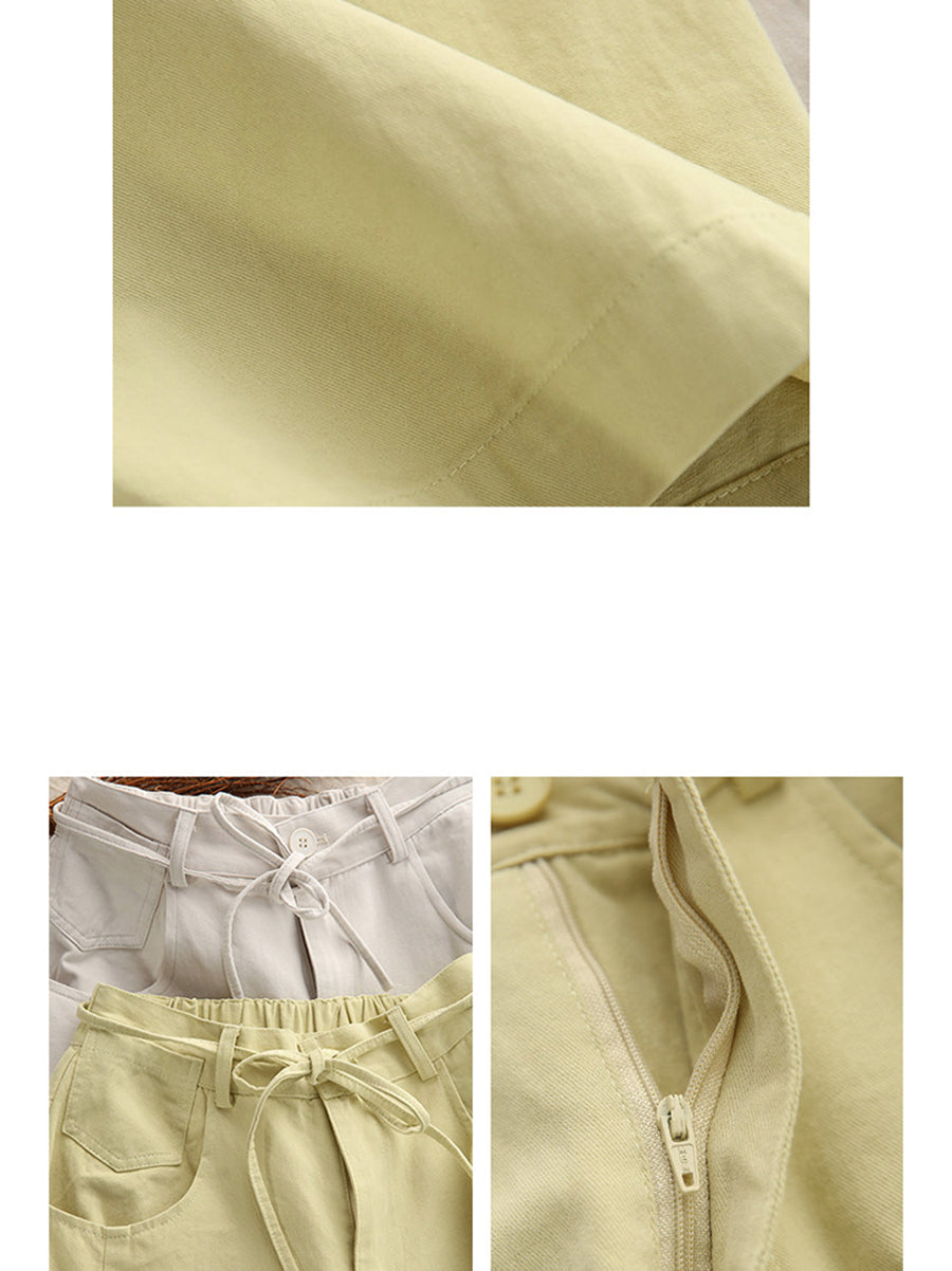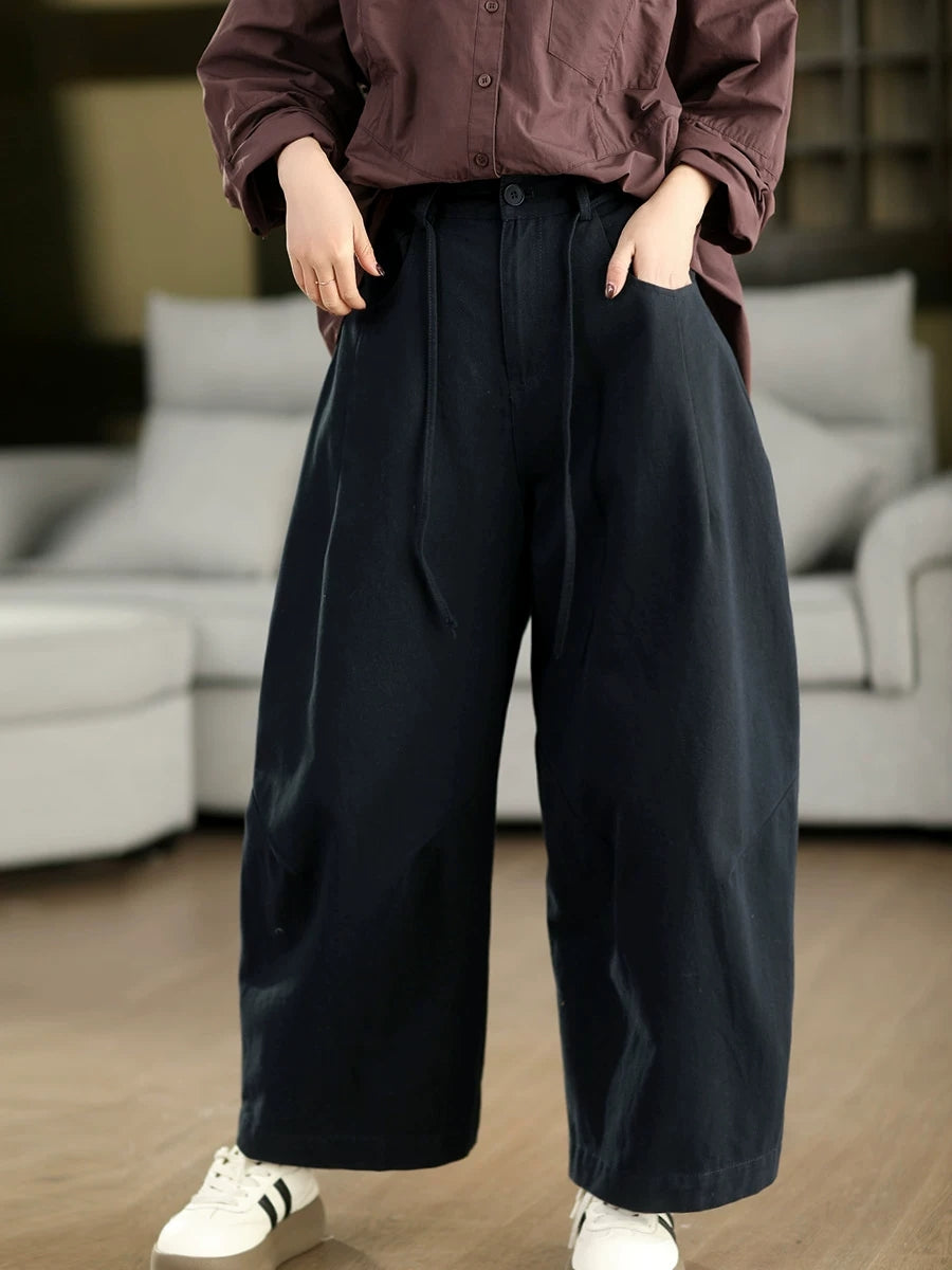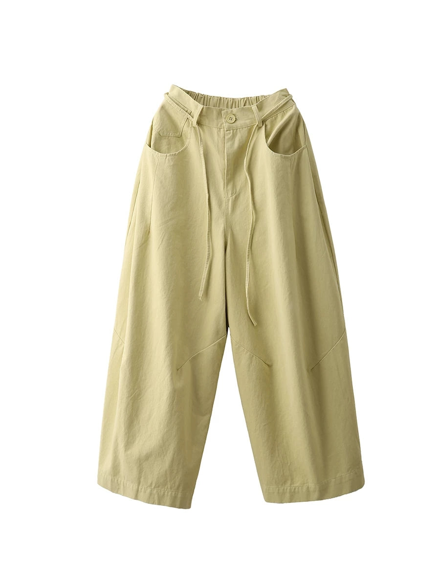 מכנסי אביב מזדמנים לנשים בצבע טהור 100% כותנה רחבים