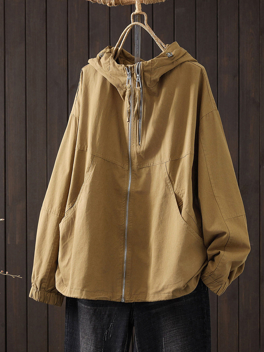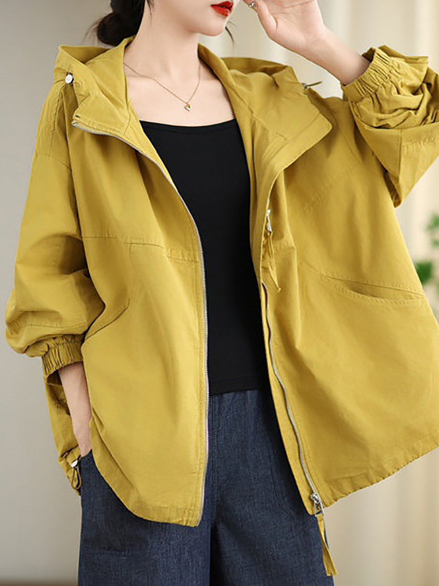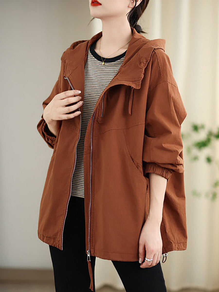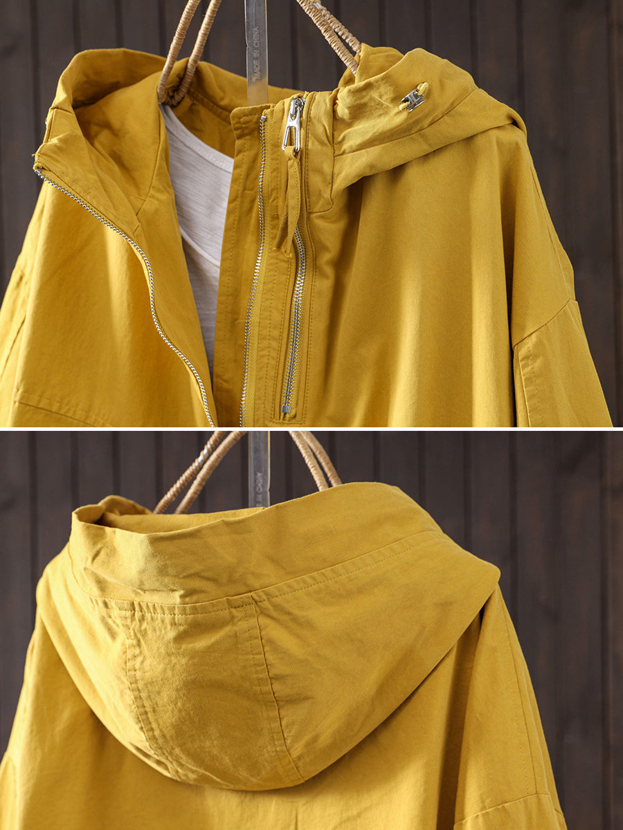 מעיל אביב מזדמן לנשים עם קפוצ'ון בצבע טהור 100% כותנה