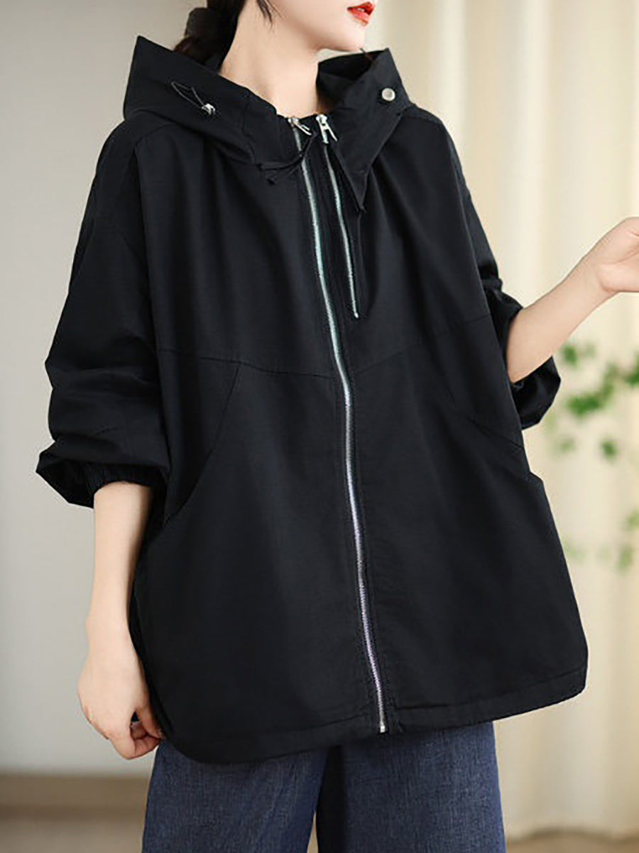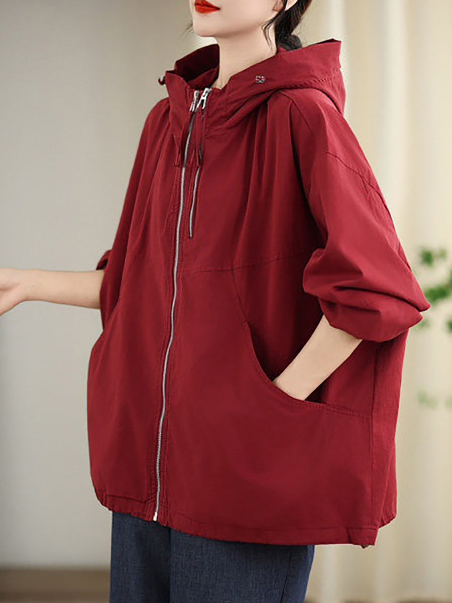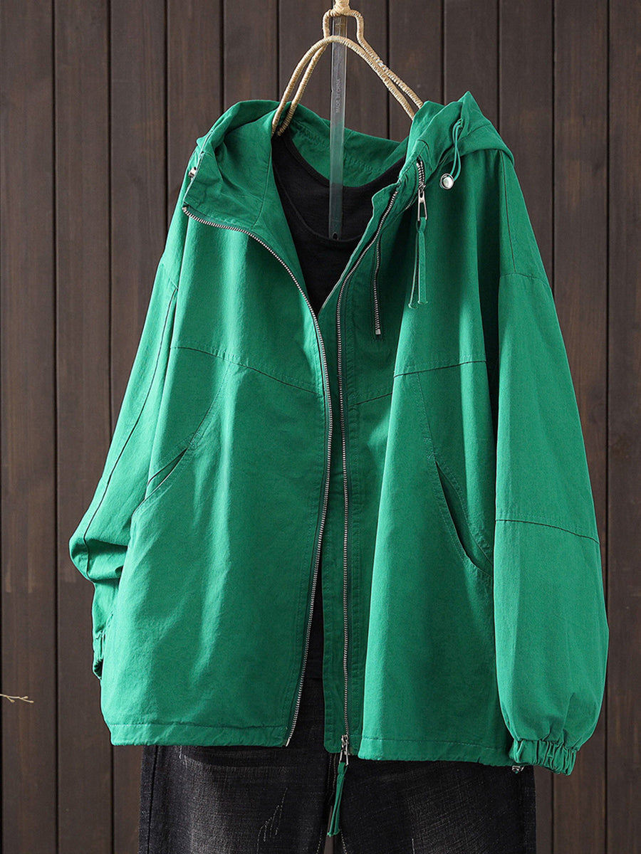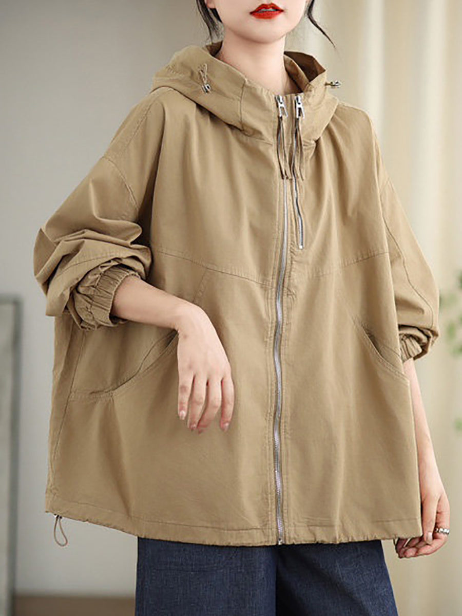 מעיל אביב מזדמן לנשים עם קפוצ'ון בצבע טהור 100% כותנה