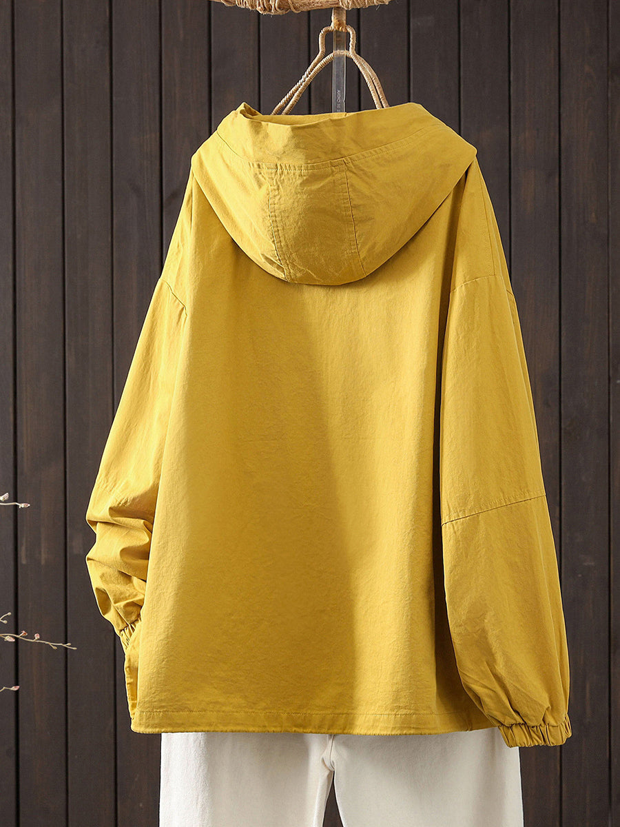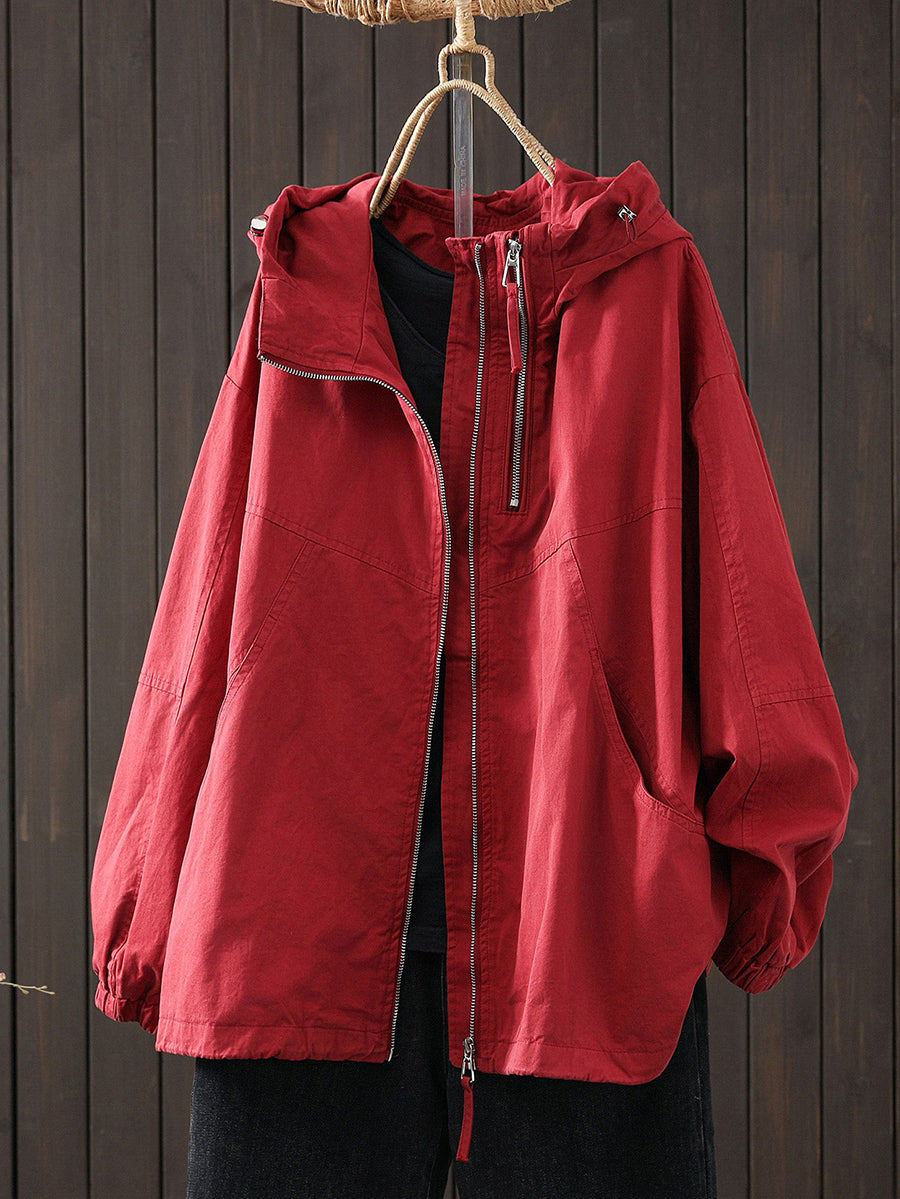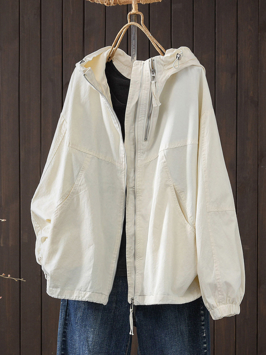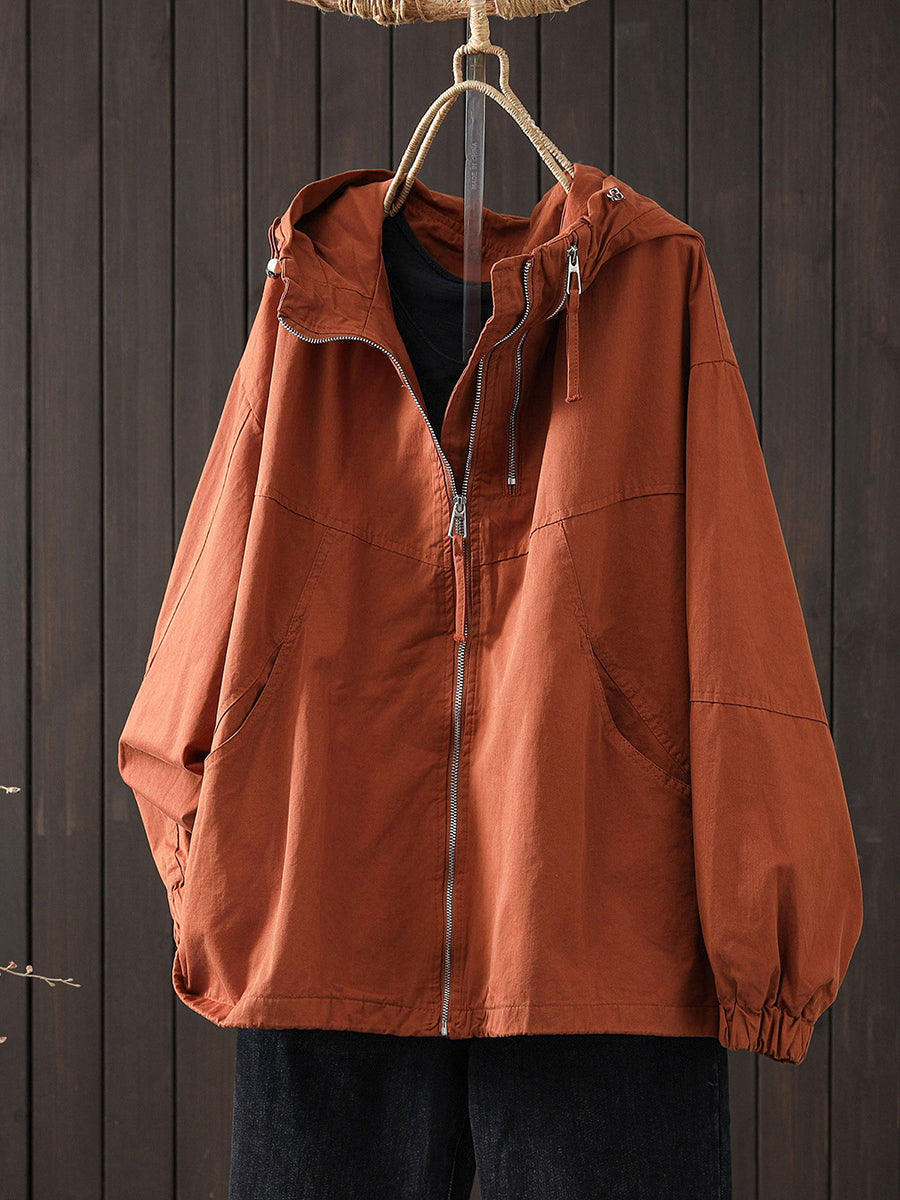 מעיל אביב מזדמן לנשים עם קפוצ'ון בצבע טהור 100% כותנה