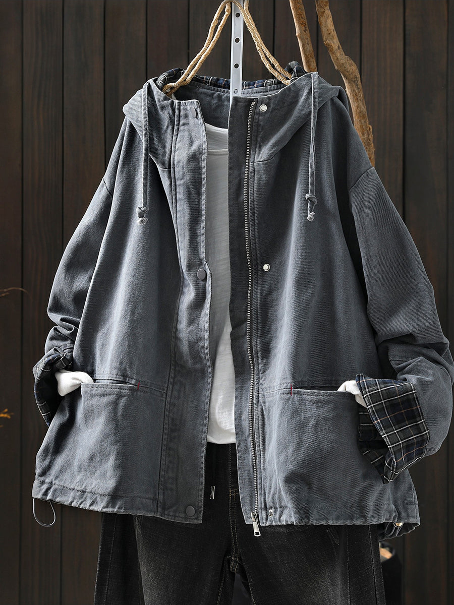 מעיל קפוצ'ון בצבע טהור מזדמן לנשים באביב