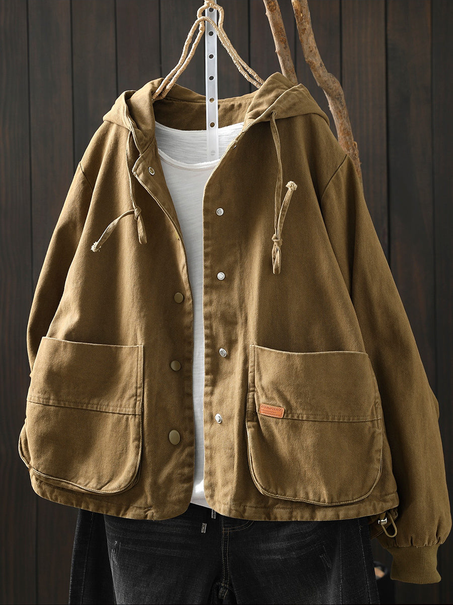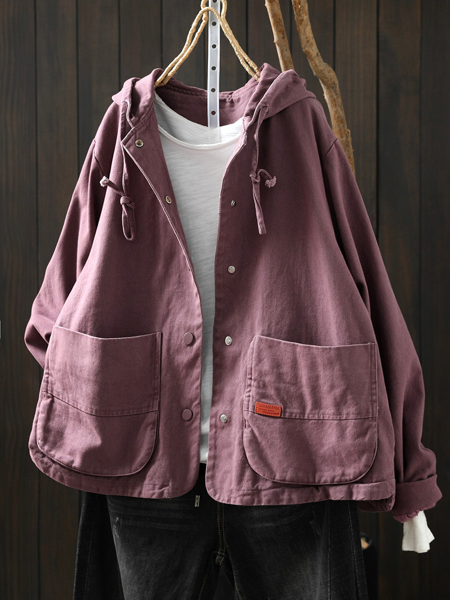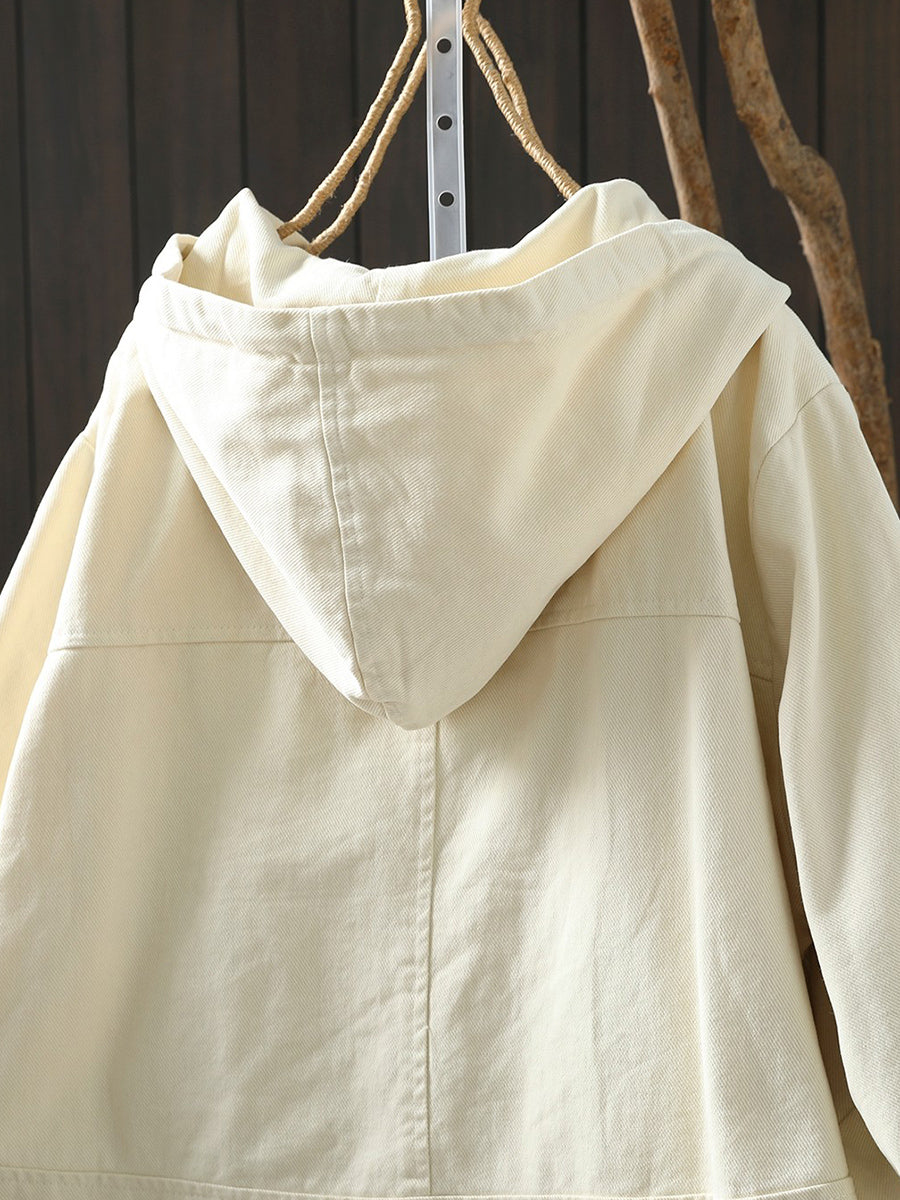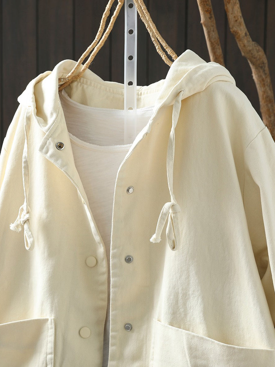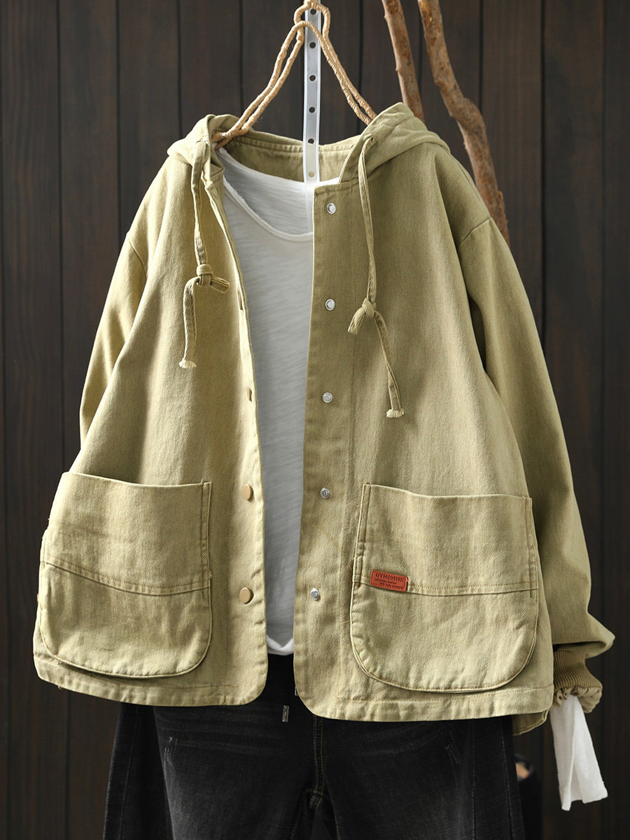 מעיל כותנה קז'ואל לנשים באביב עם קפוצ'ון בצבע טהור