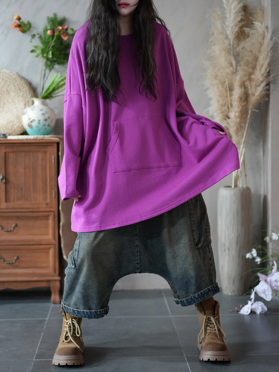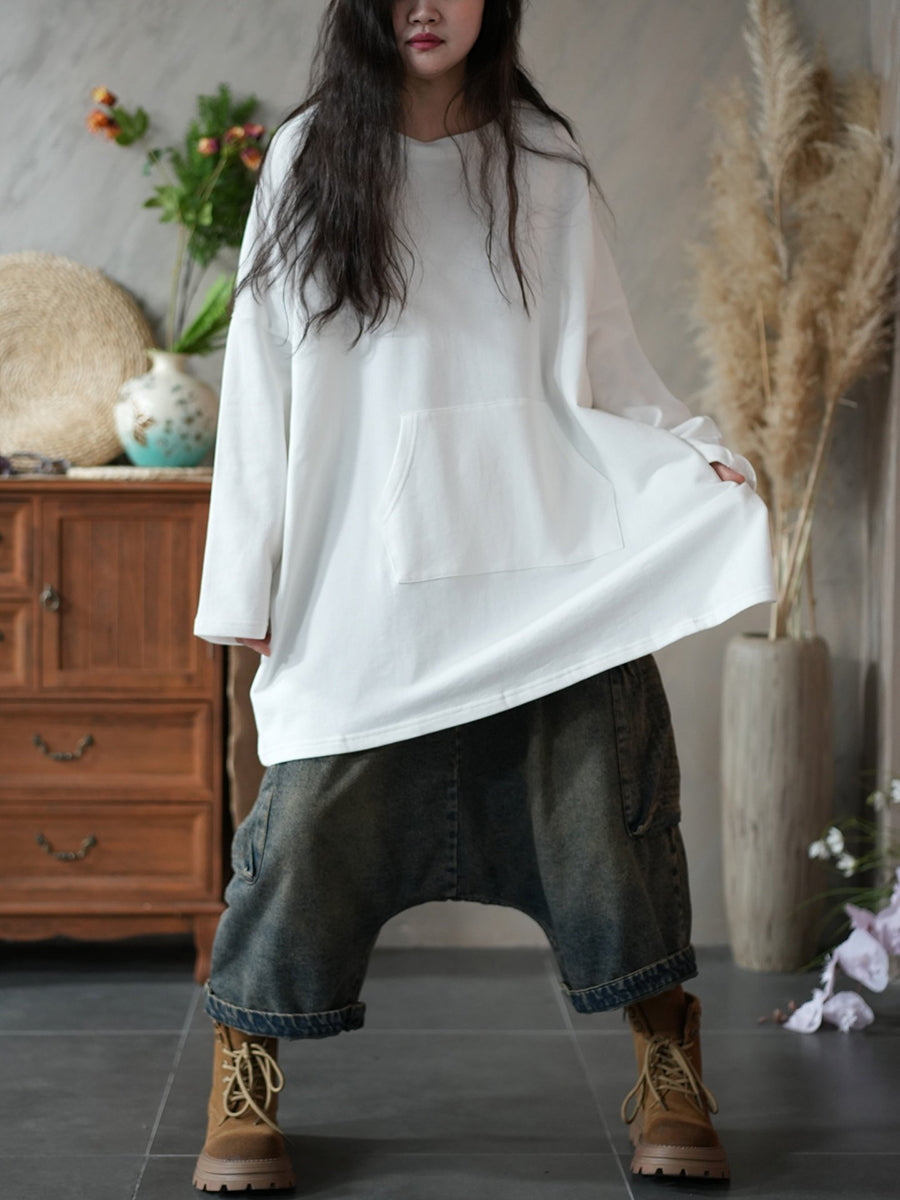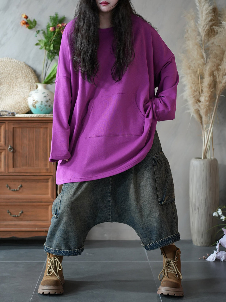 חולצה עם צווארון O בצבע טהור, קז'ואל לנשים באביב