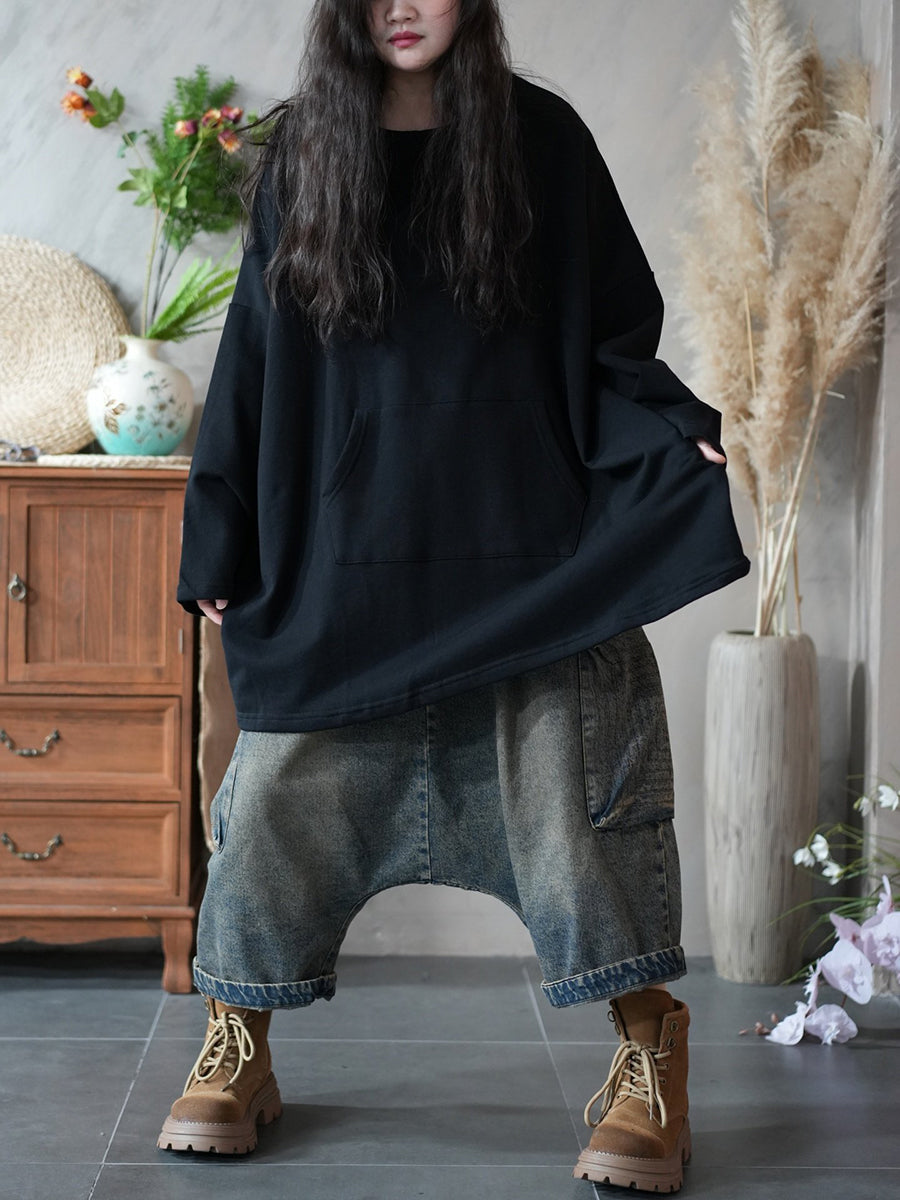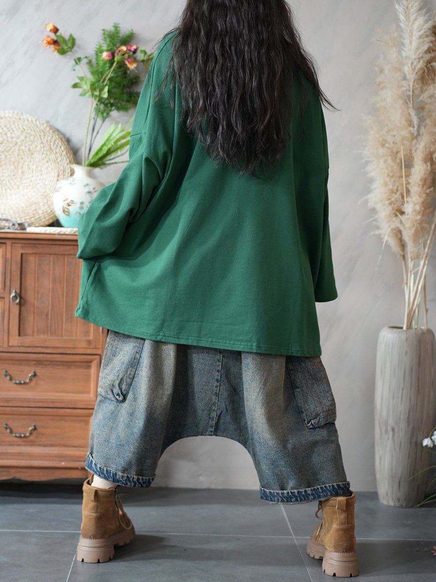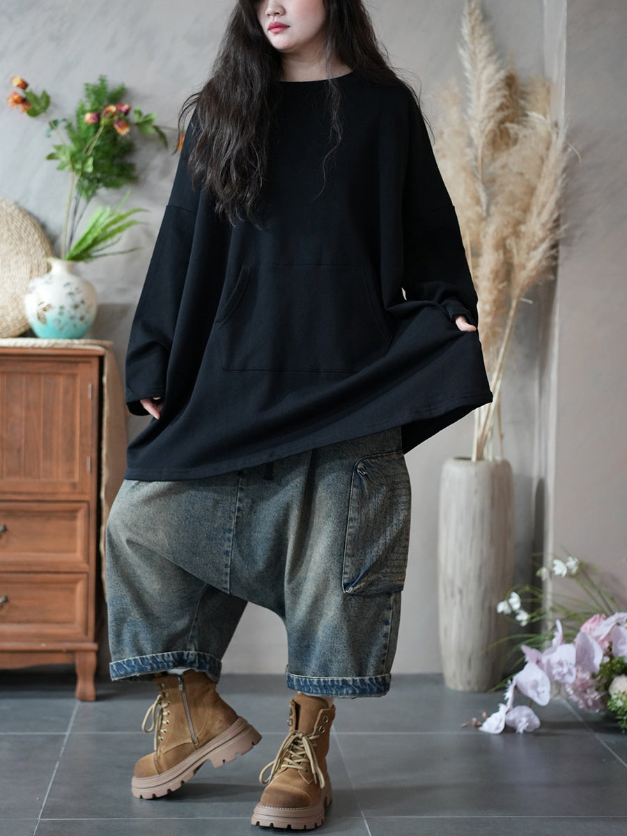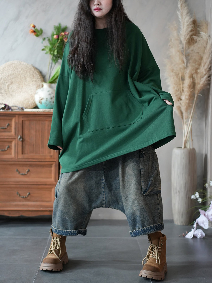 חולצה עם צווארון O בצבע טהור, קז'ואל לנשים באביב