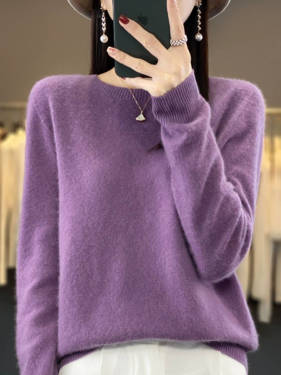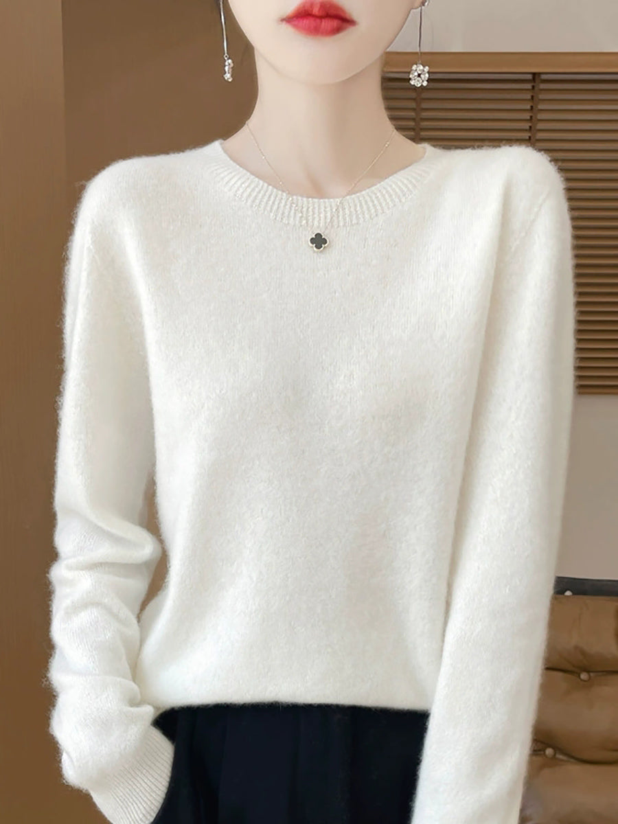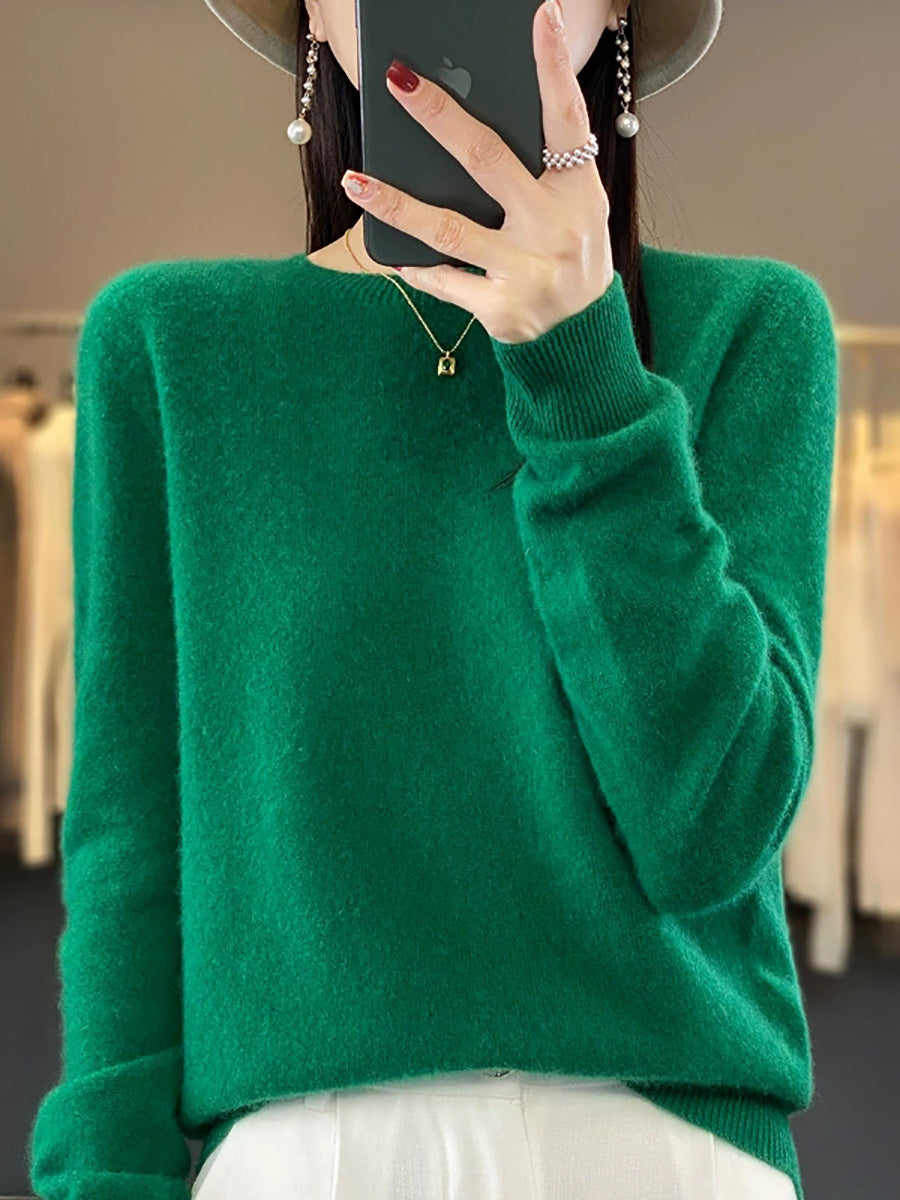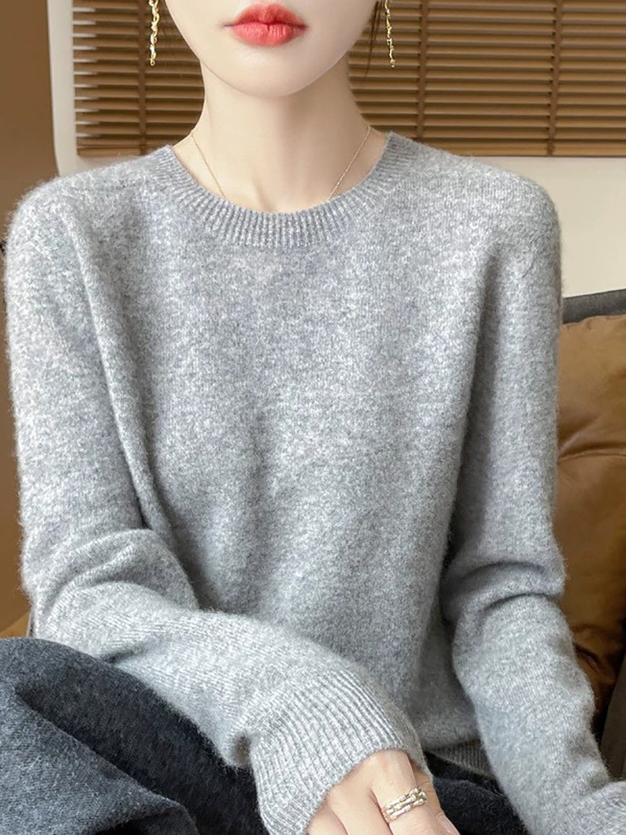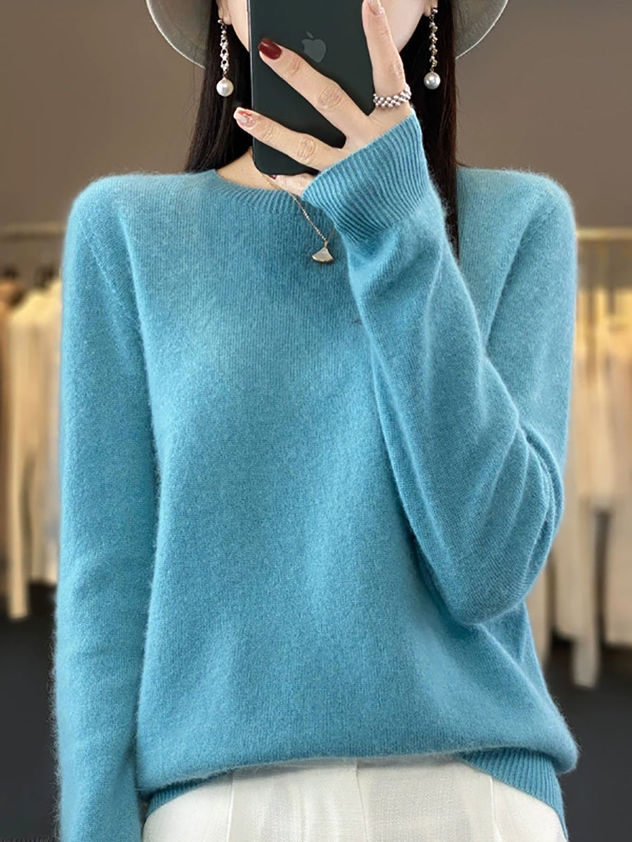 סוודר O-צוואר בצבע טהור לנשים באביב