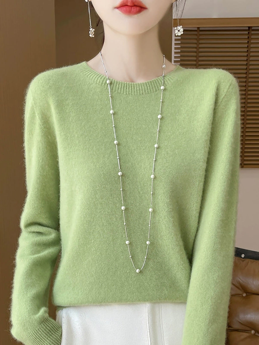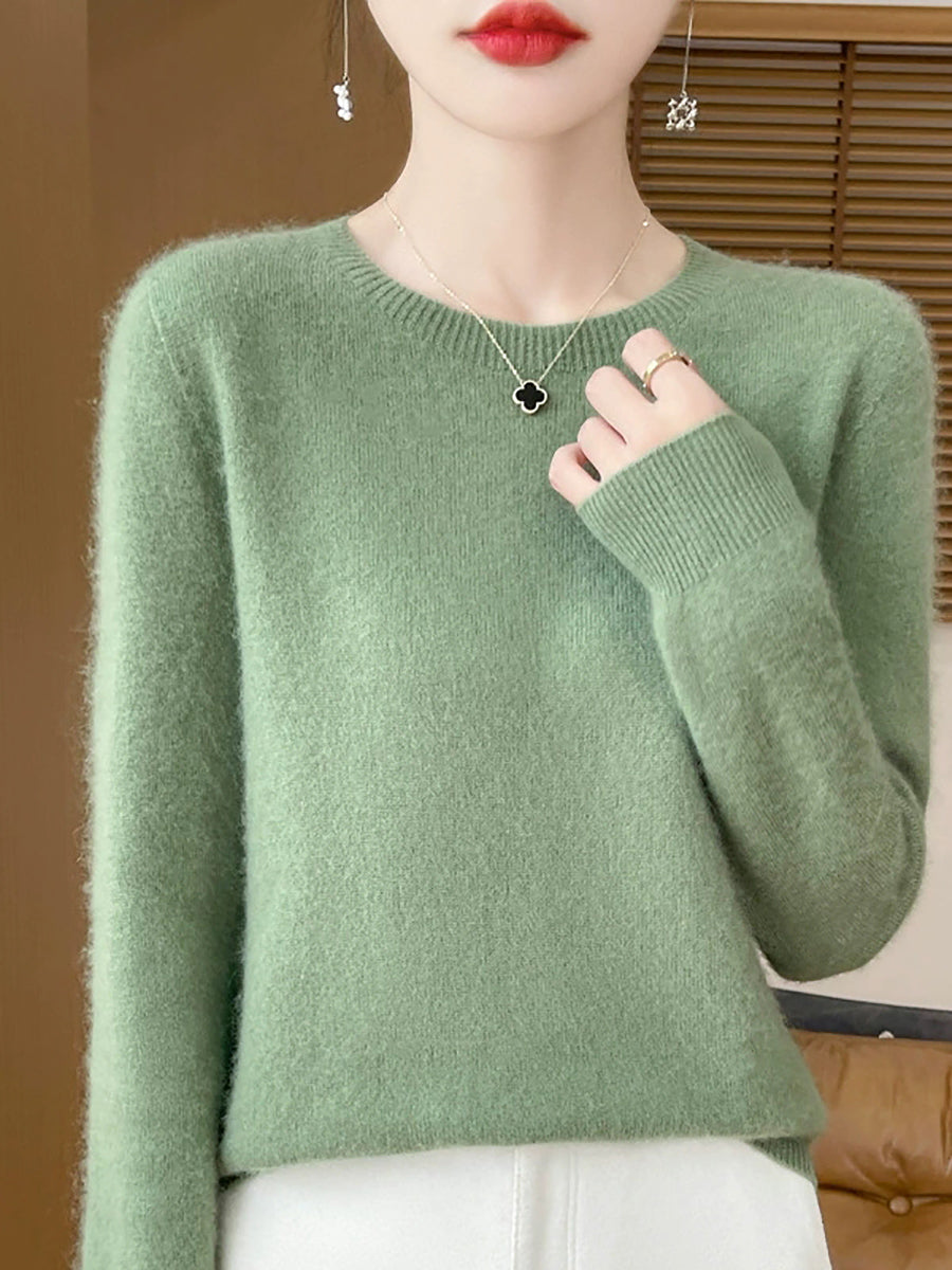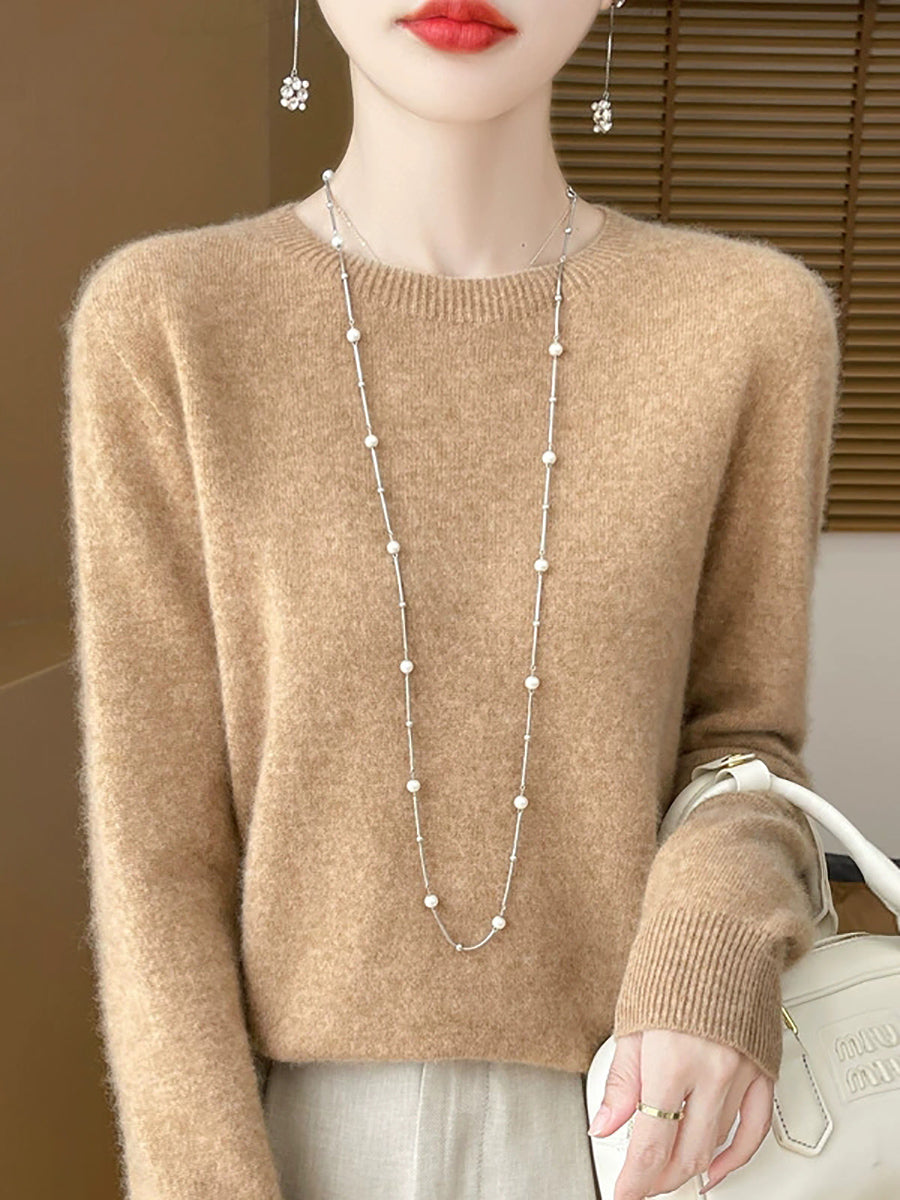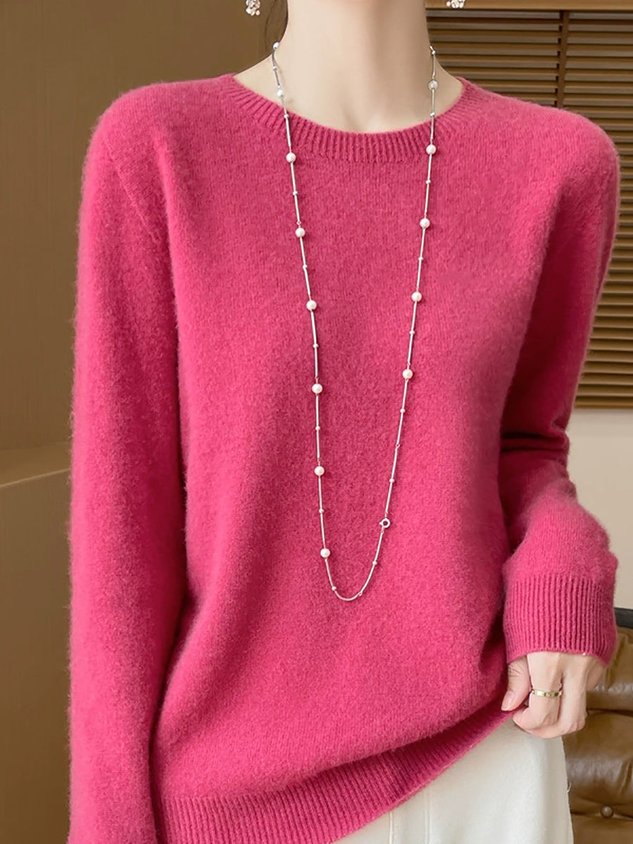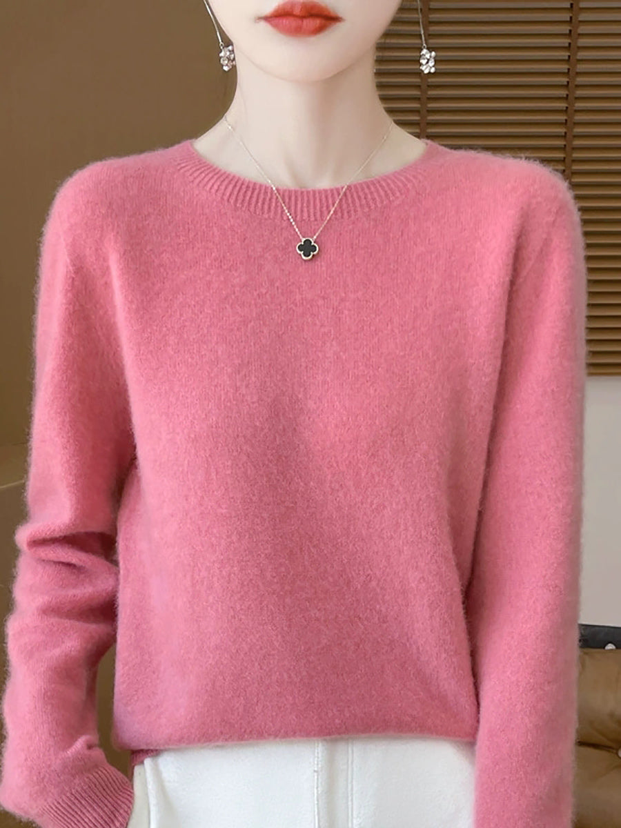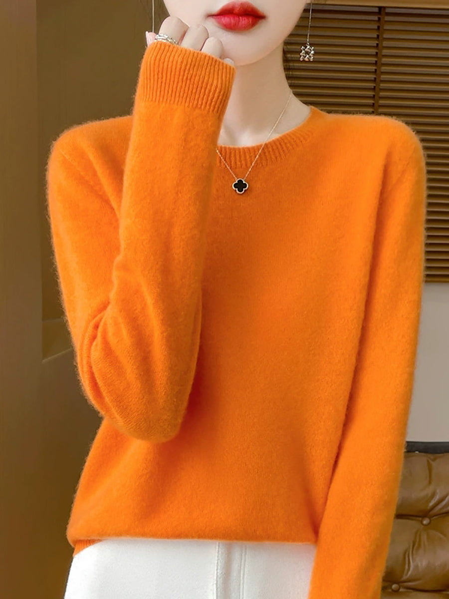 סוודר O-צוואר בצבע טהור לנשים באביב