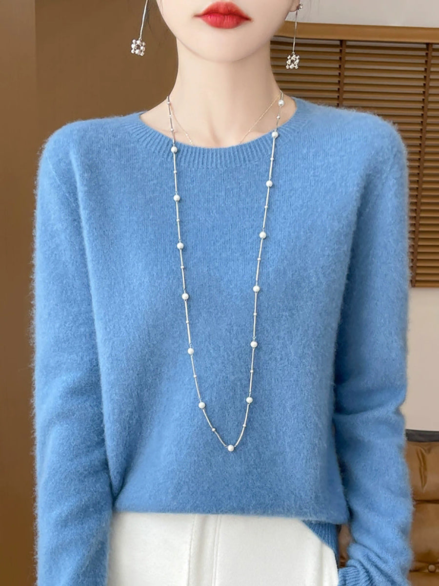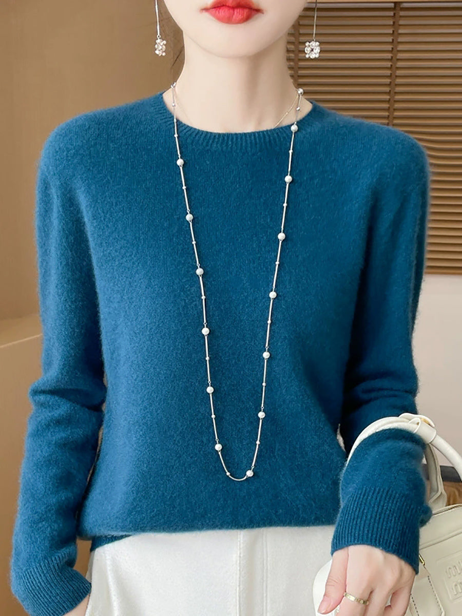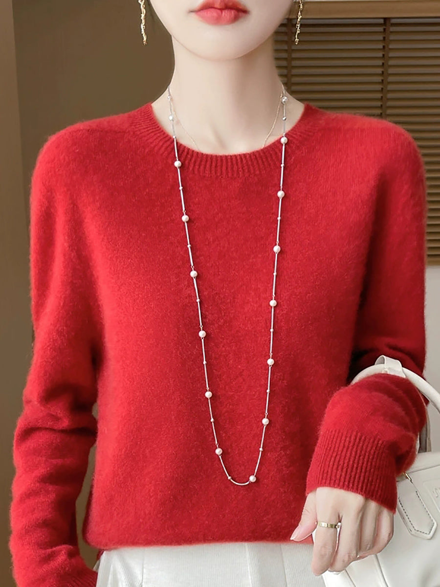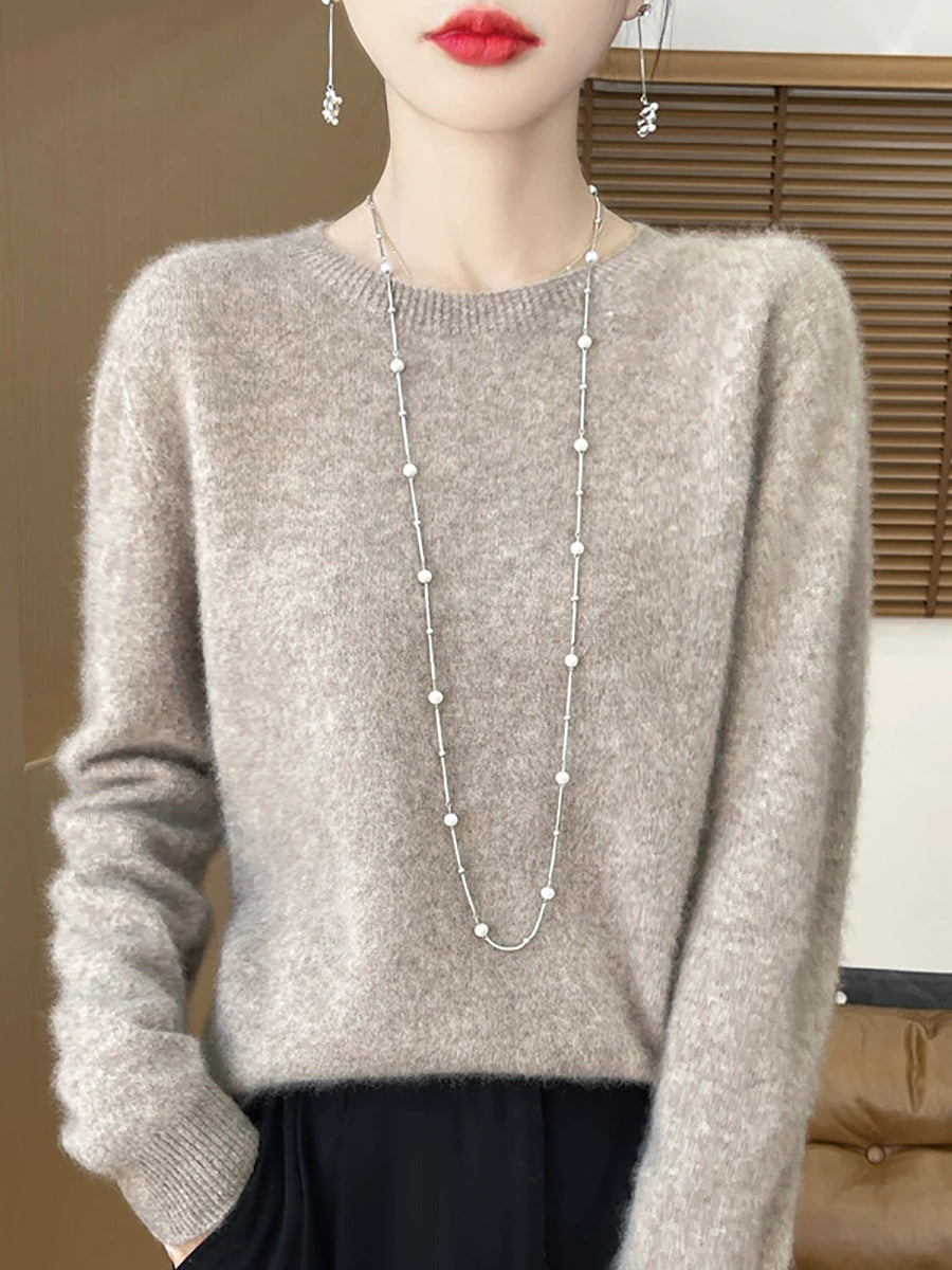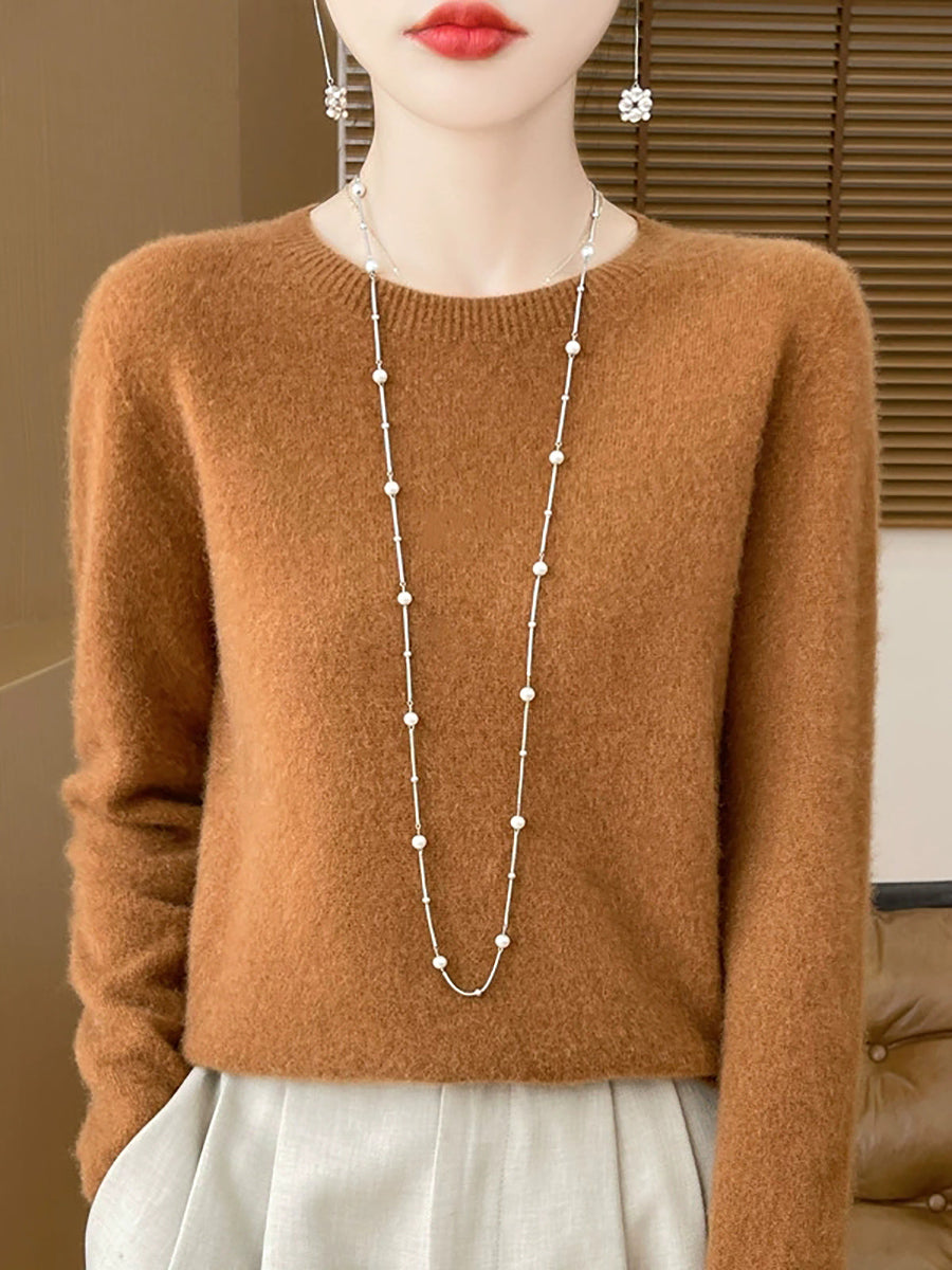 סוודר O-צוואר בצבע טהור לנשים באביב