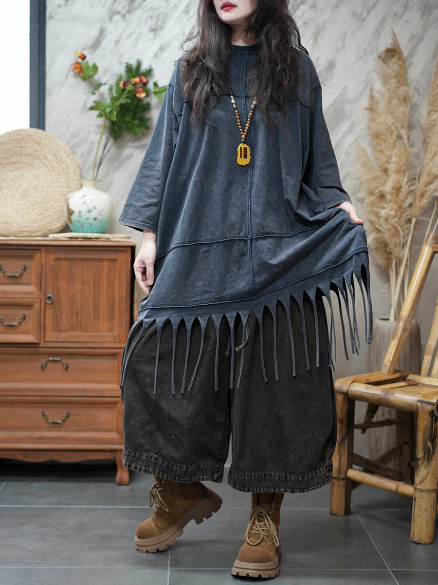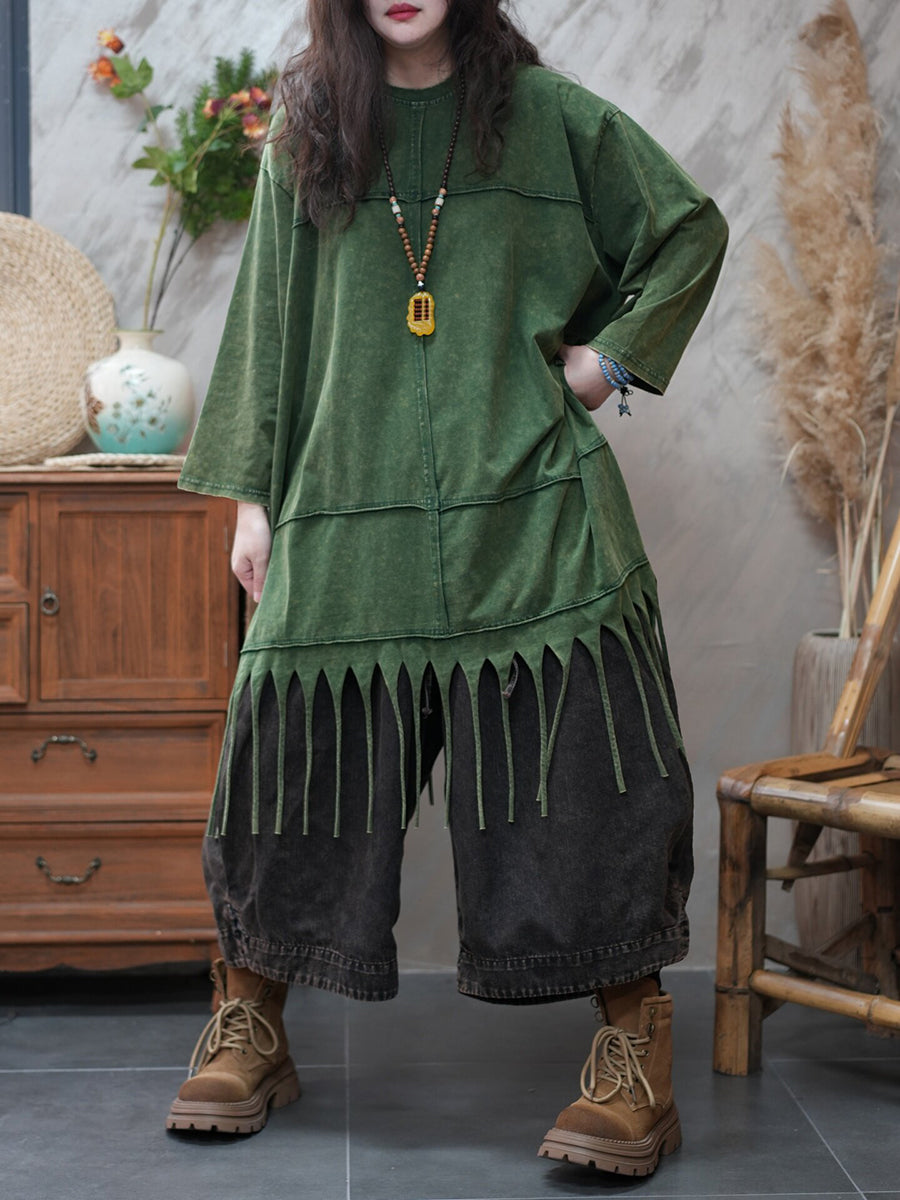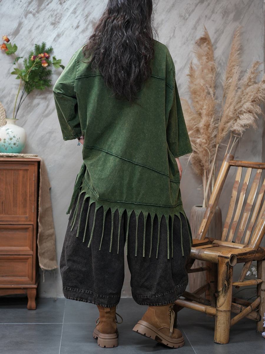 חולצת גדילים בצבע טהור מזדמן לנשים באביב