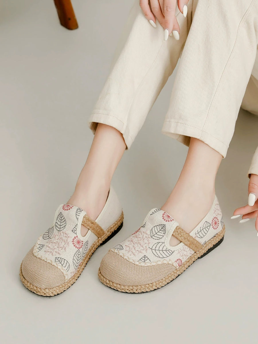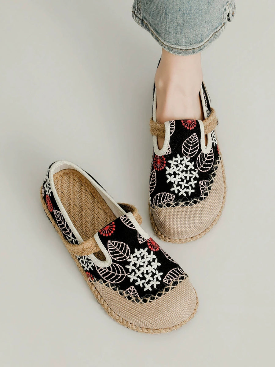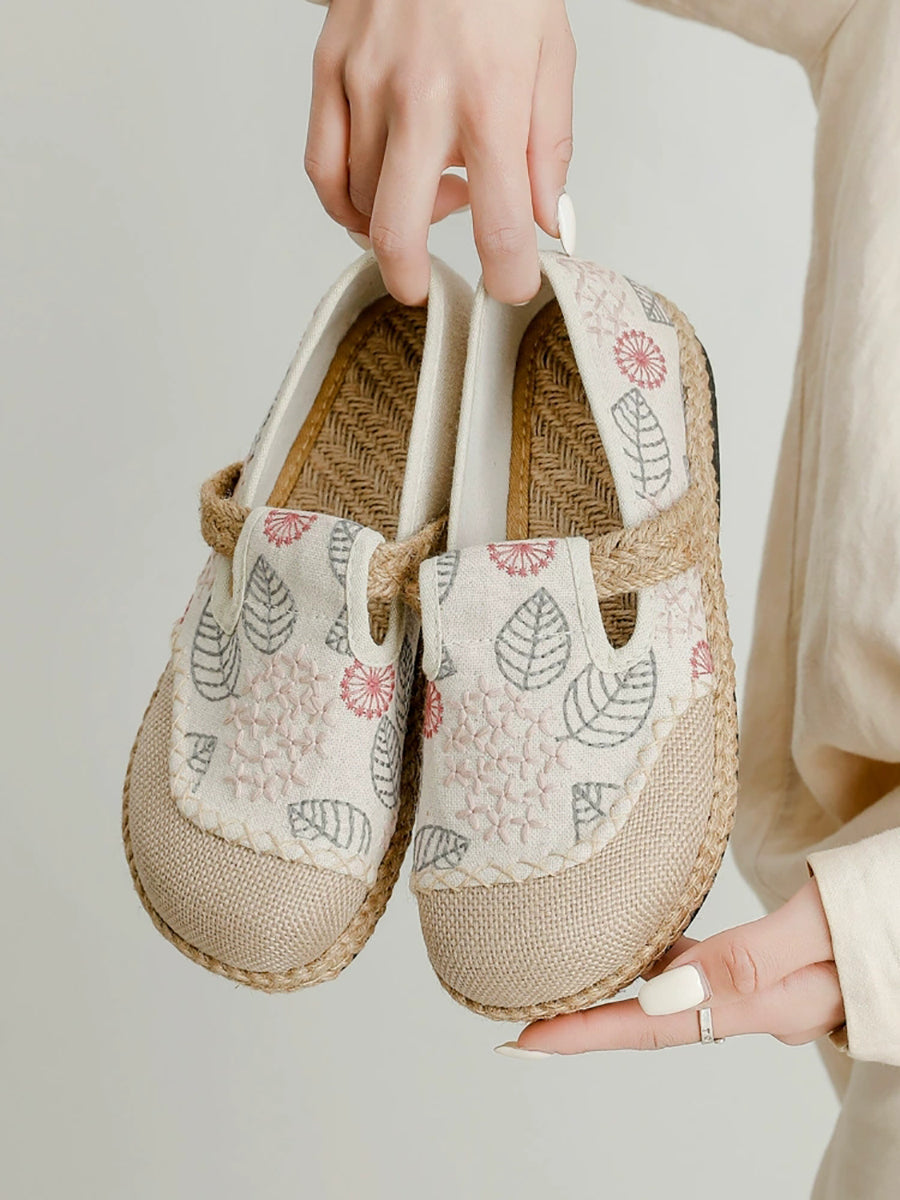 נעליים שטוחות לנשים באביב עם רקמת בד פשתן