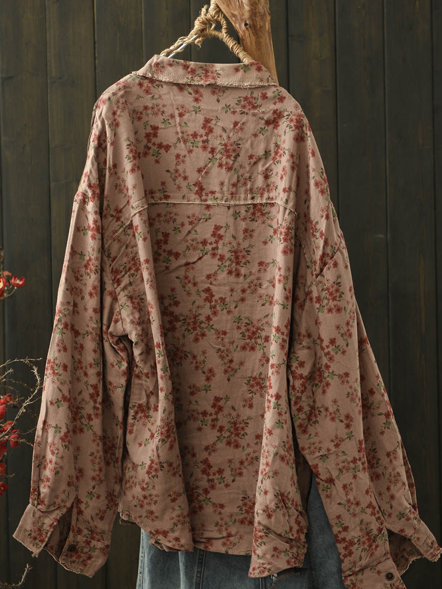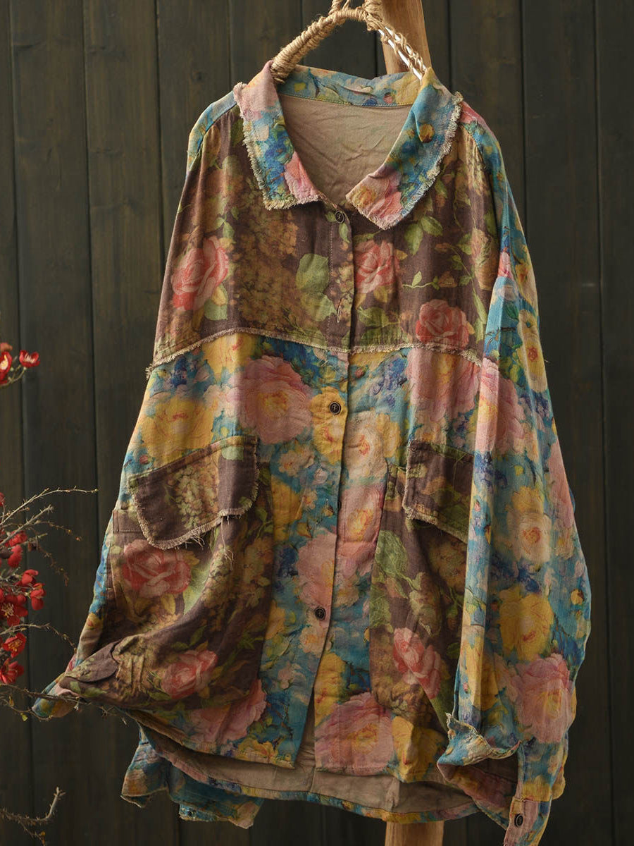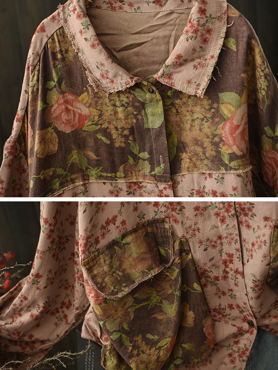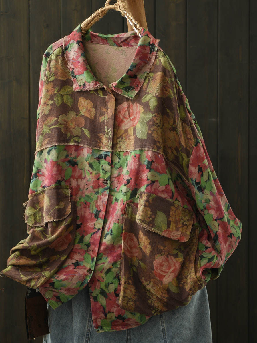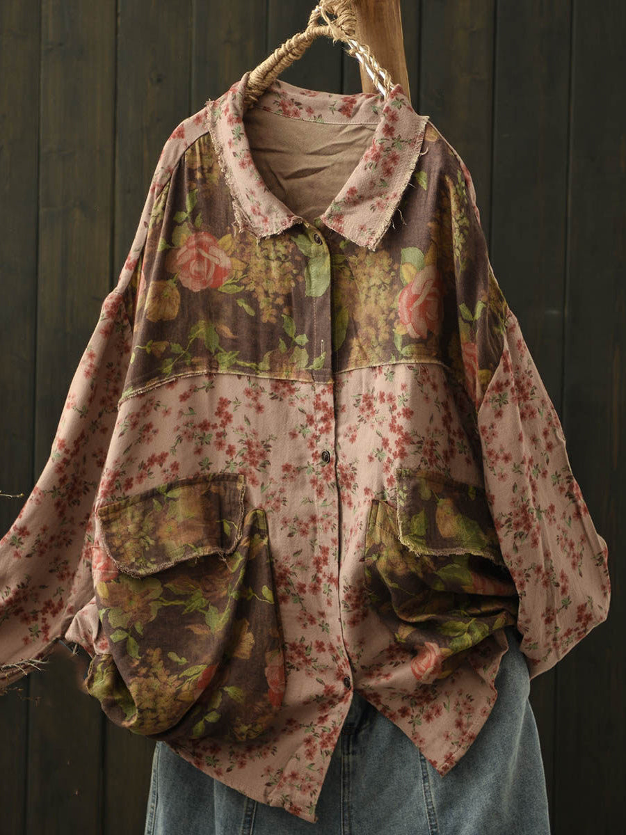 חולצת כותנה עם צווארון הפוך פרחונית לנשים באביב