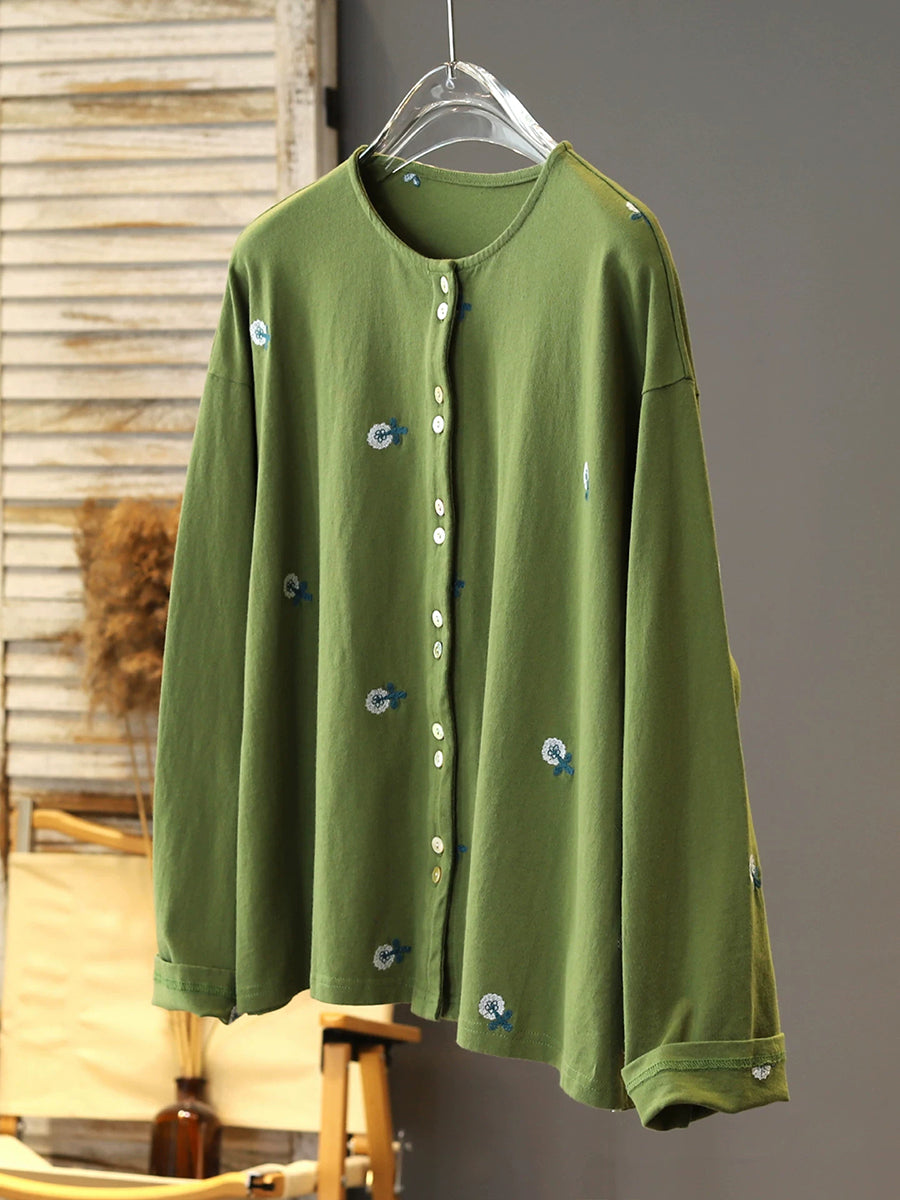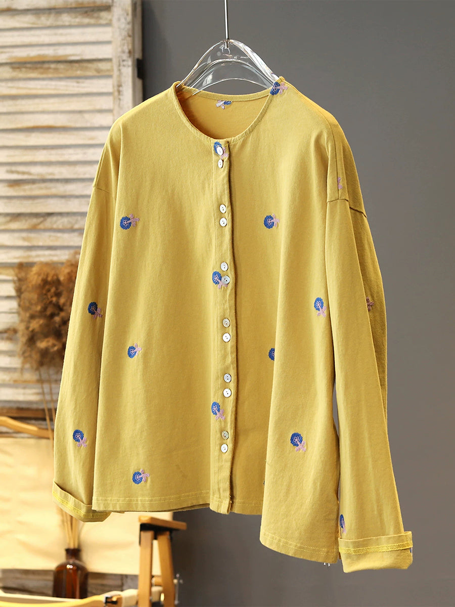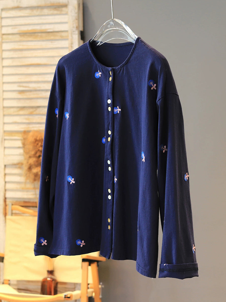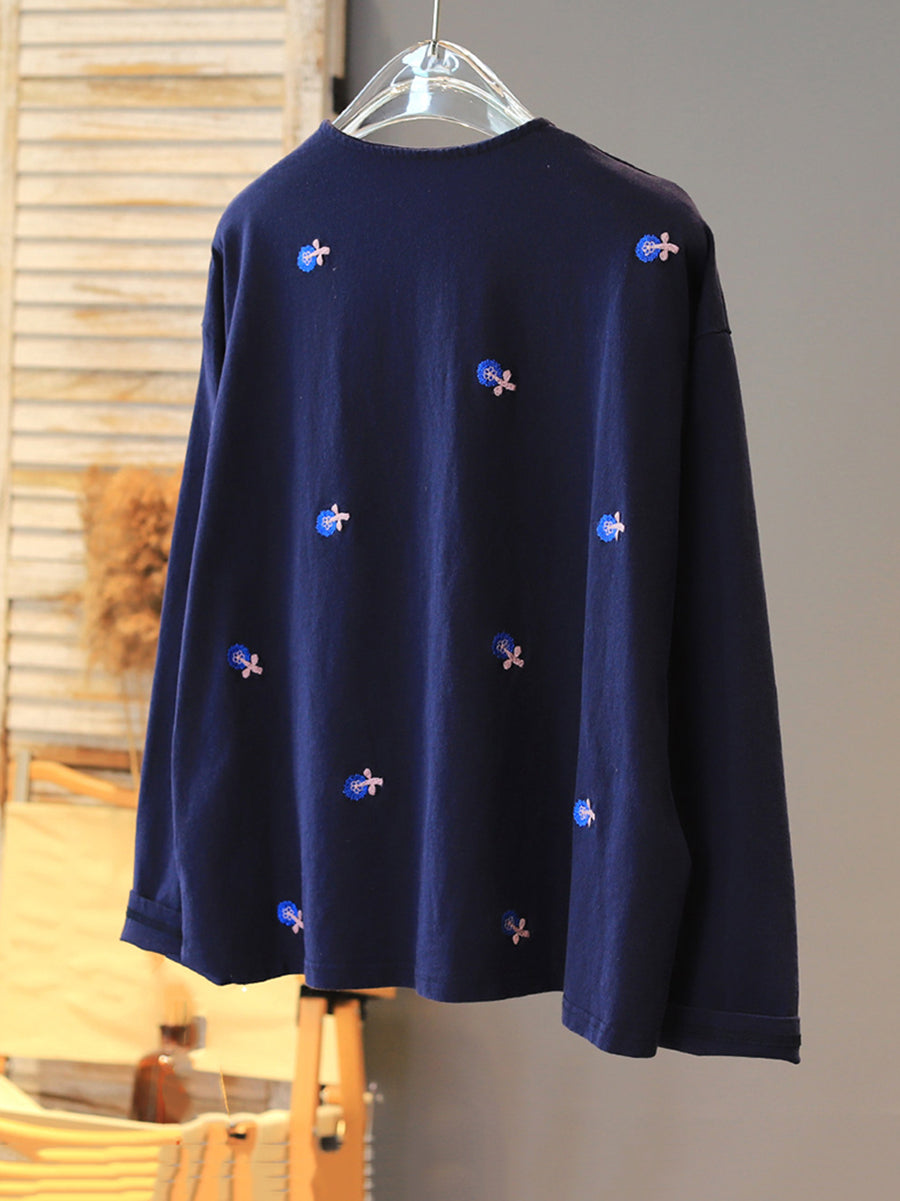 חולצת O-צוואר עם רקמת פרחי אביב לנשים