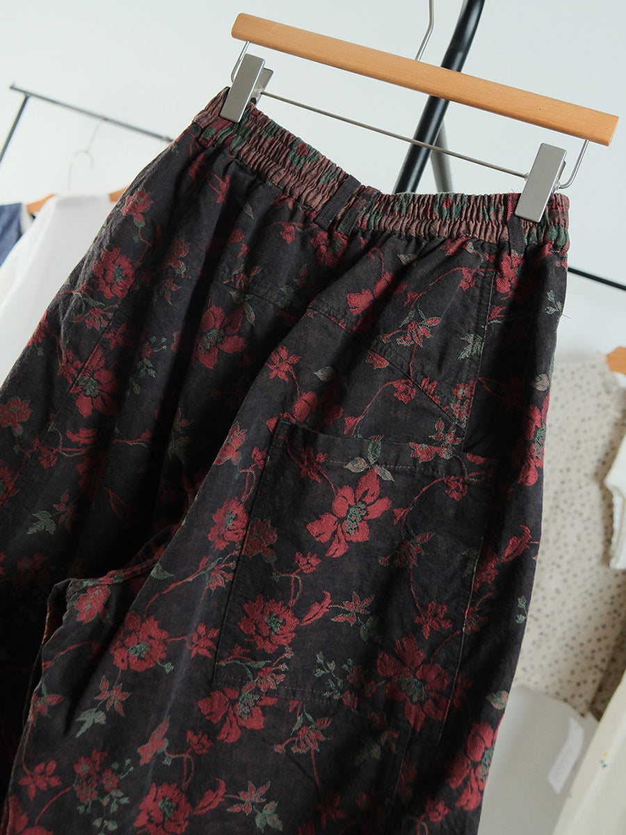 מכנסי אביב רחבים עם פרחים לנשים
