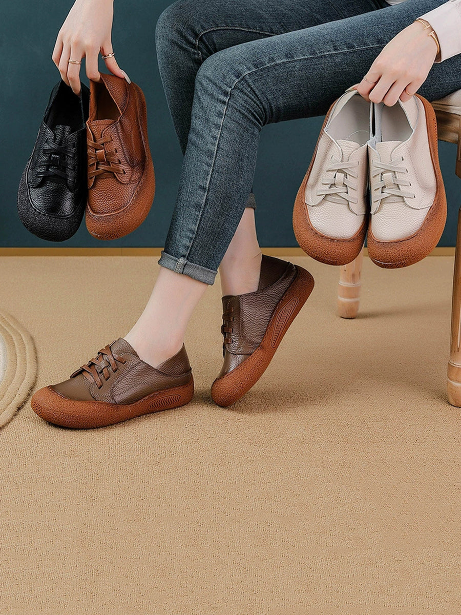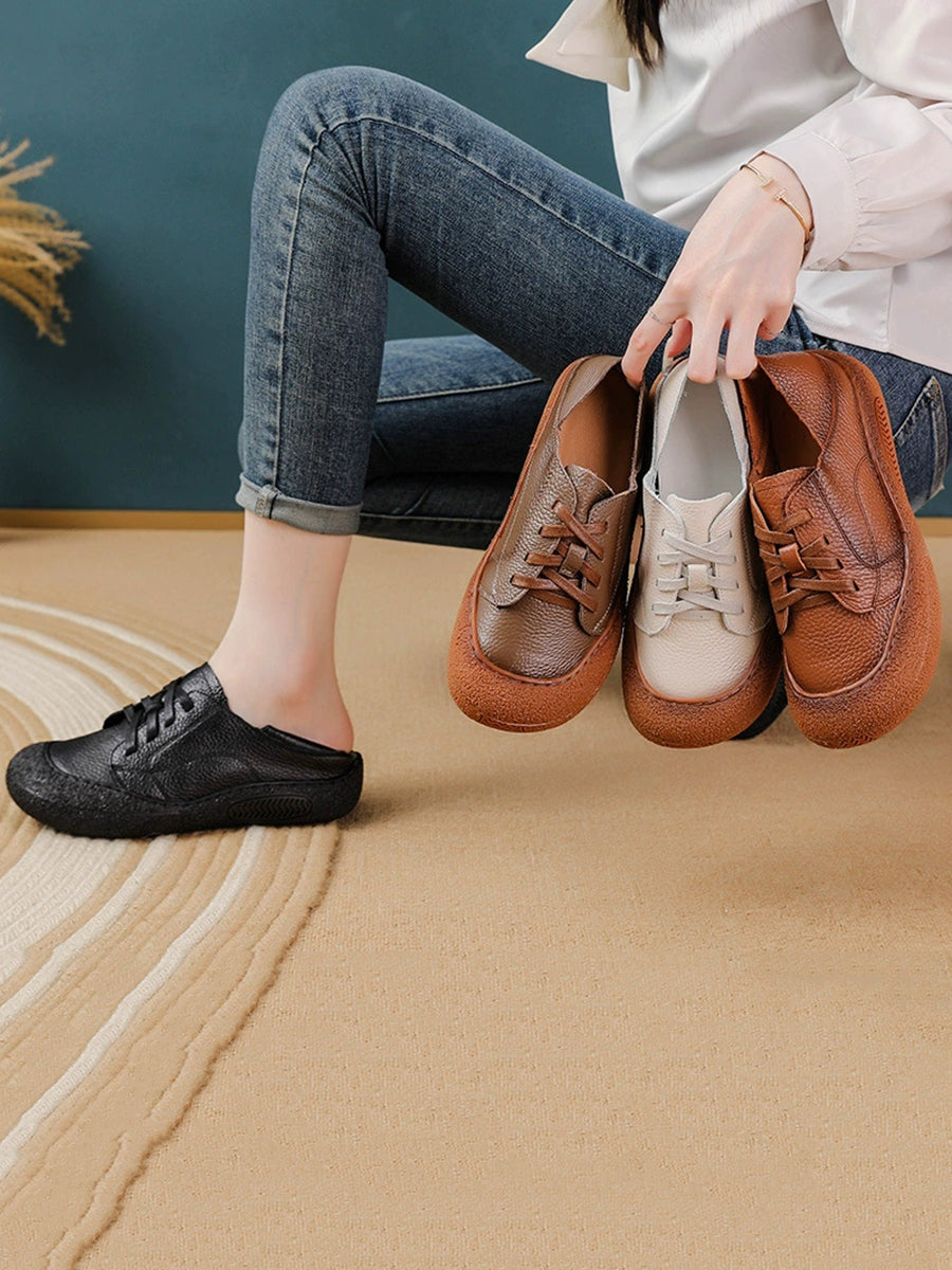 נעליים שטוחות מעור אמיתי לנשים באביב
