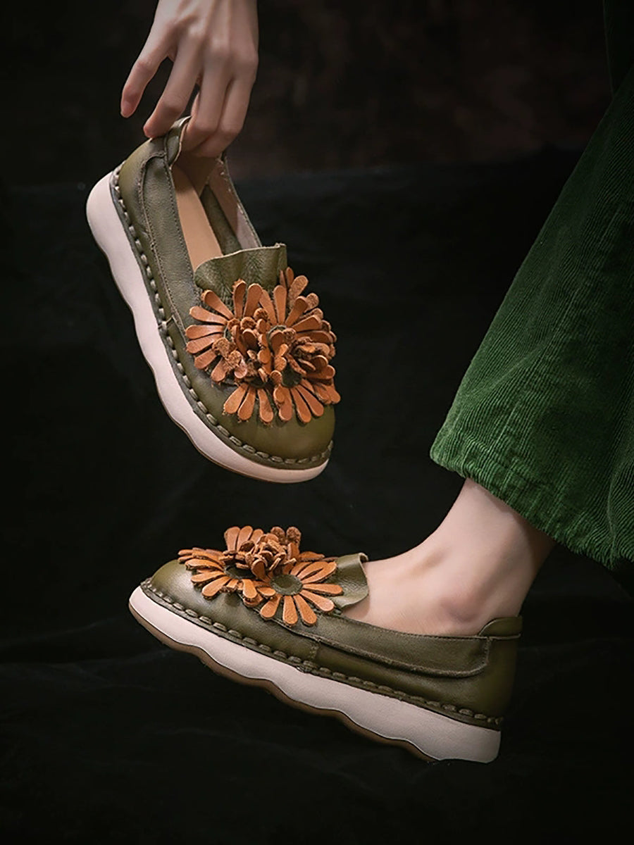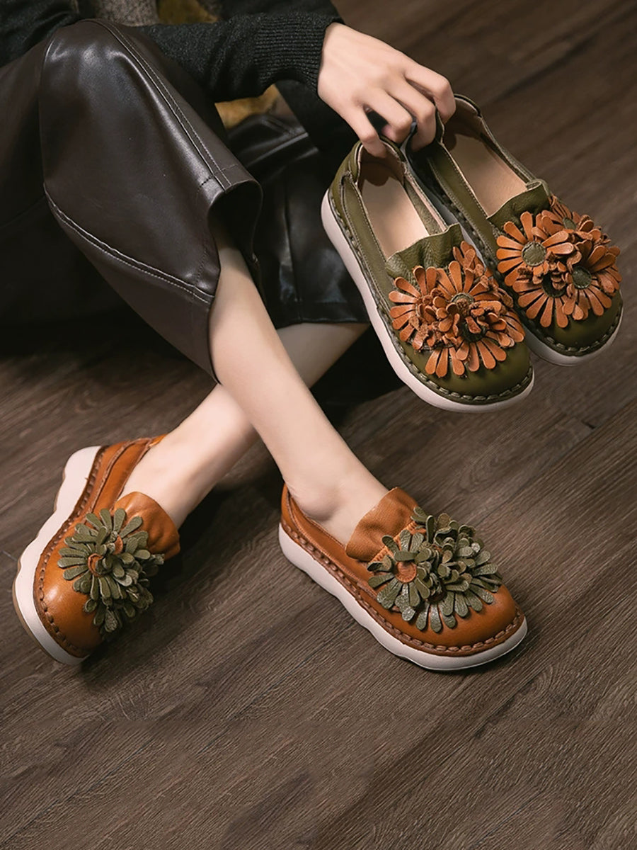 נעלי עור אמיתיות לנשים באביב עם פרחים